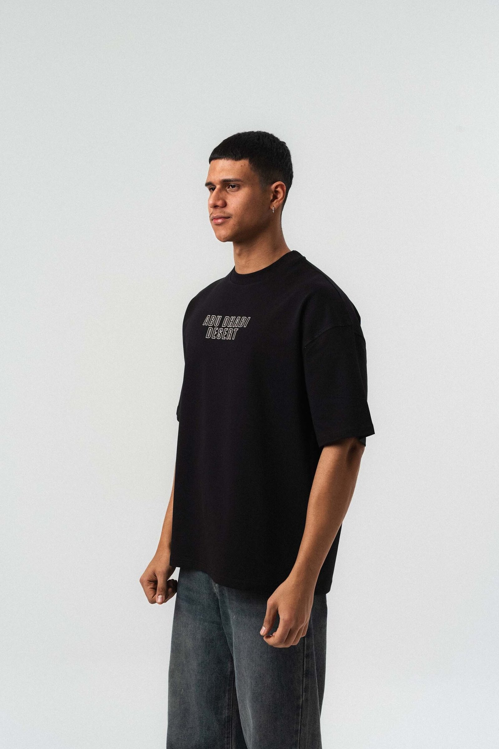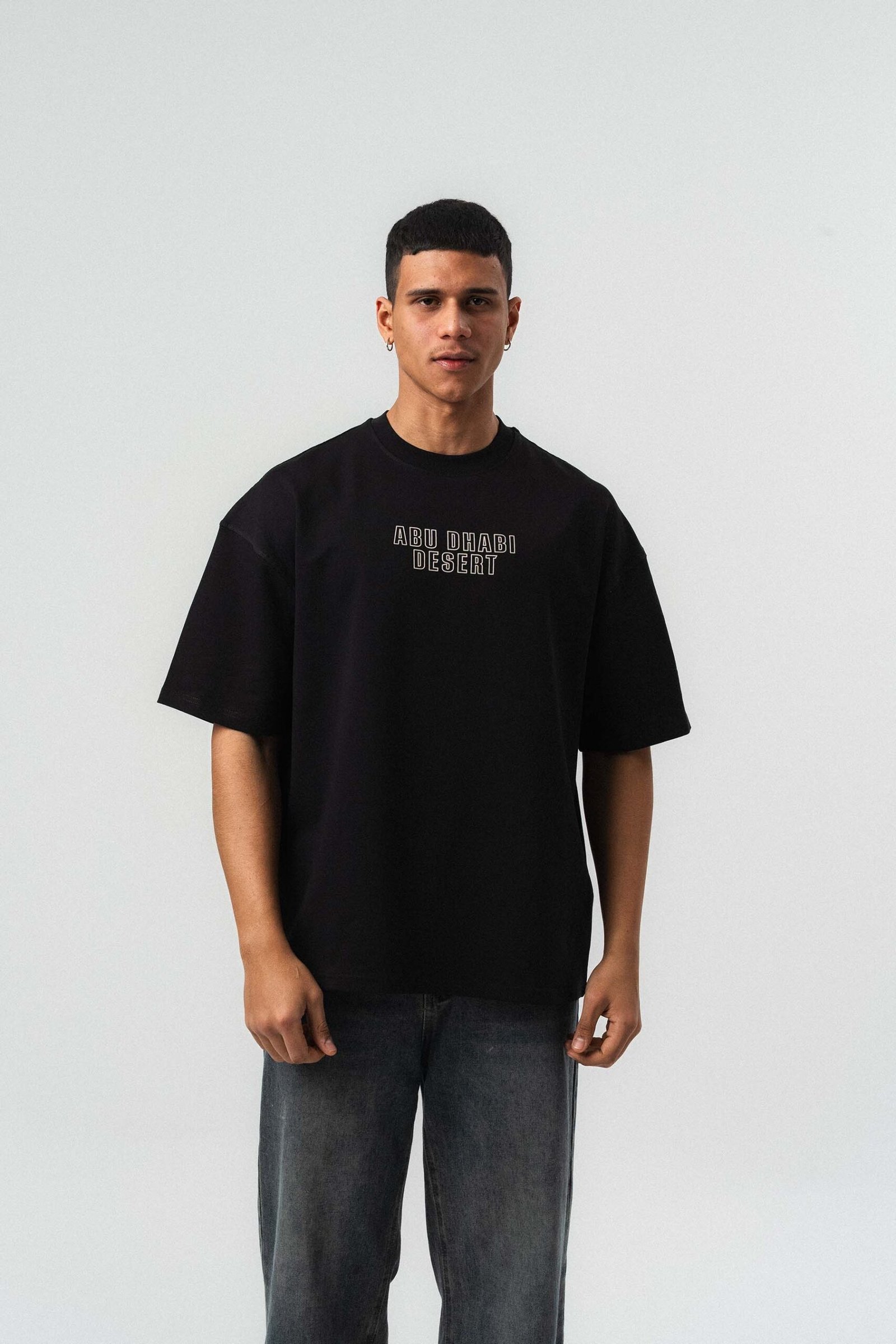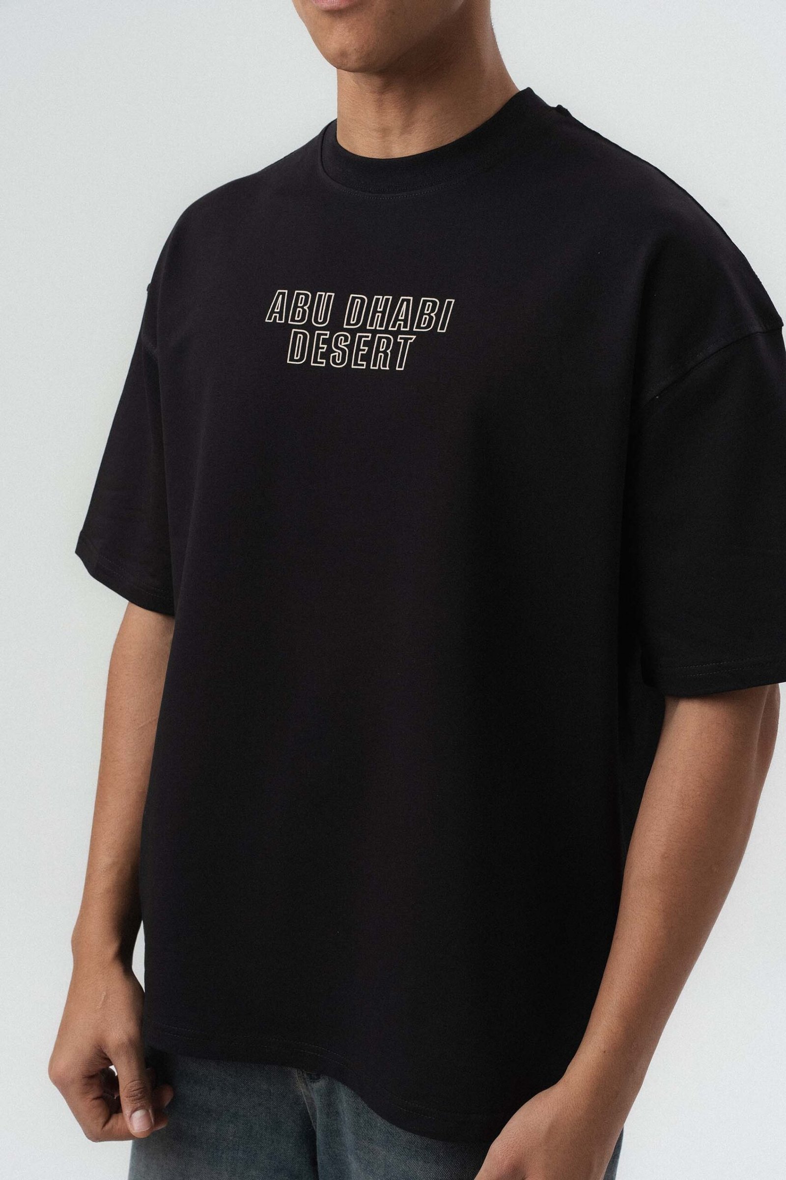 Abu Dabi Gold Embossed Pattern Black Oversize Printed T-Shirt