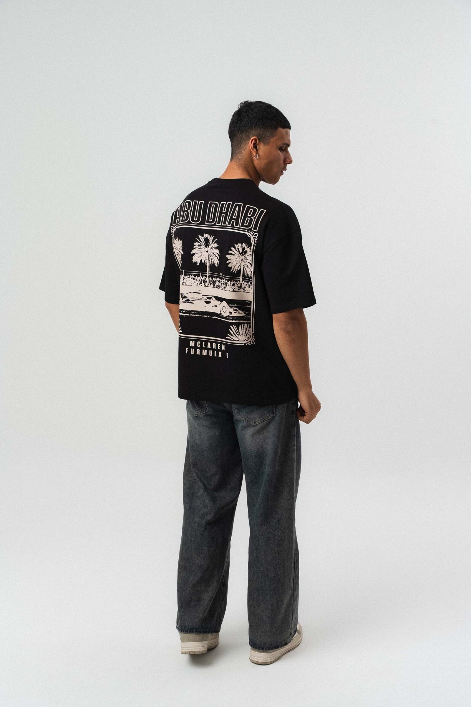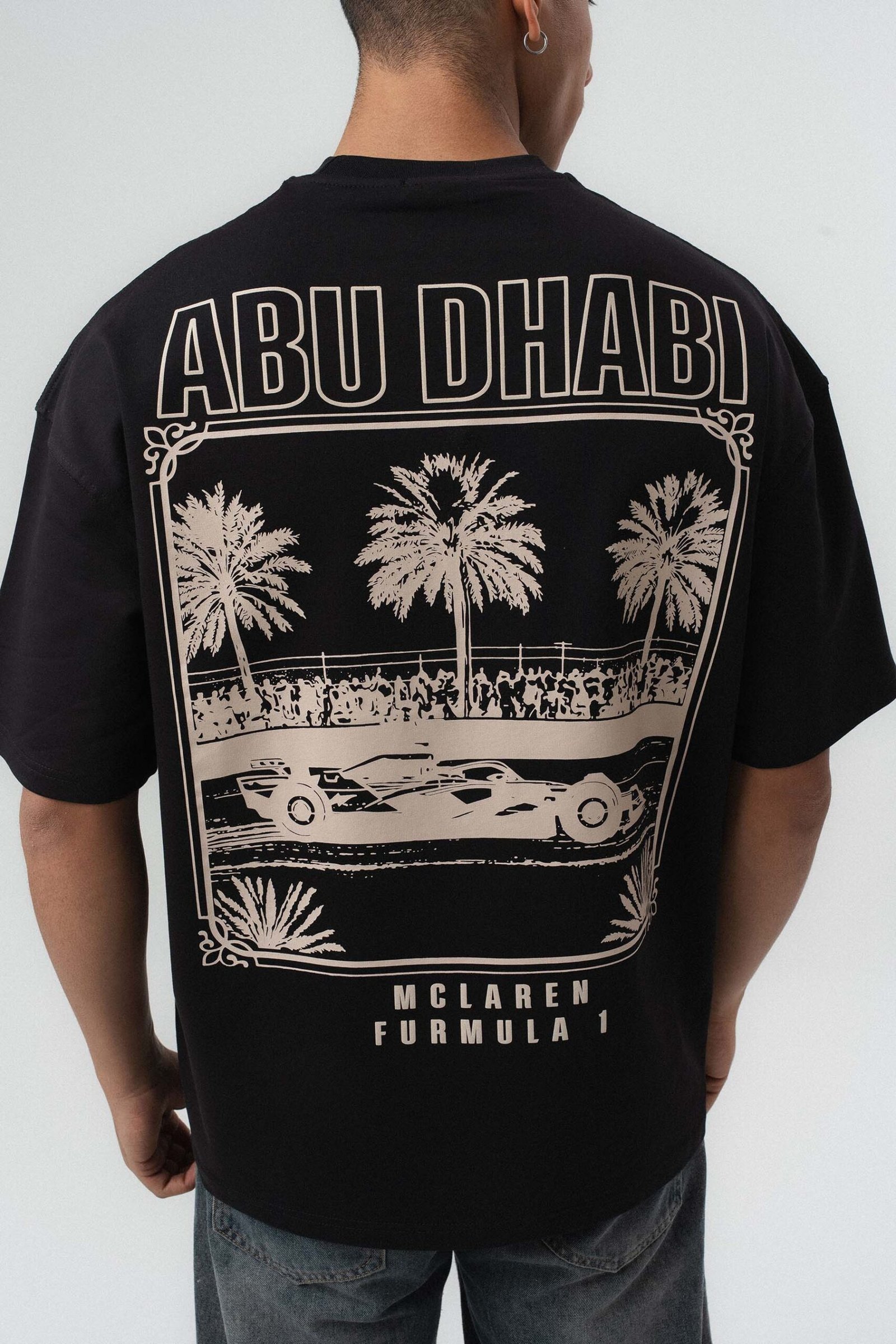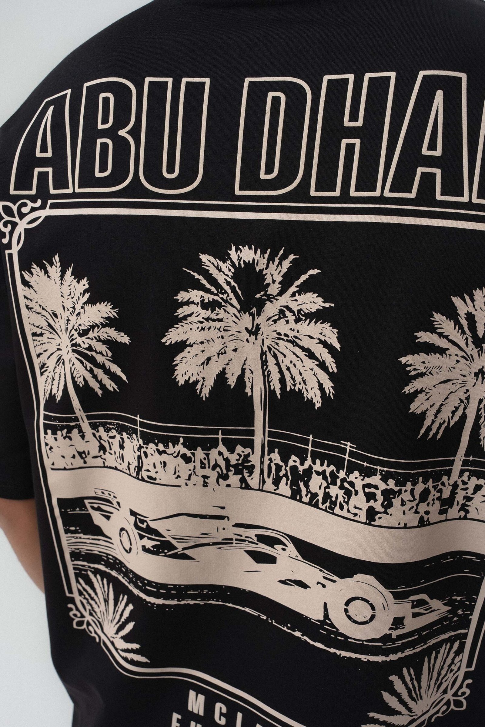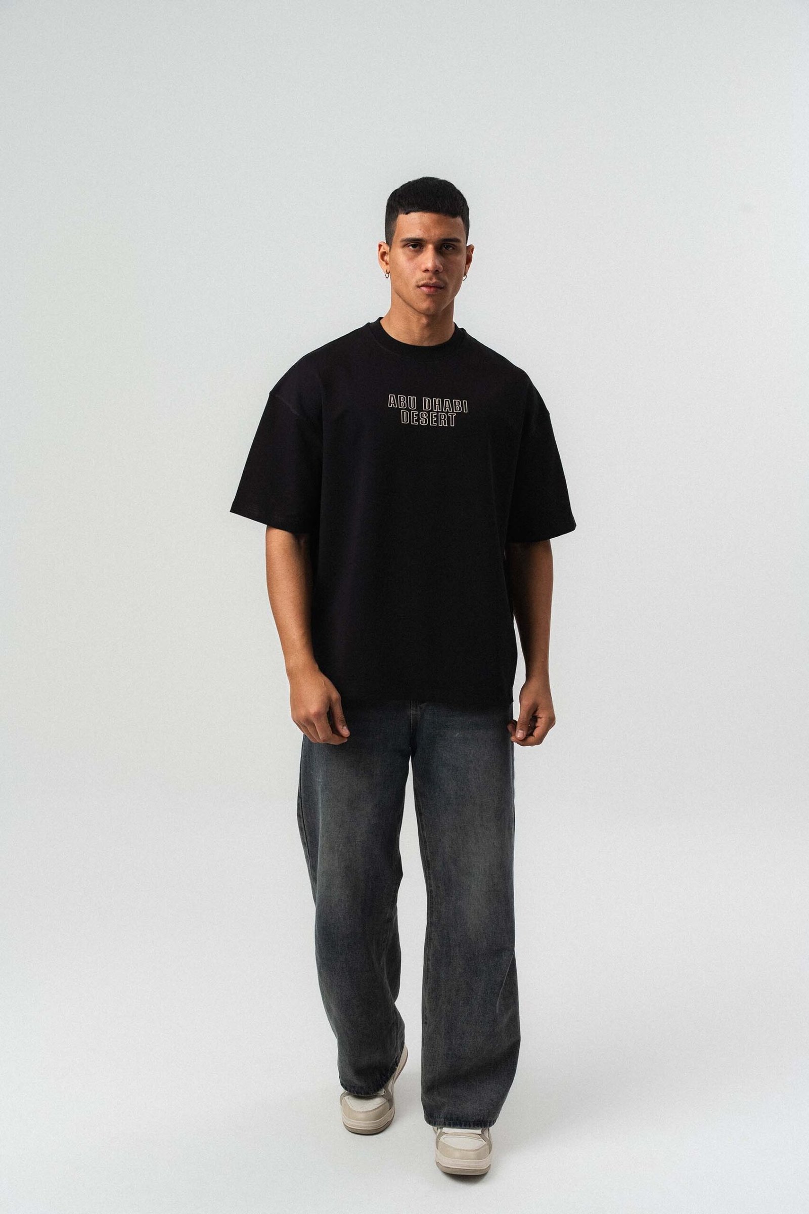 Abu Dabi Gold Embossed Pattern Black Oversize Printed T-Shirt