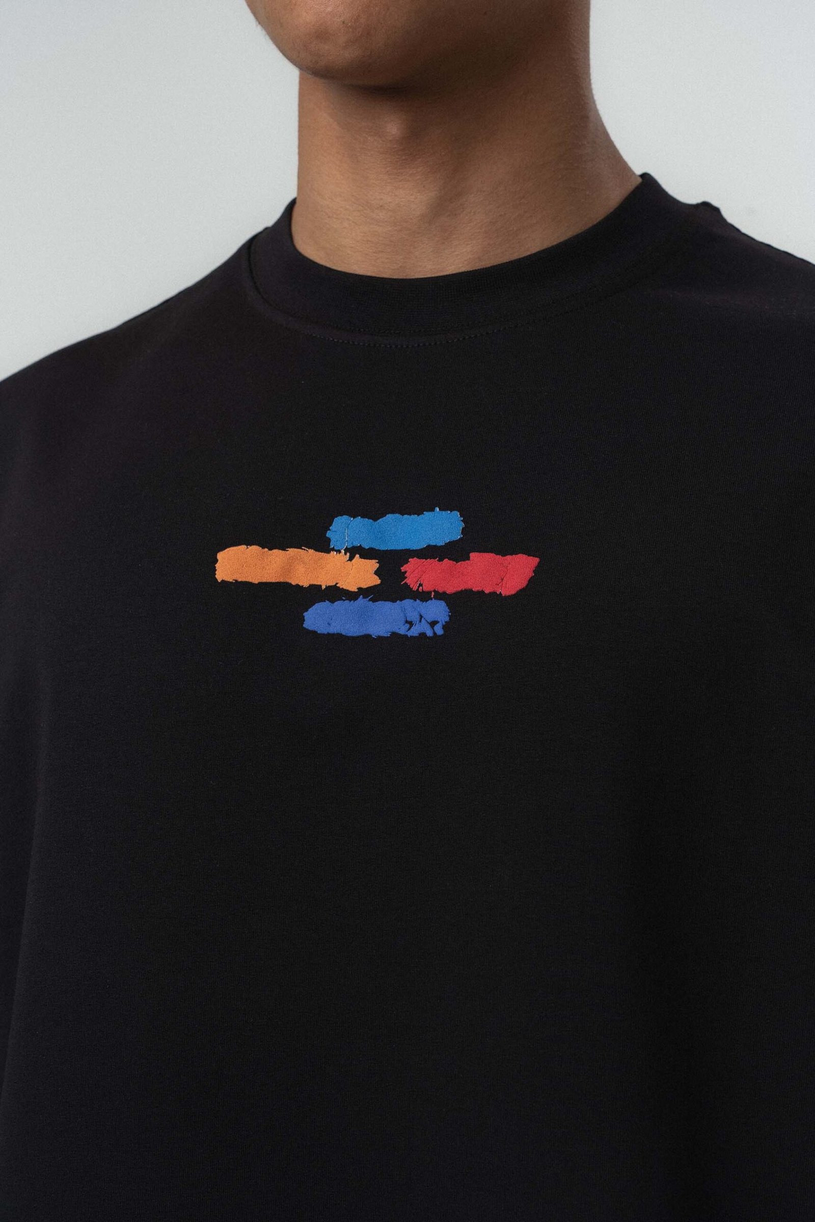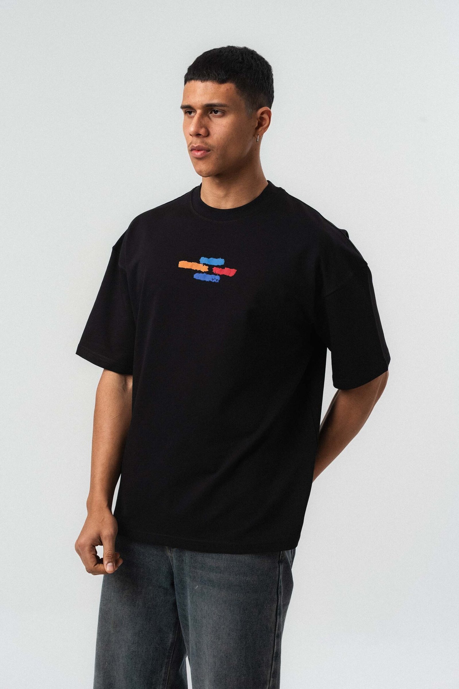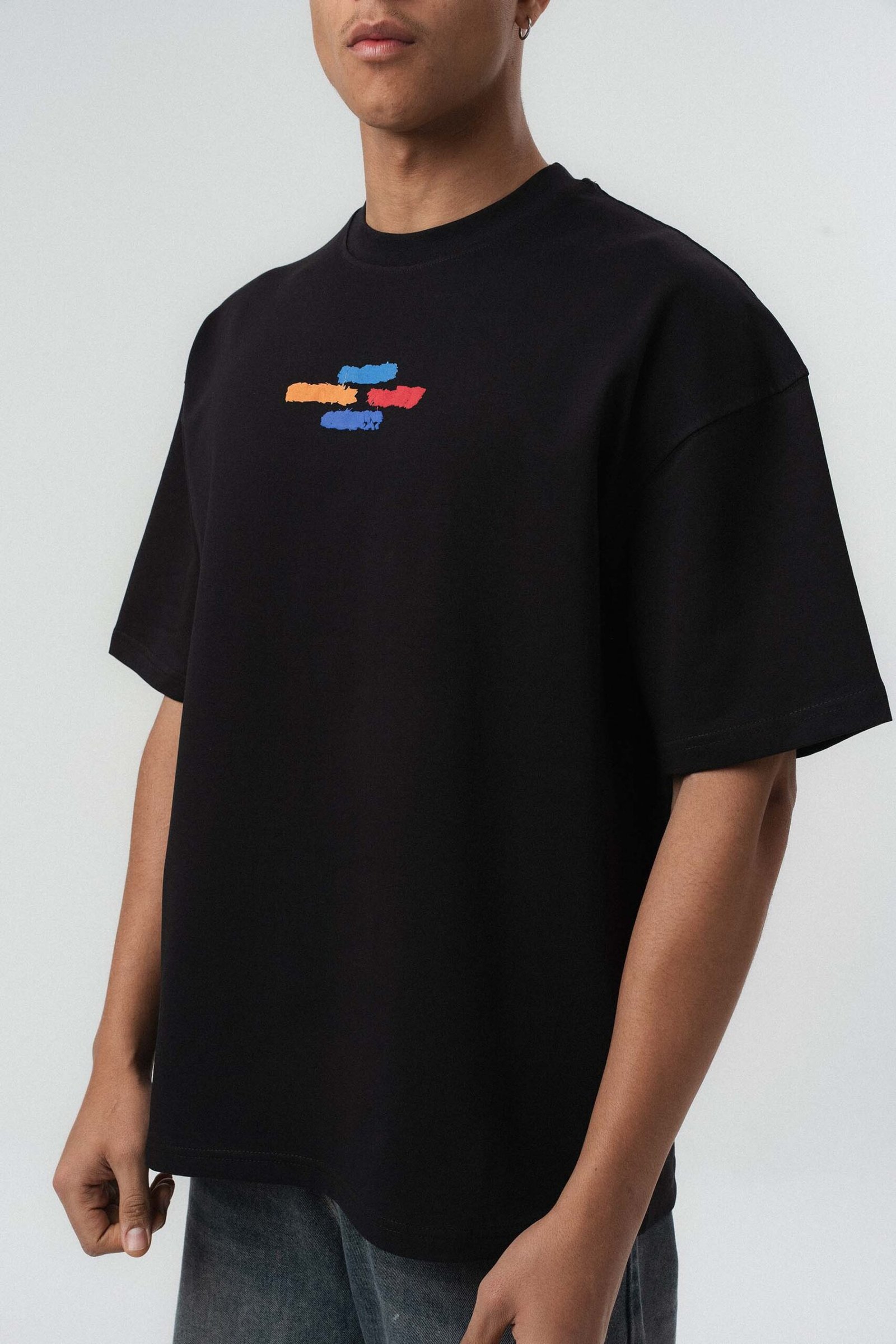Art Graphic Embossed Black Oversize Printed T-Shirt