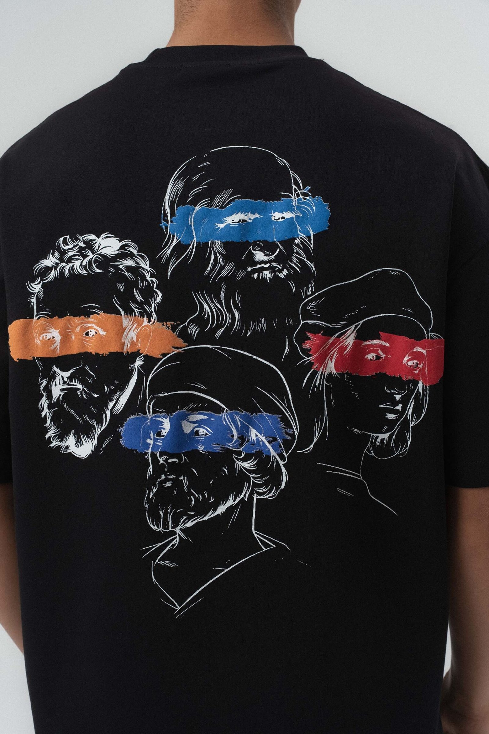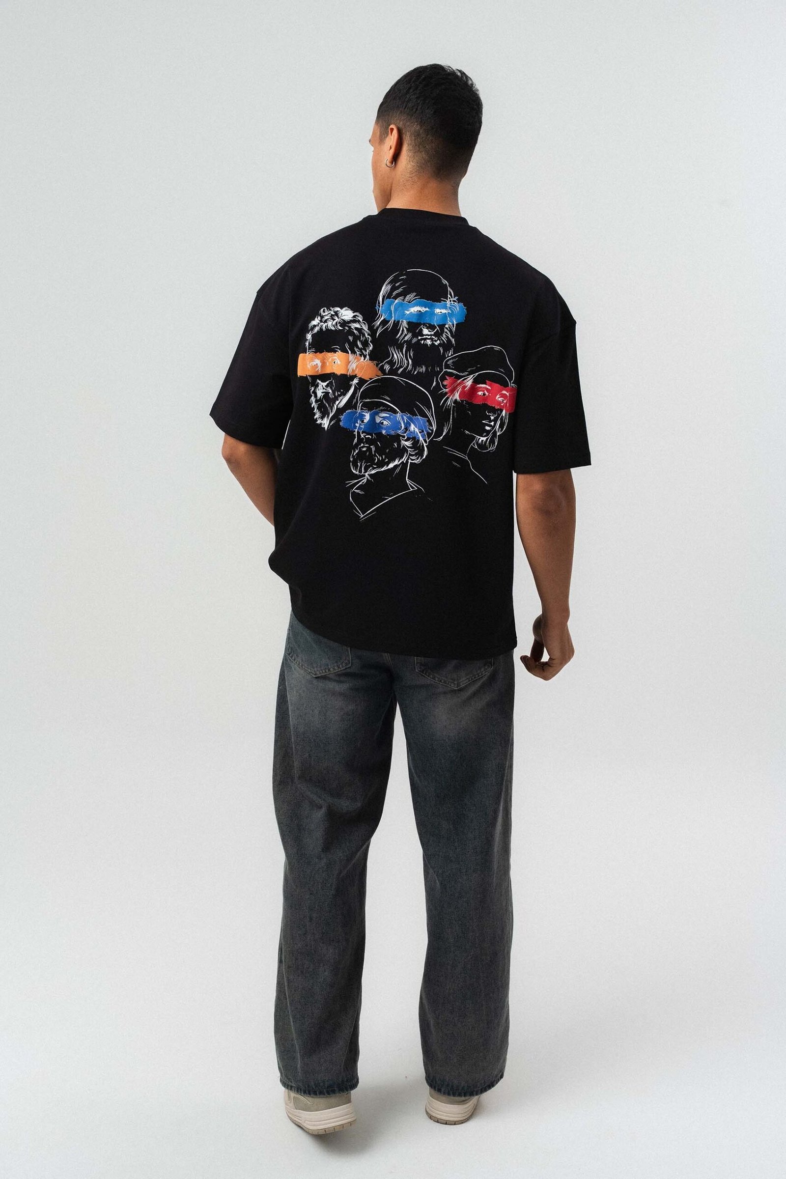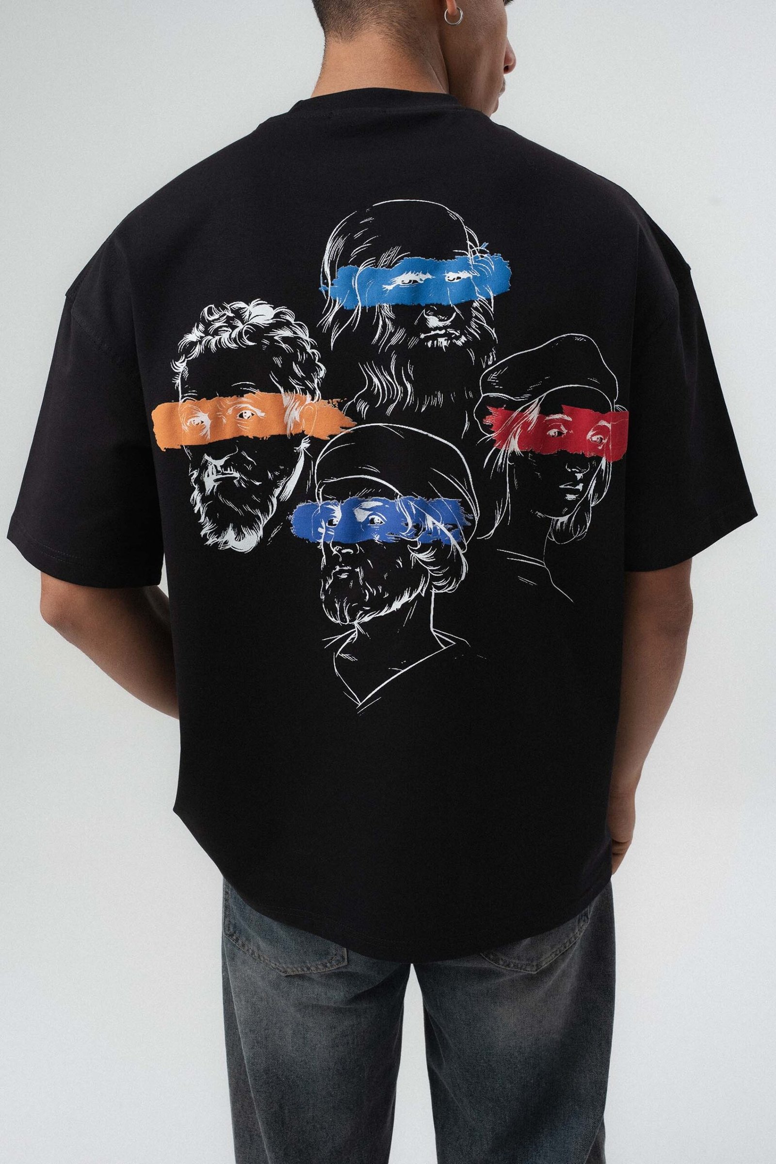 Art Graphic Embossed Black Oversize Printed T-Shirt