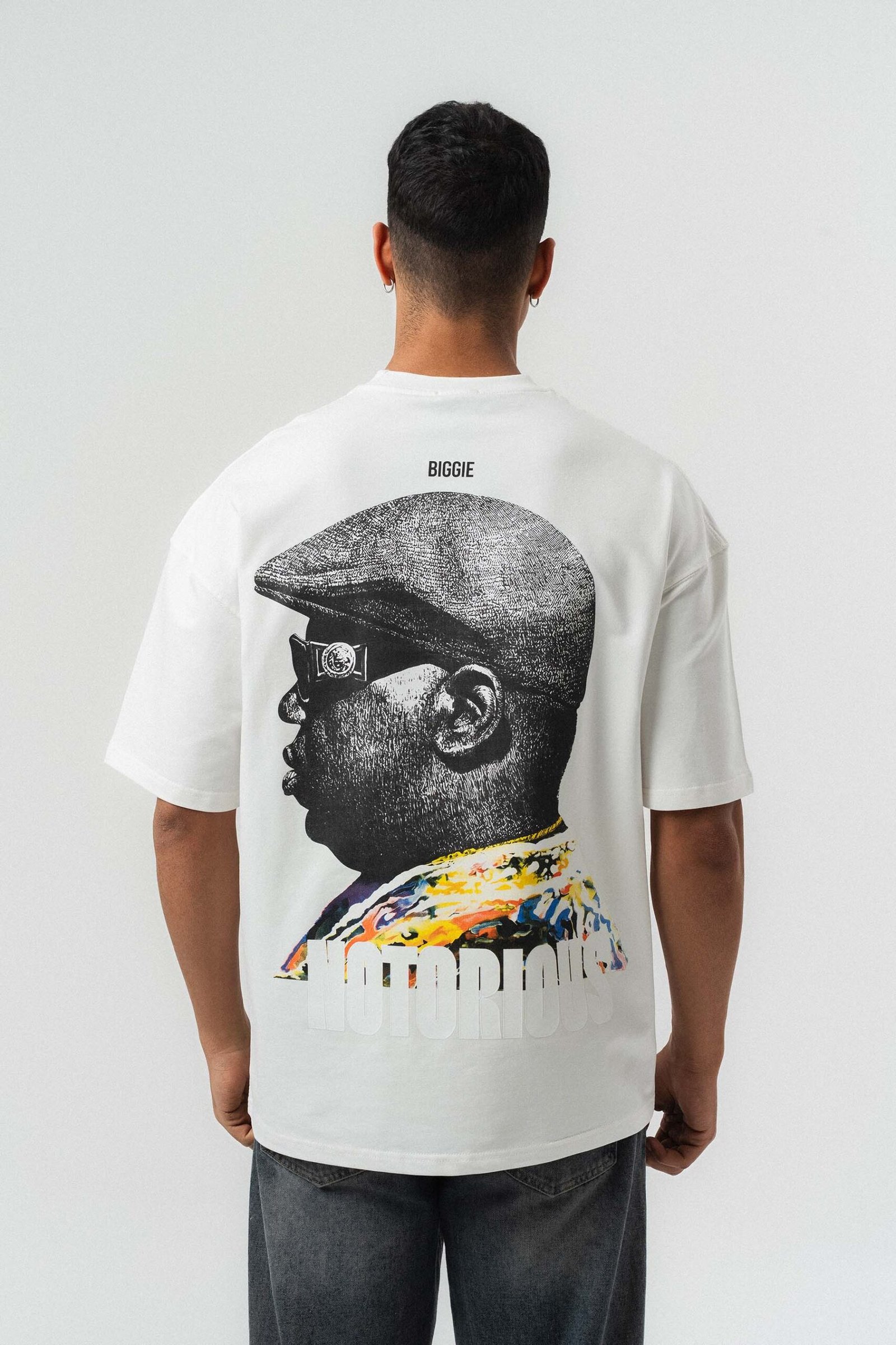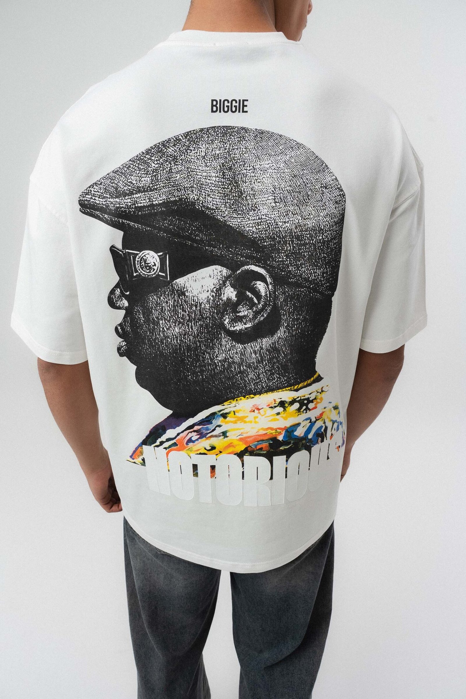 Biggie Smalls Kabartma Printed White Oversize Printed T-Shirt