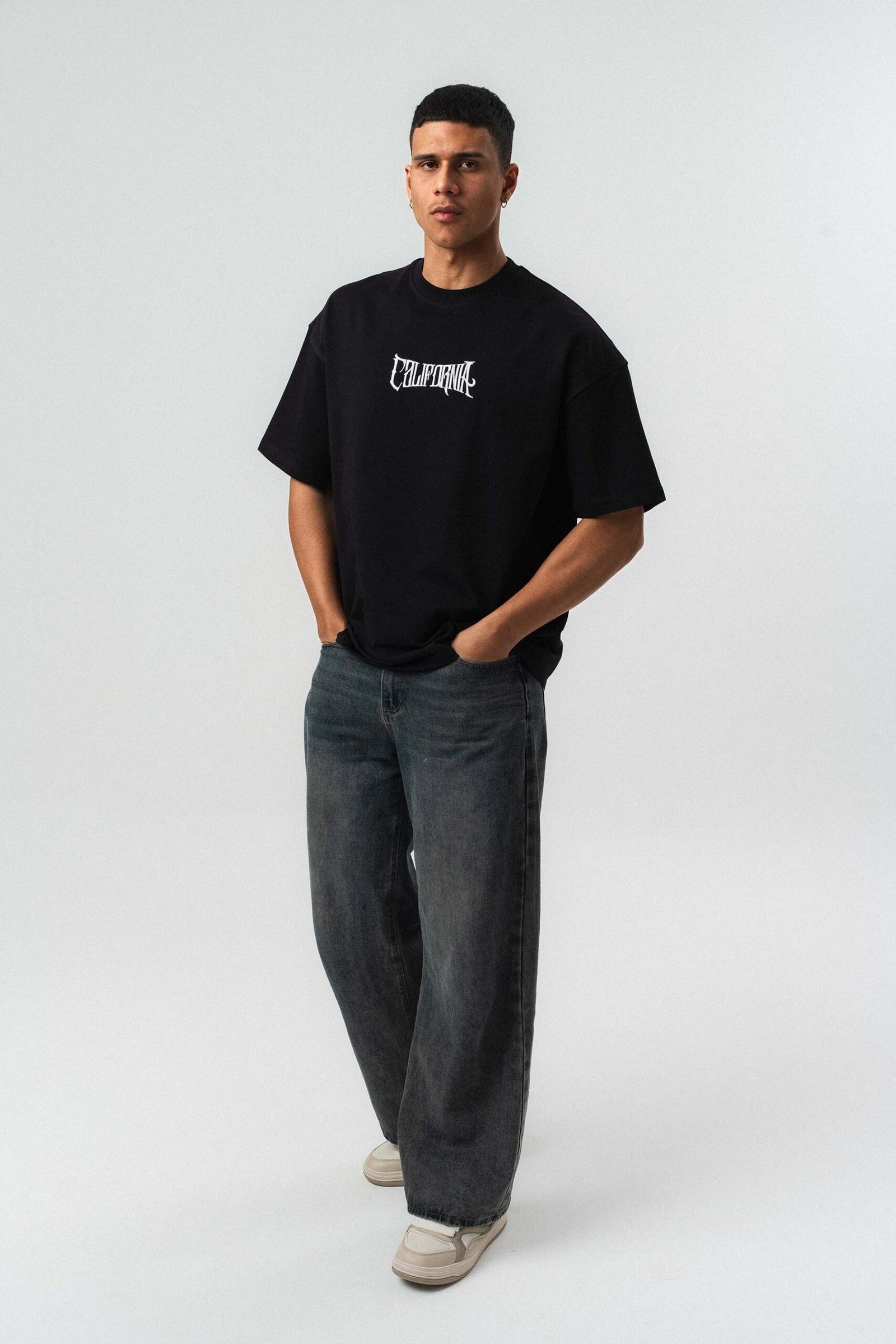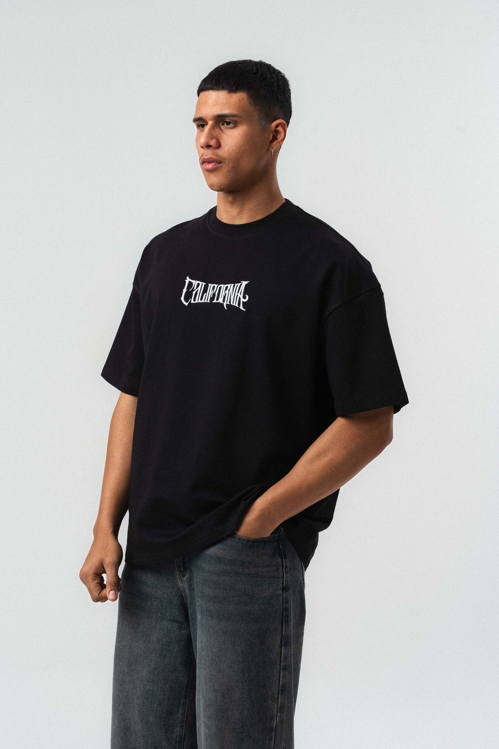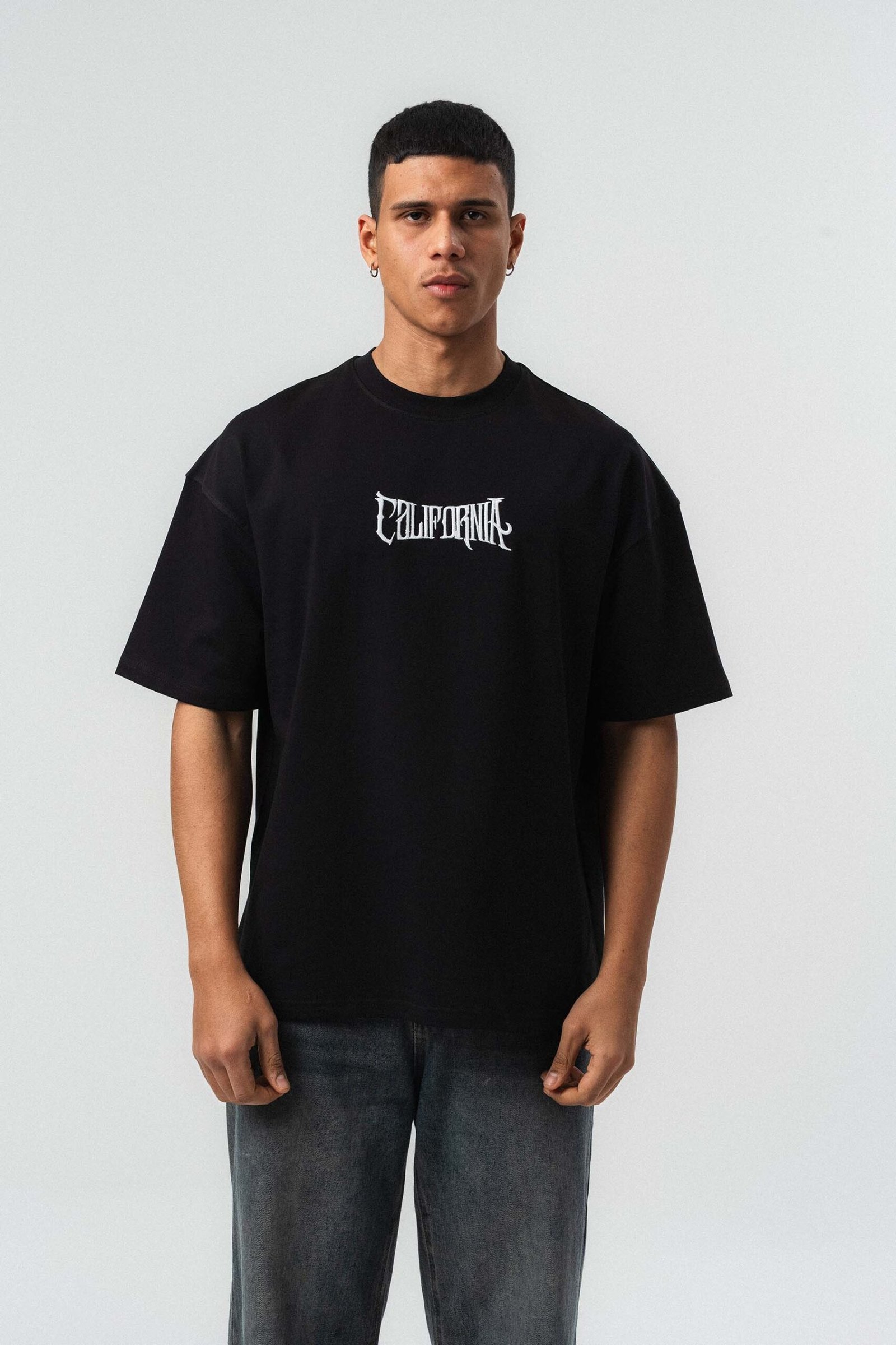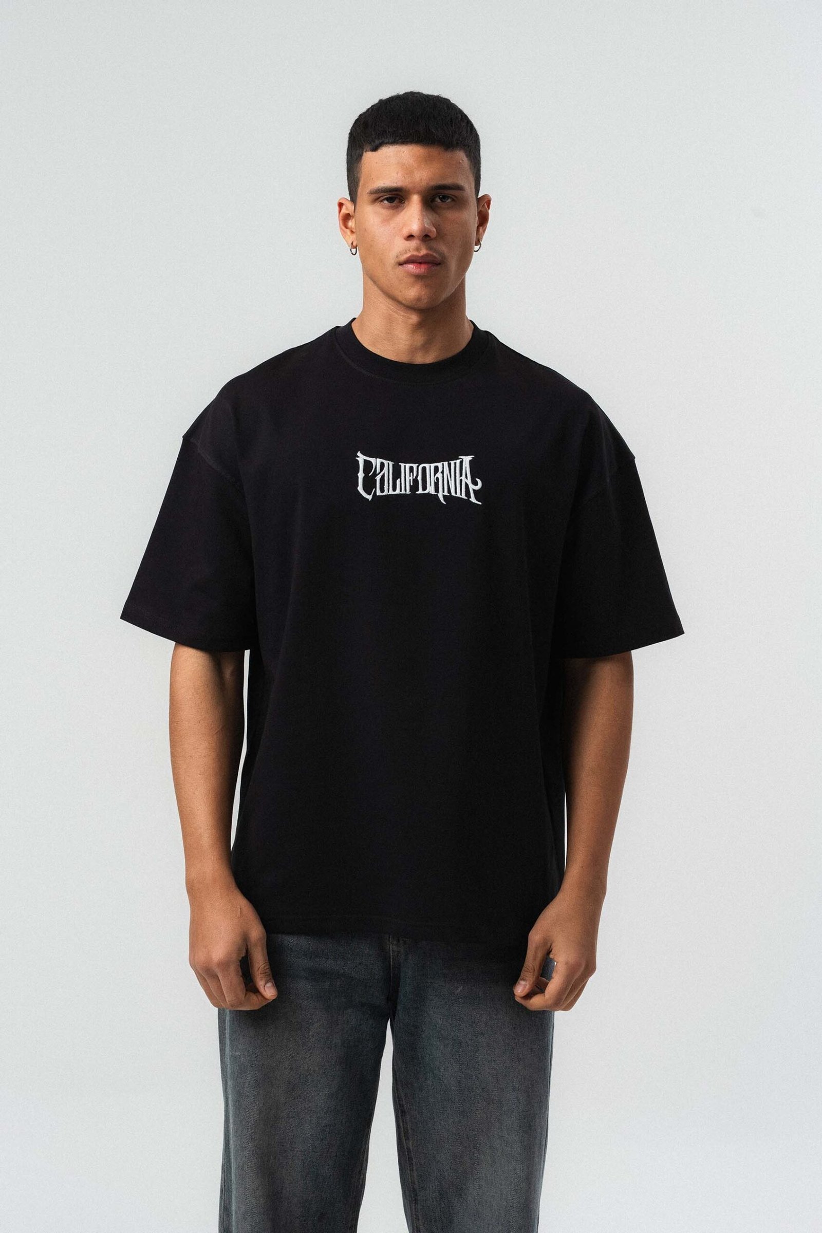 California Printed Black Oversize Printed T-Shirt