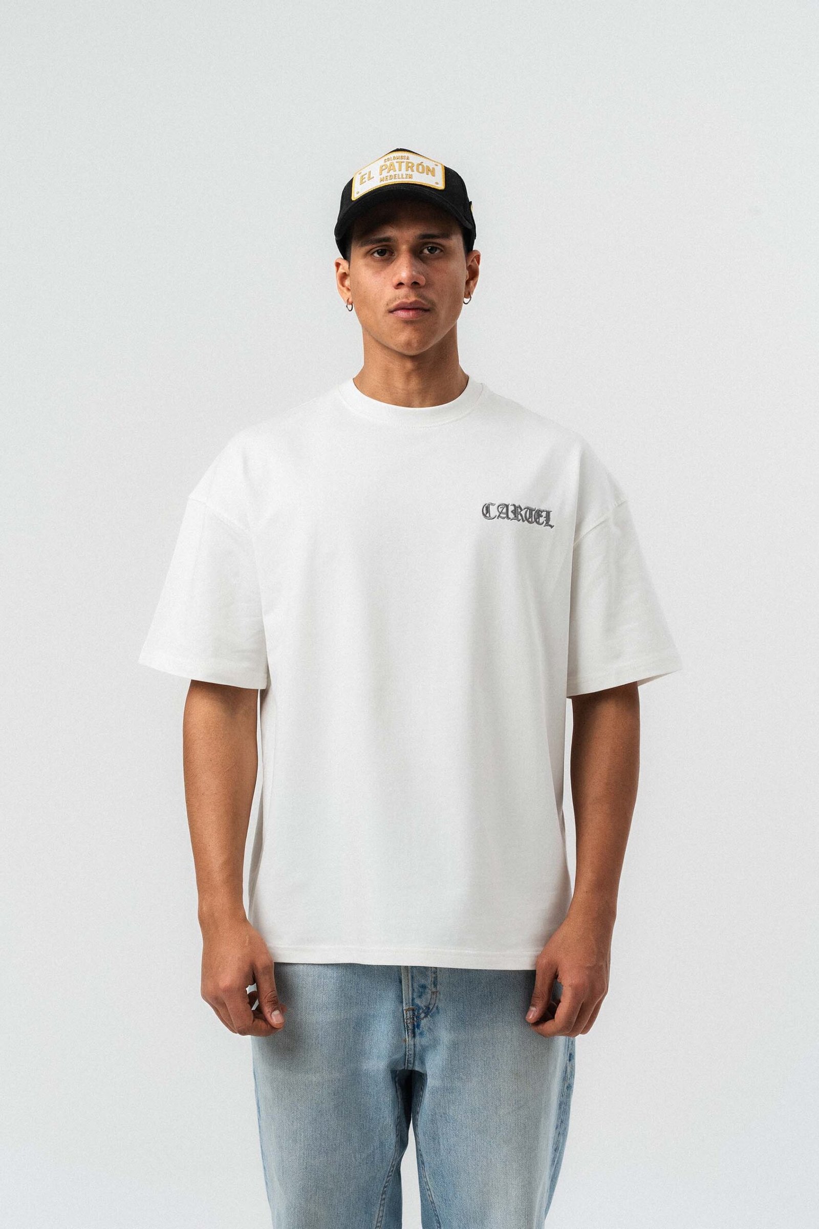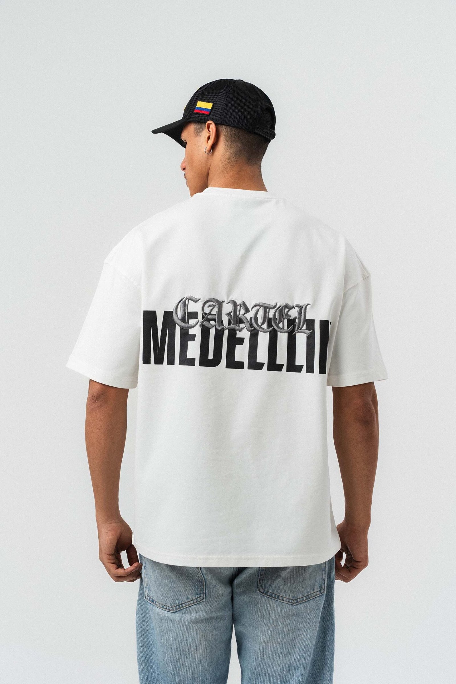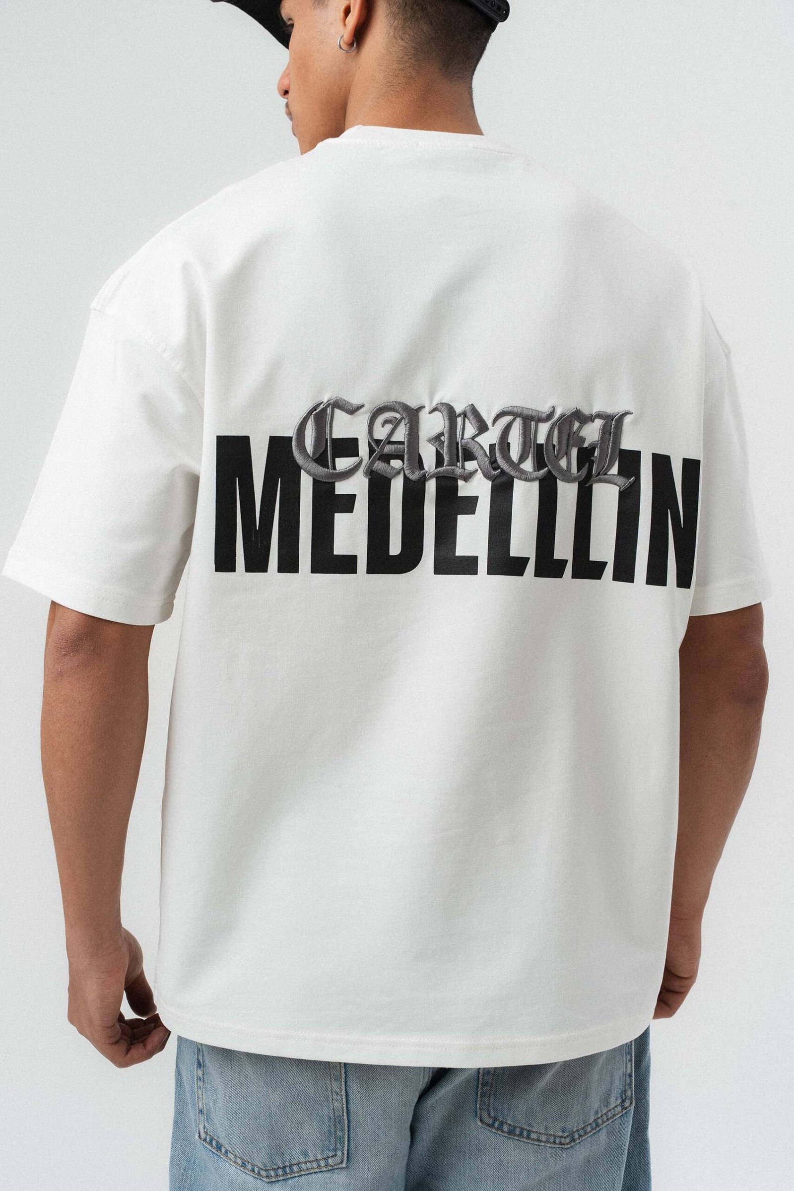 Cartel Medellin Embroidered White Oversize Printed T-Shirt