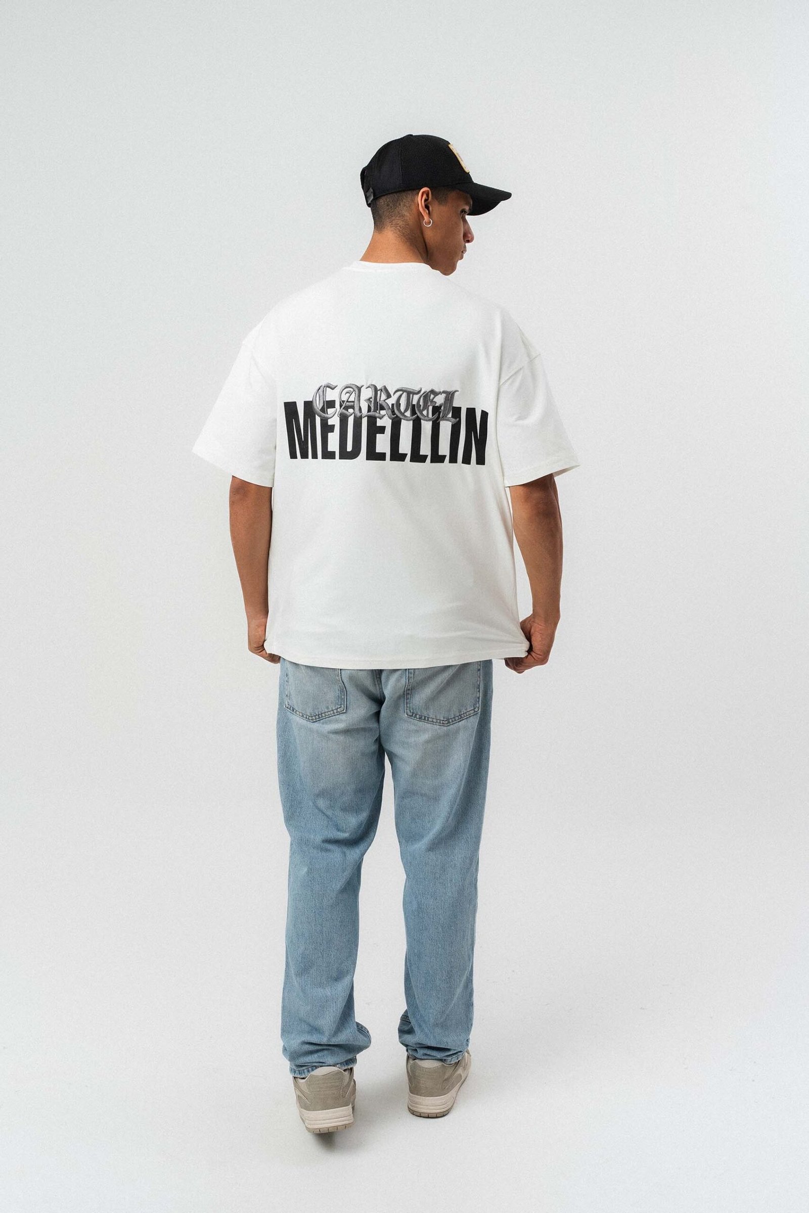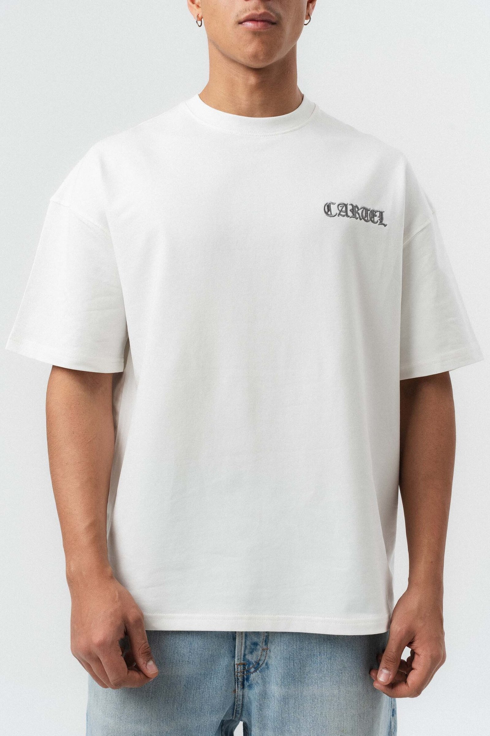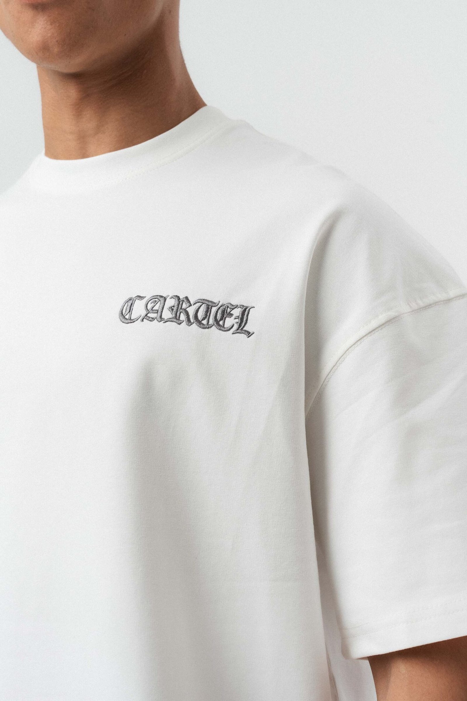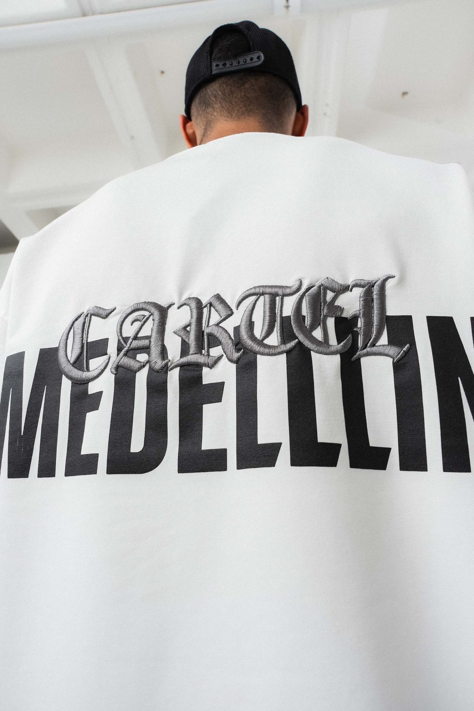 Cartel Medellin Embroidered White Oversize Printed T-Shirt