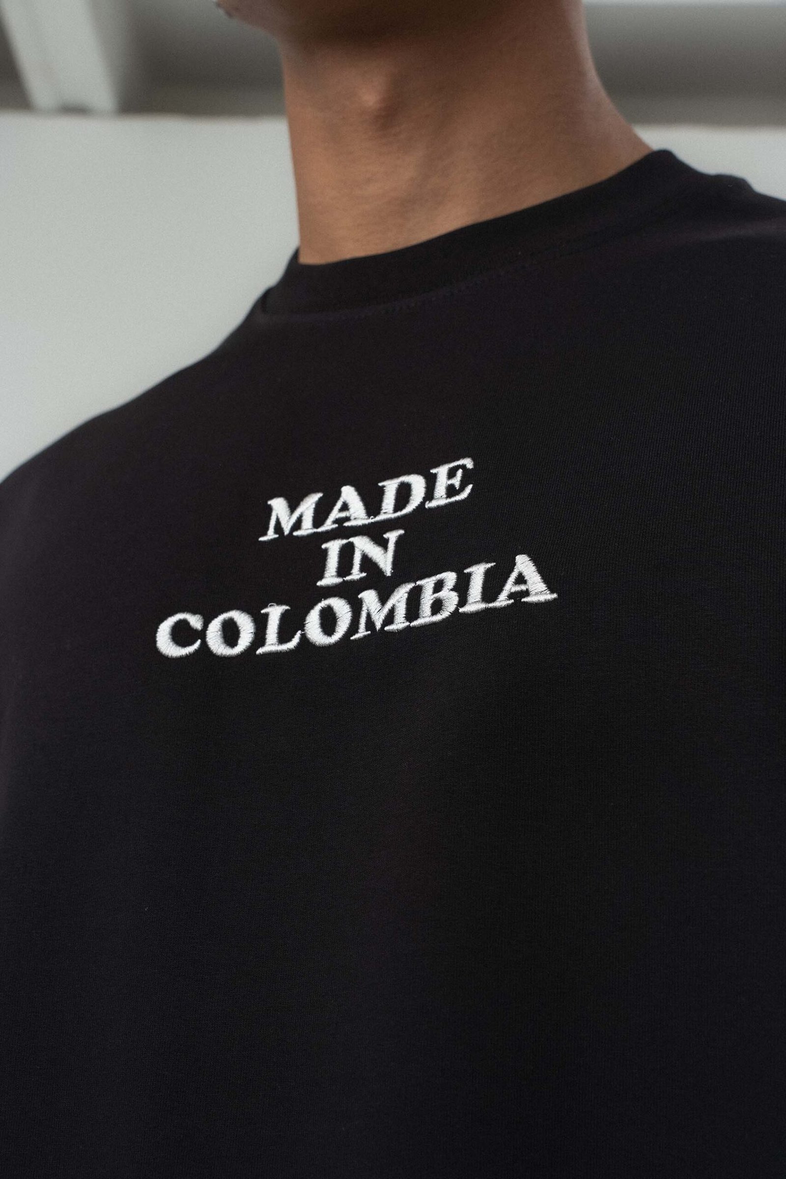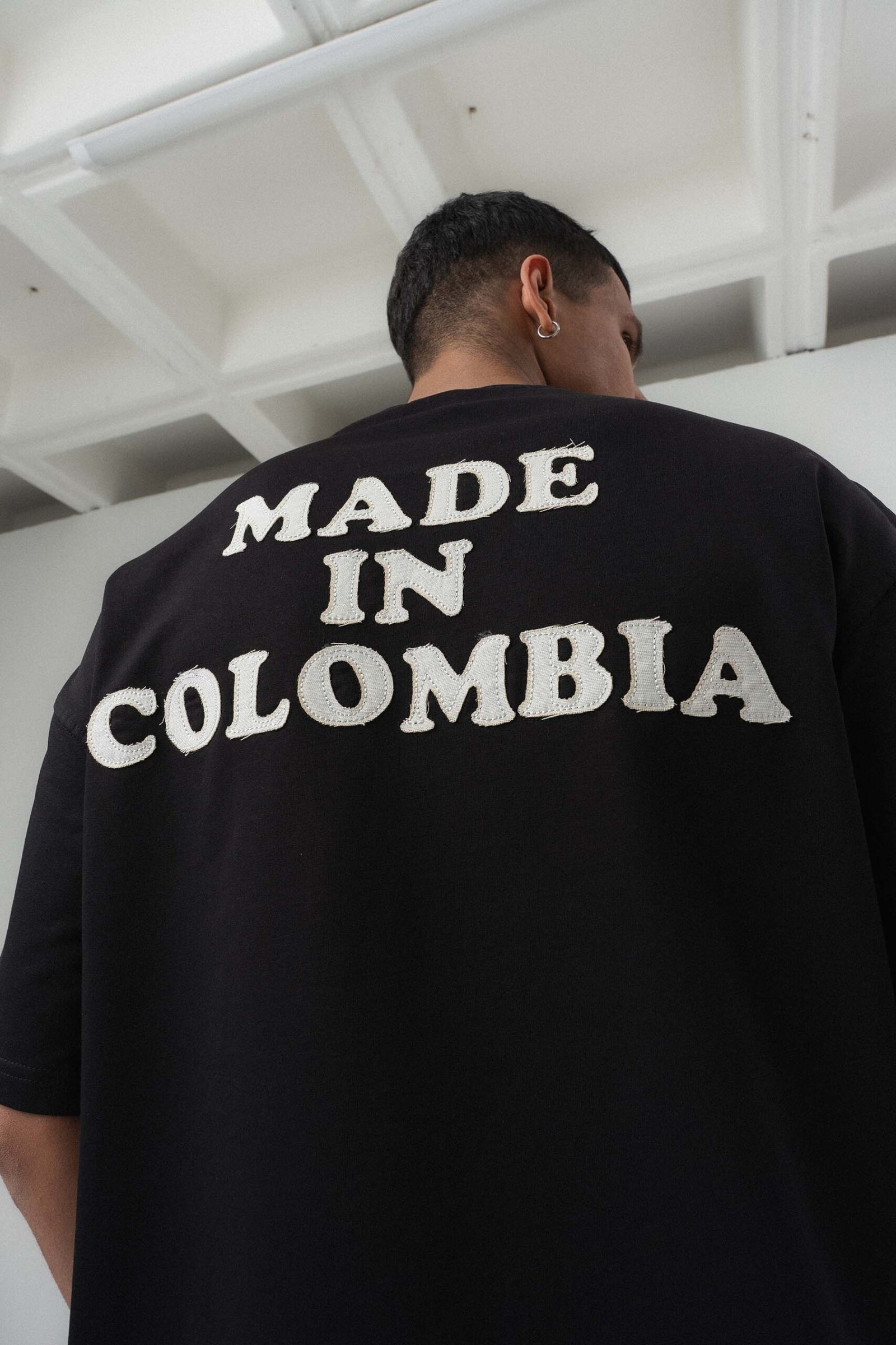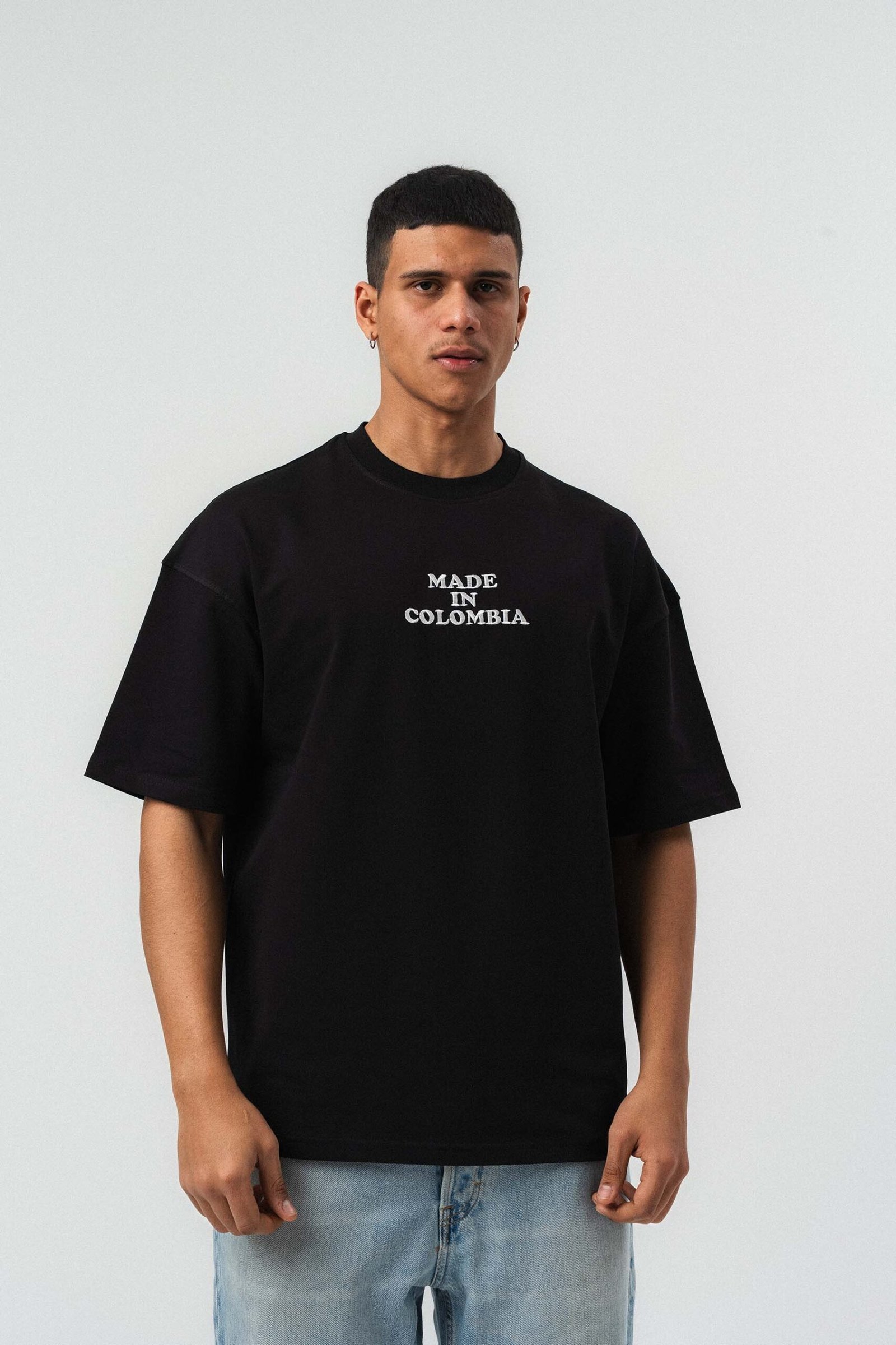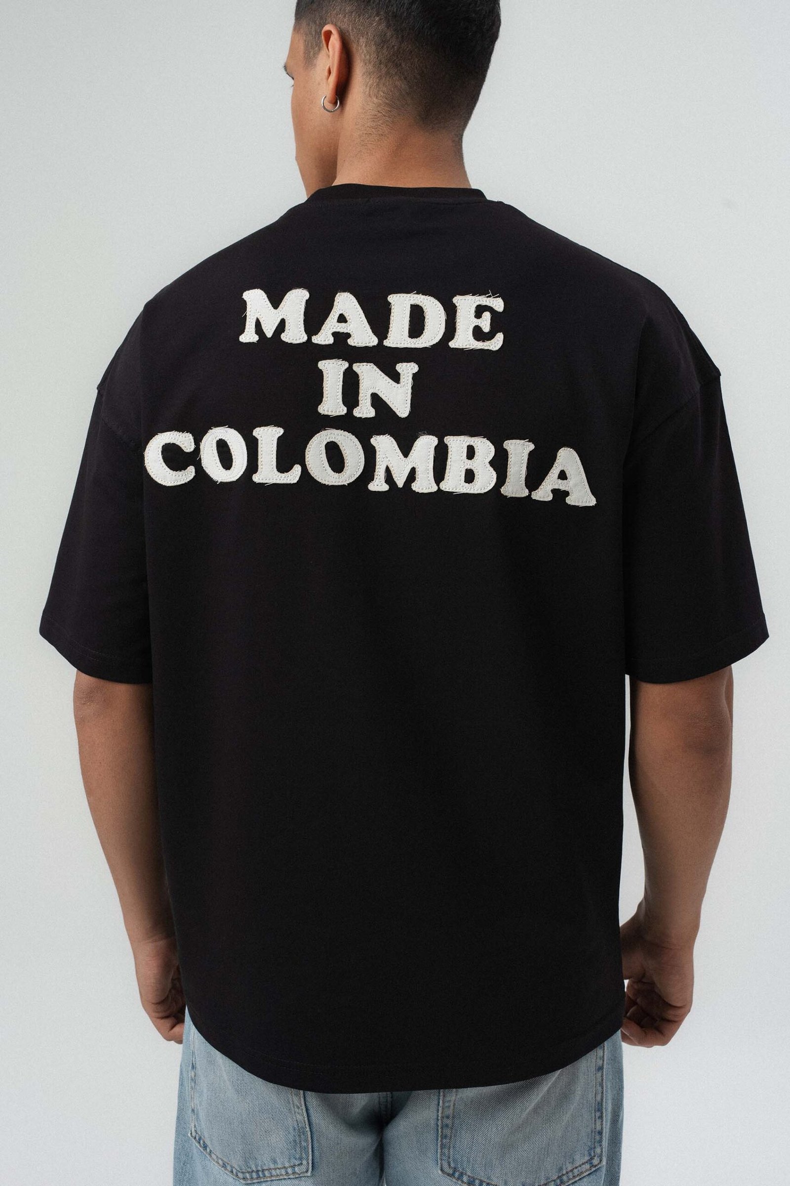 Colombia Embroidered Black Oversize Printed T-Shirt