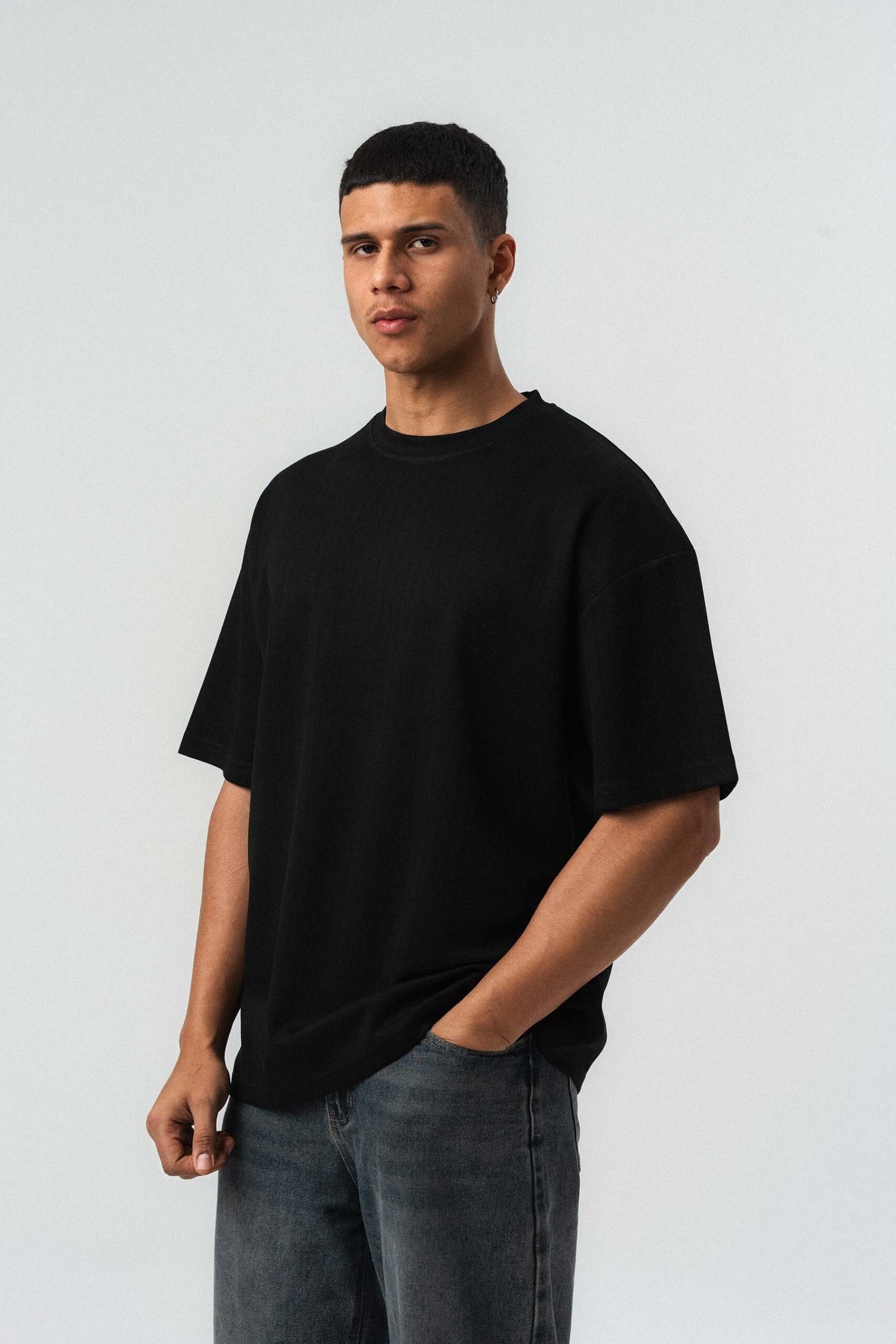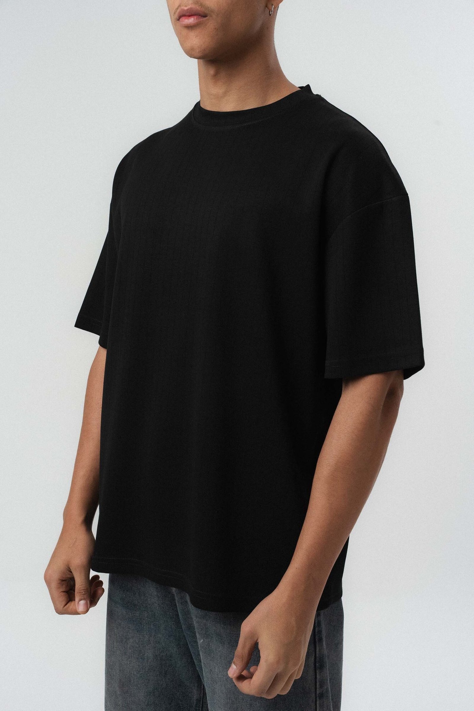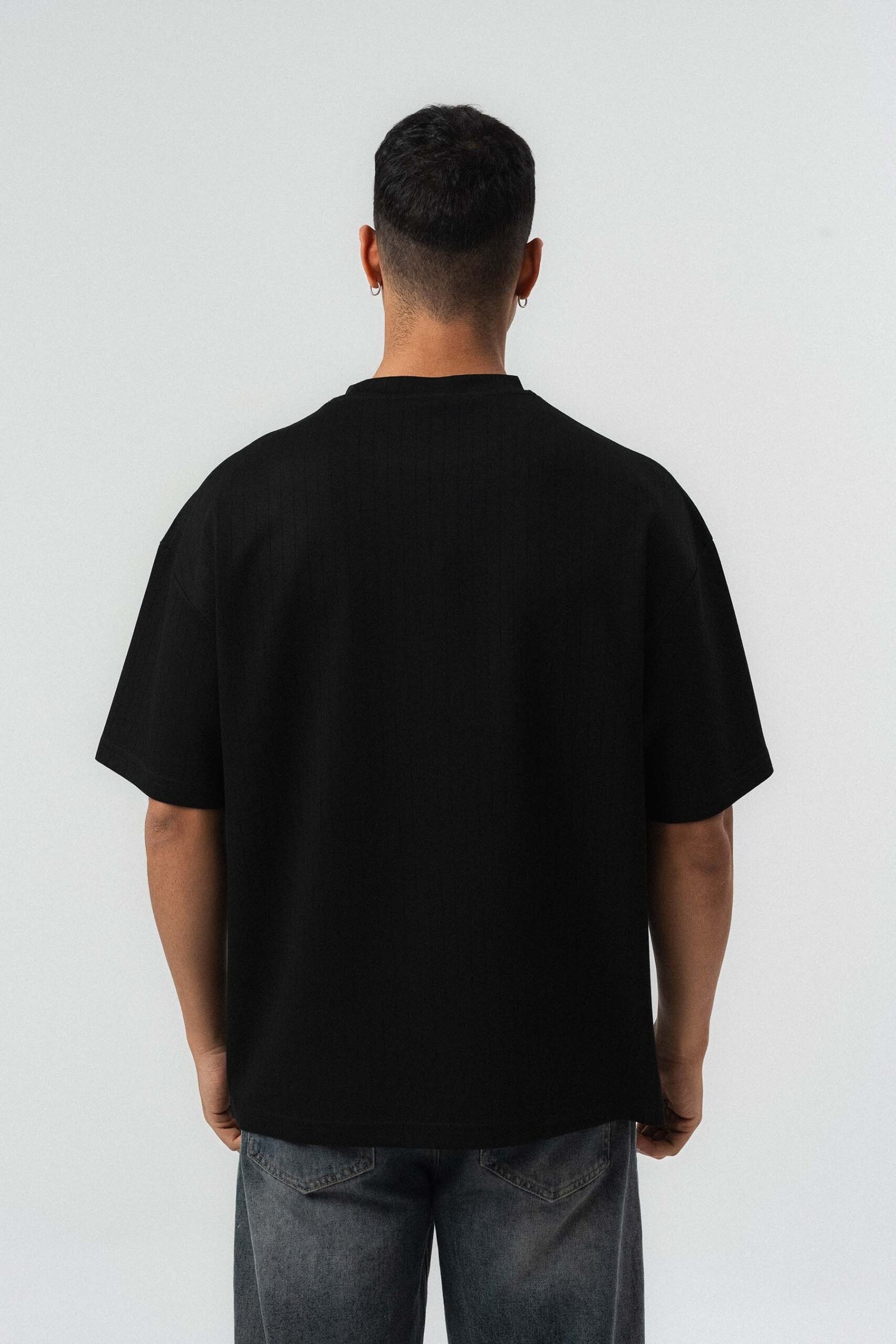 Embroidered Çizgili Premium Oversize T-Shirt Black