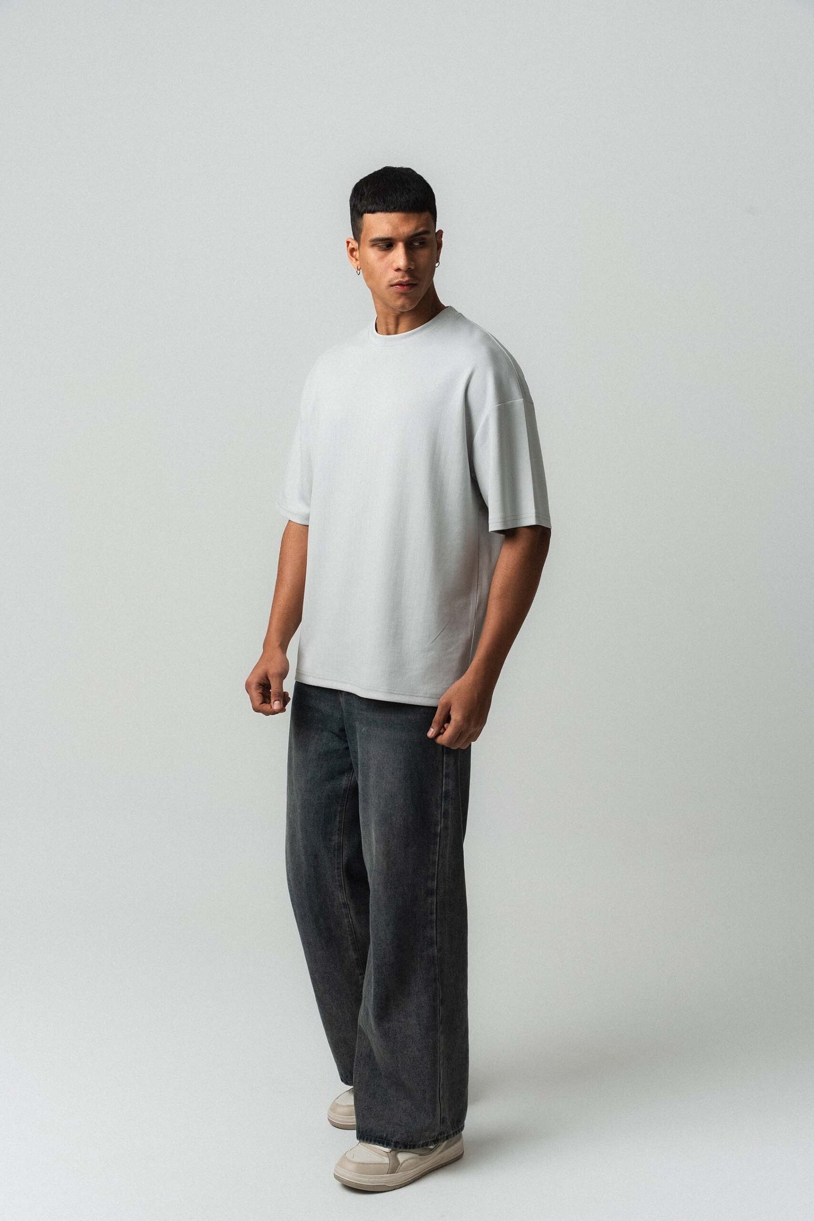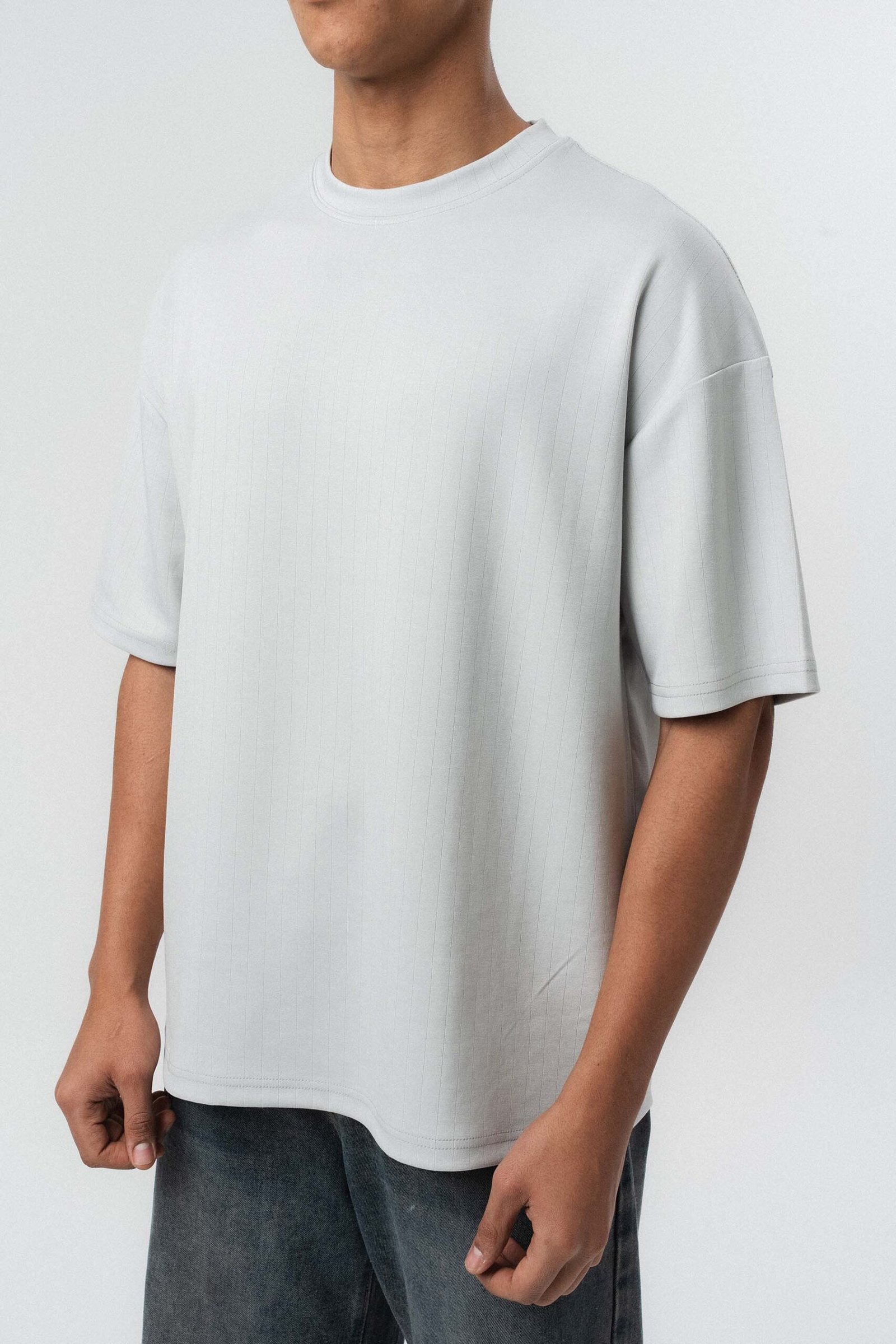Embroidered Çizgili Premium Oversize T-Shirt Gray