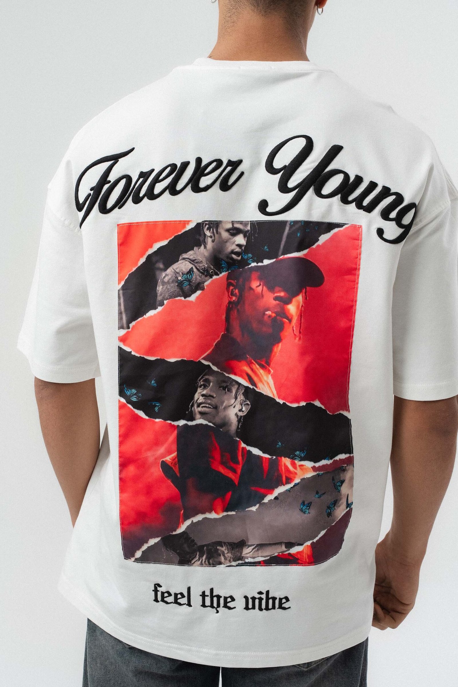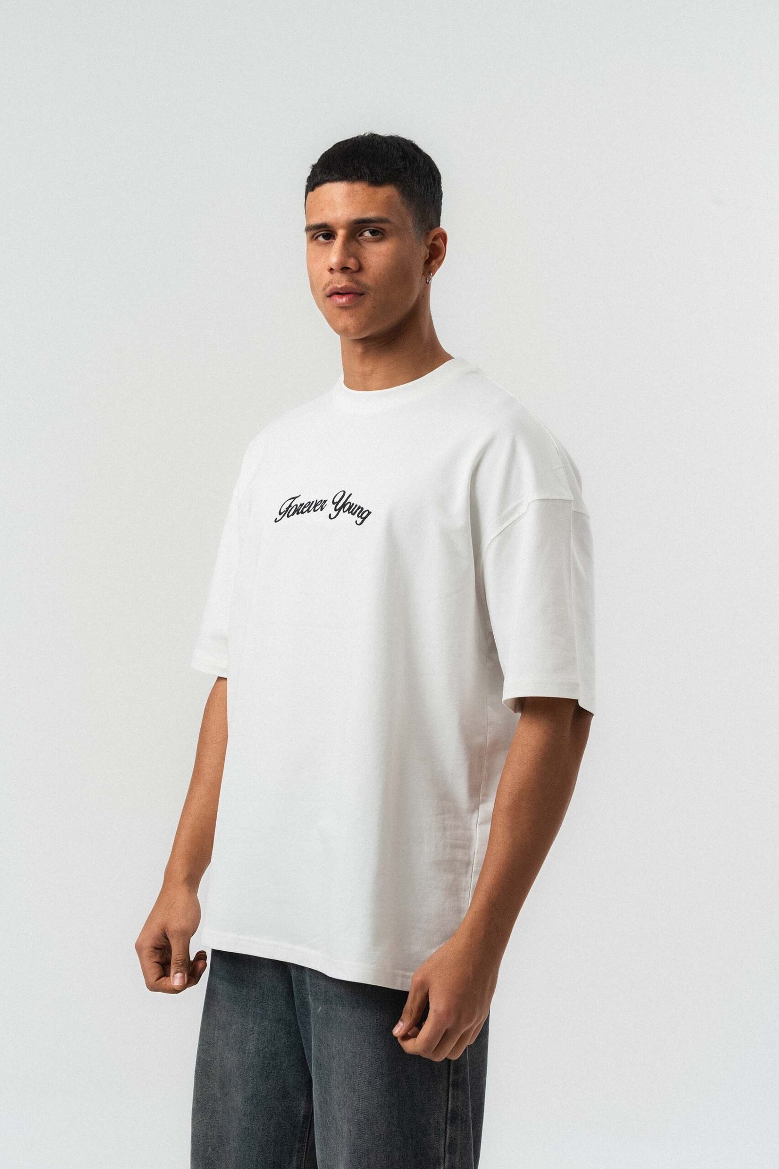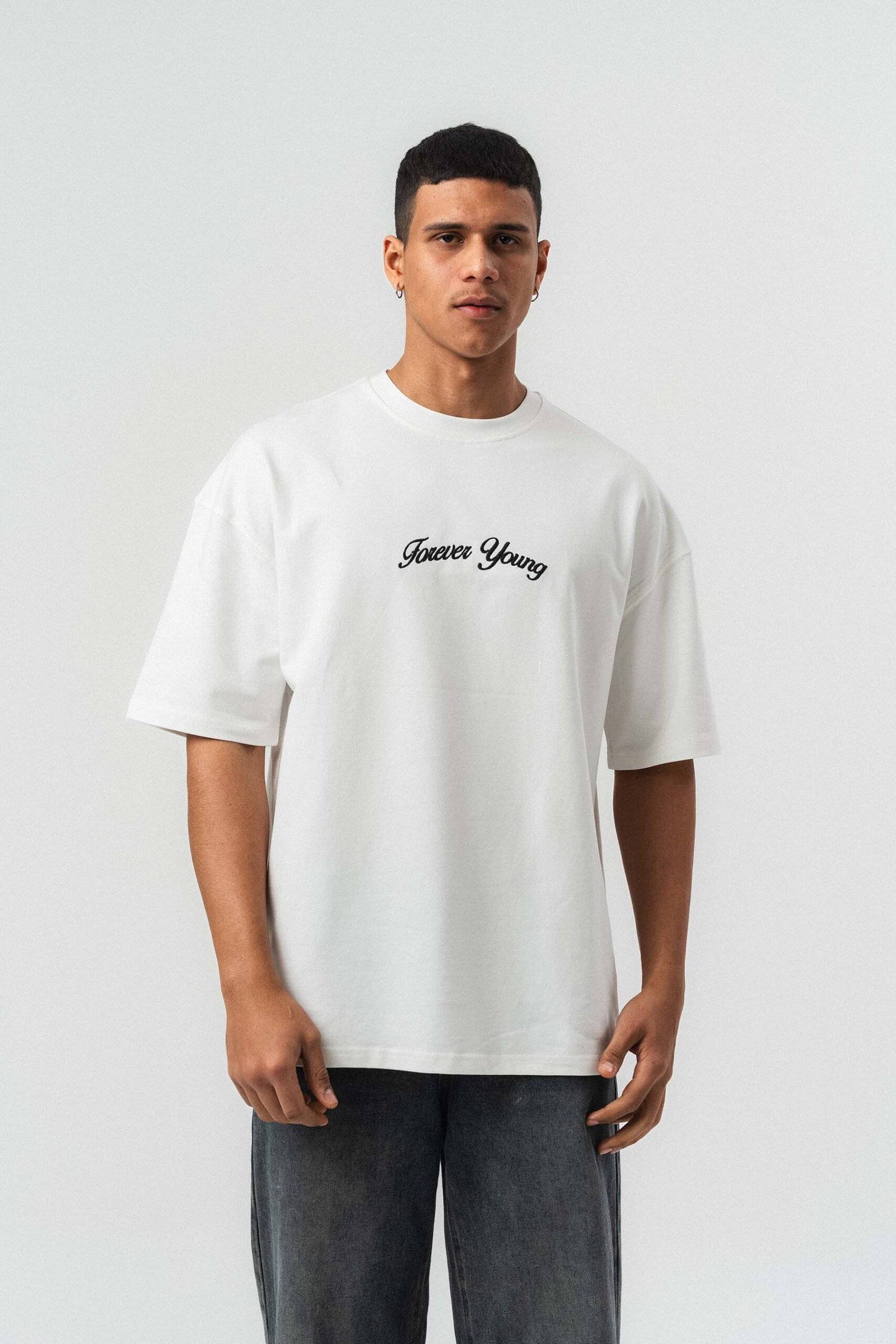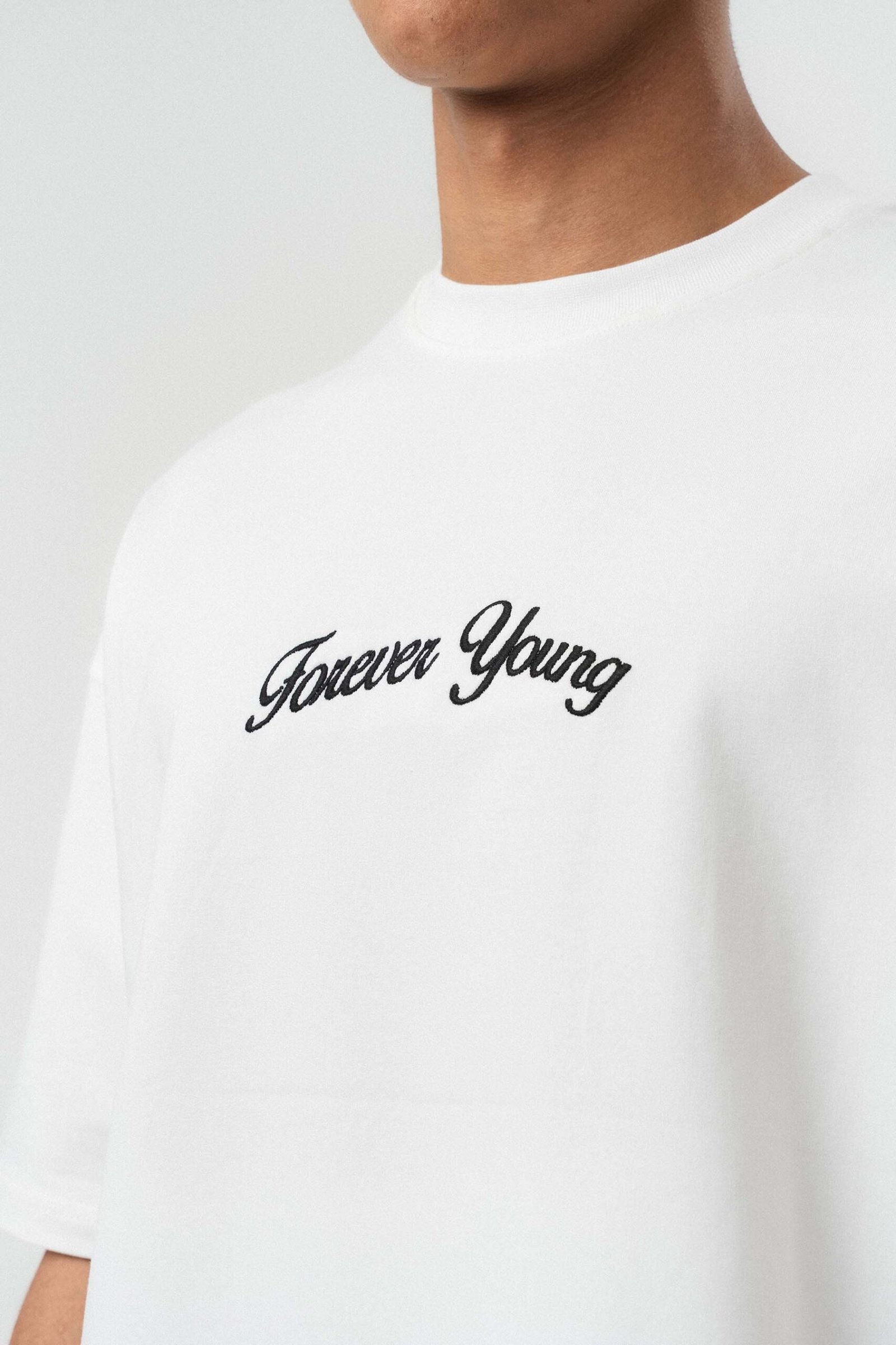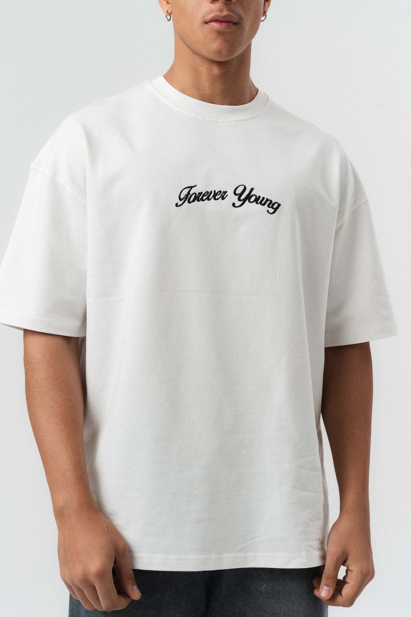 Forever Young Printed White Oversize Printed T-Shirt