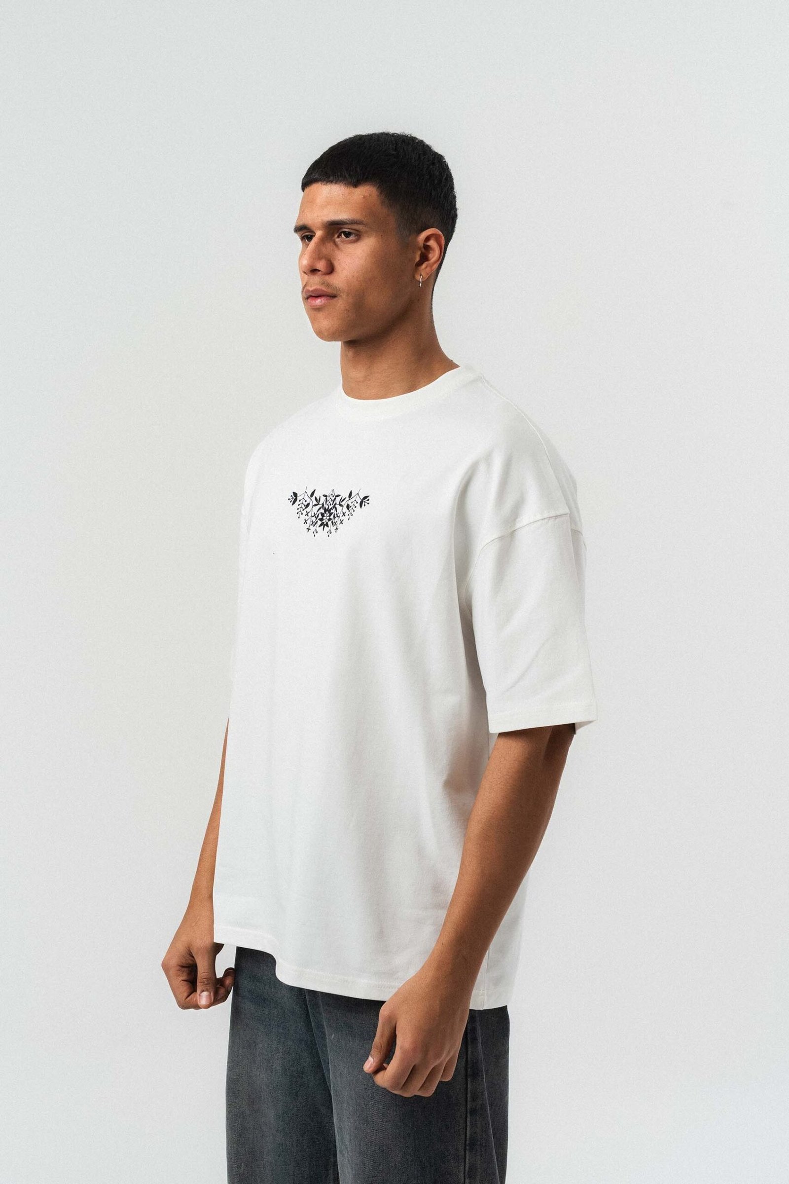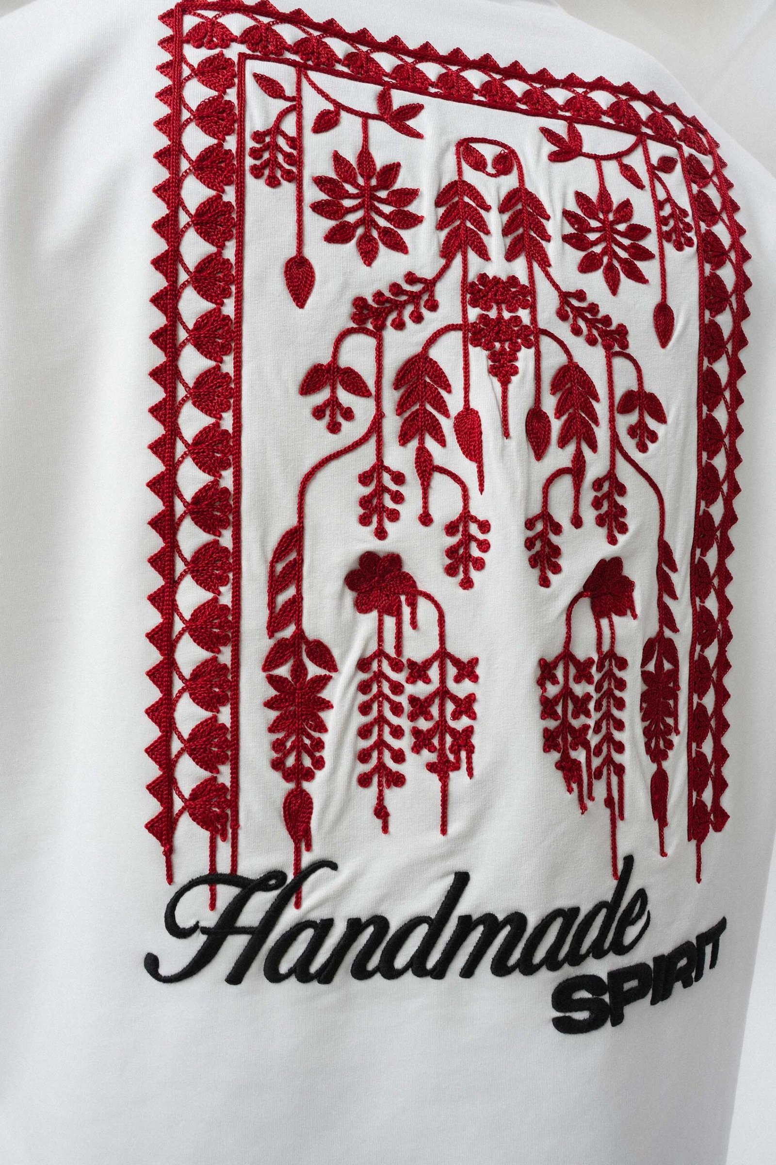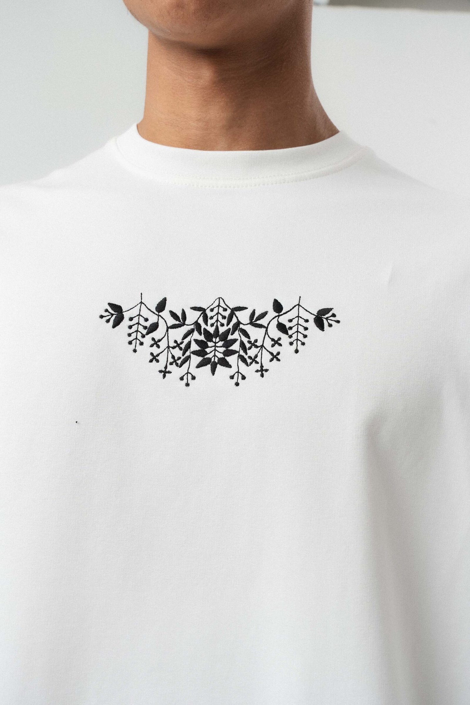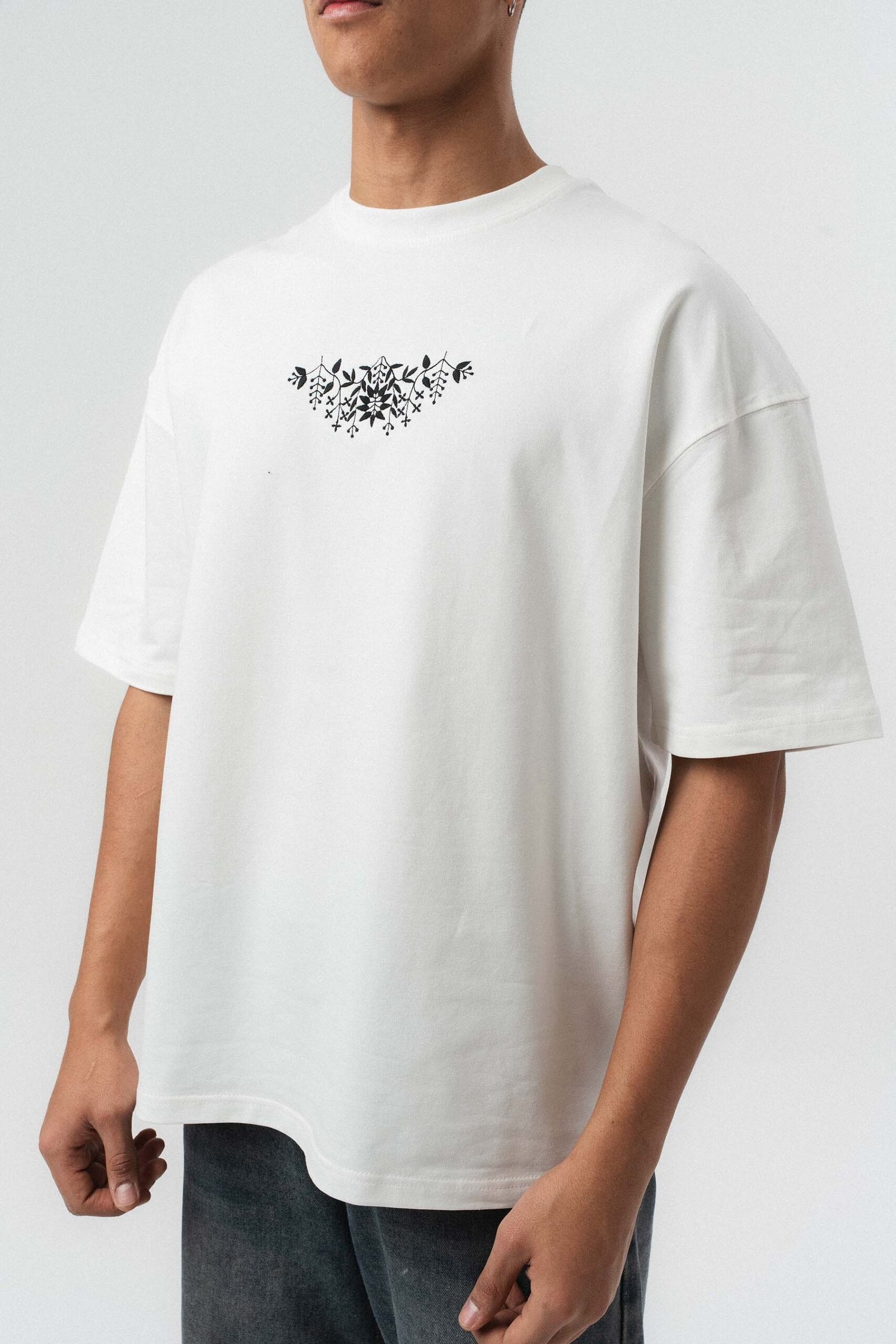Handmade Sprit Etnik Patterned Embroidered White Oversize Printed T-Shirt