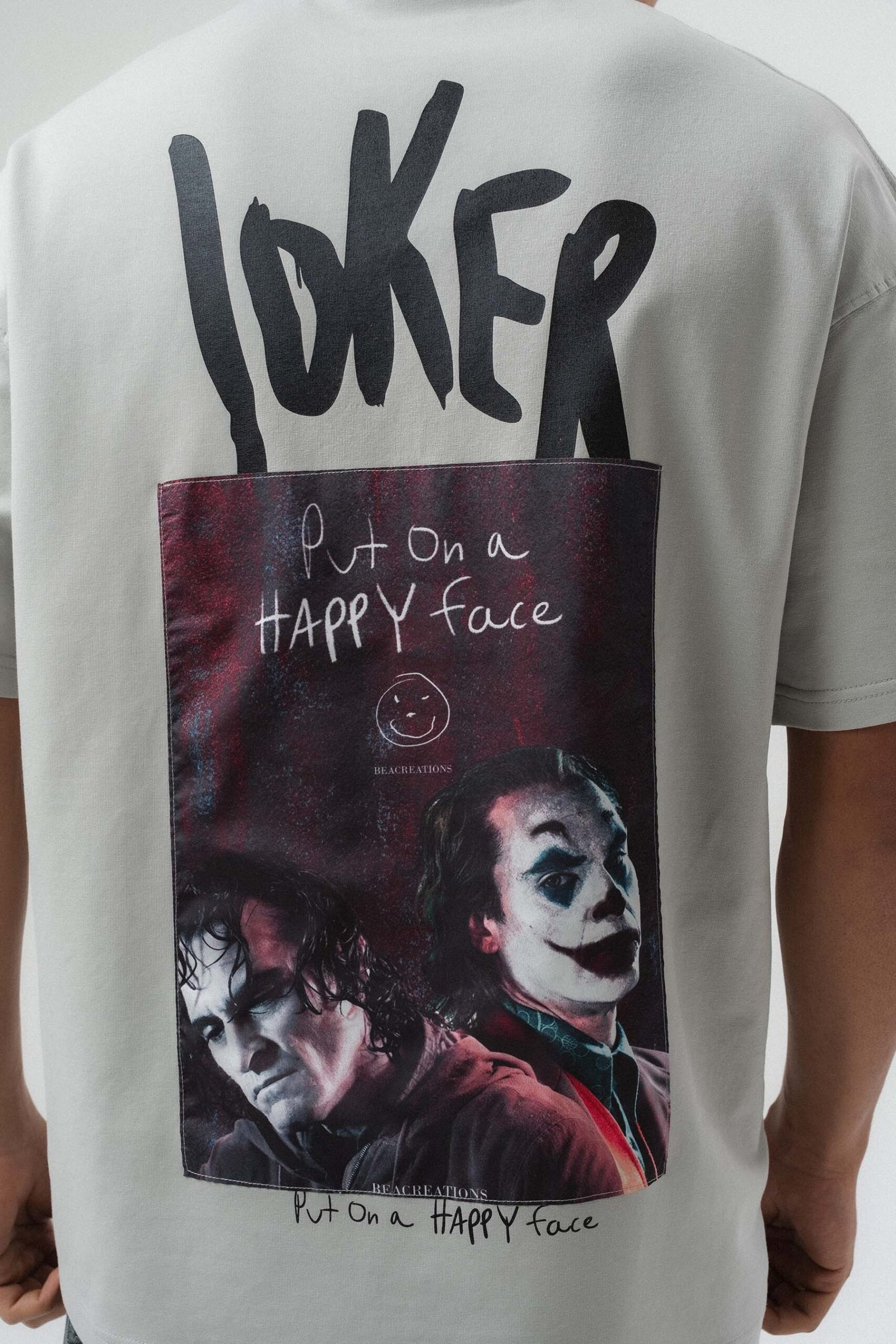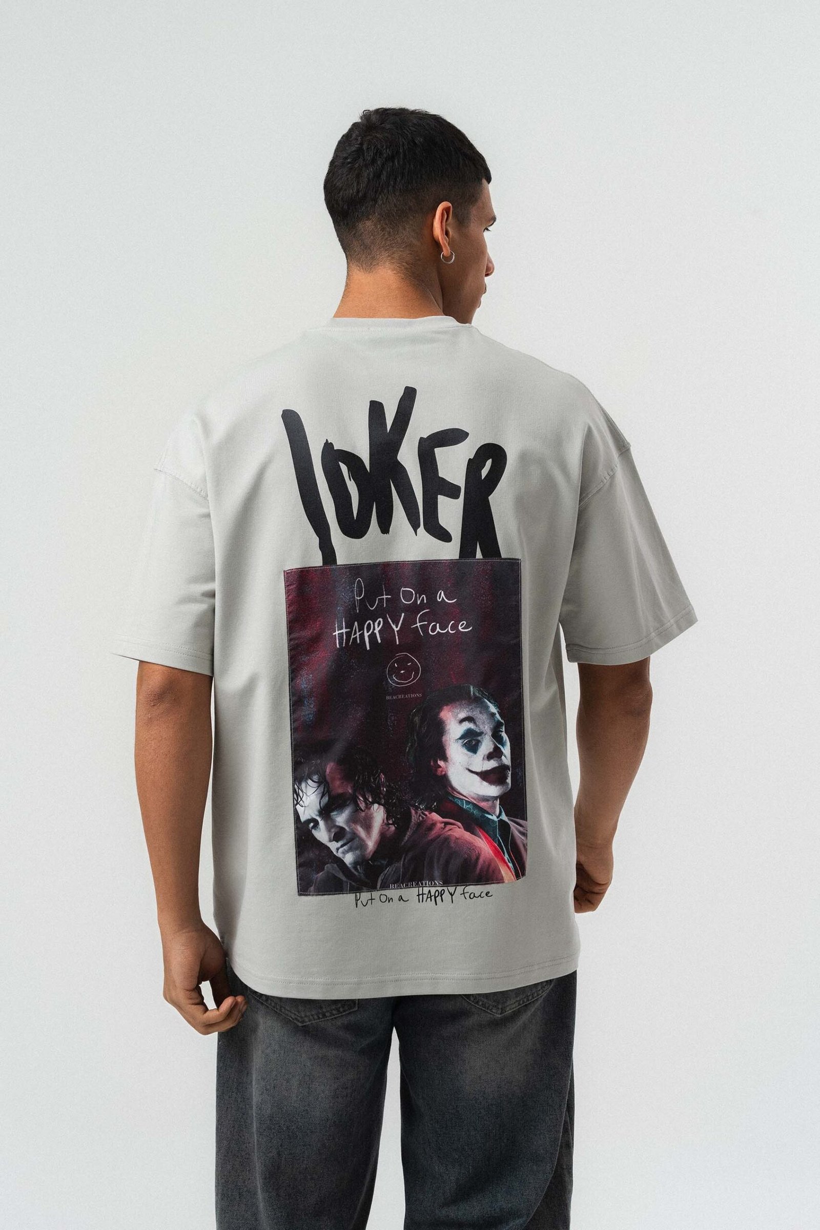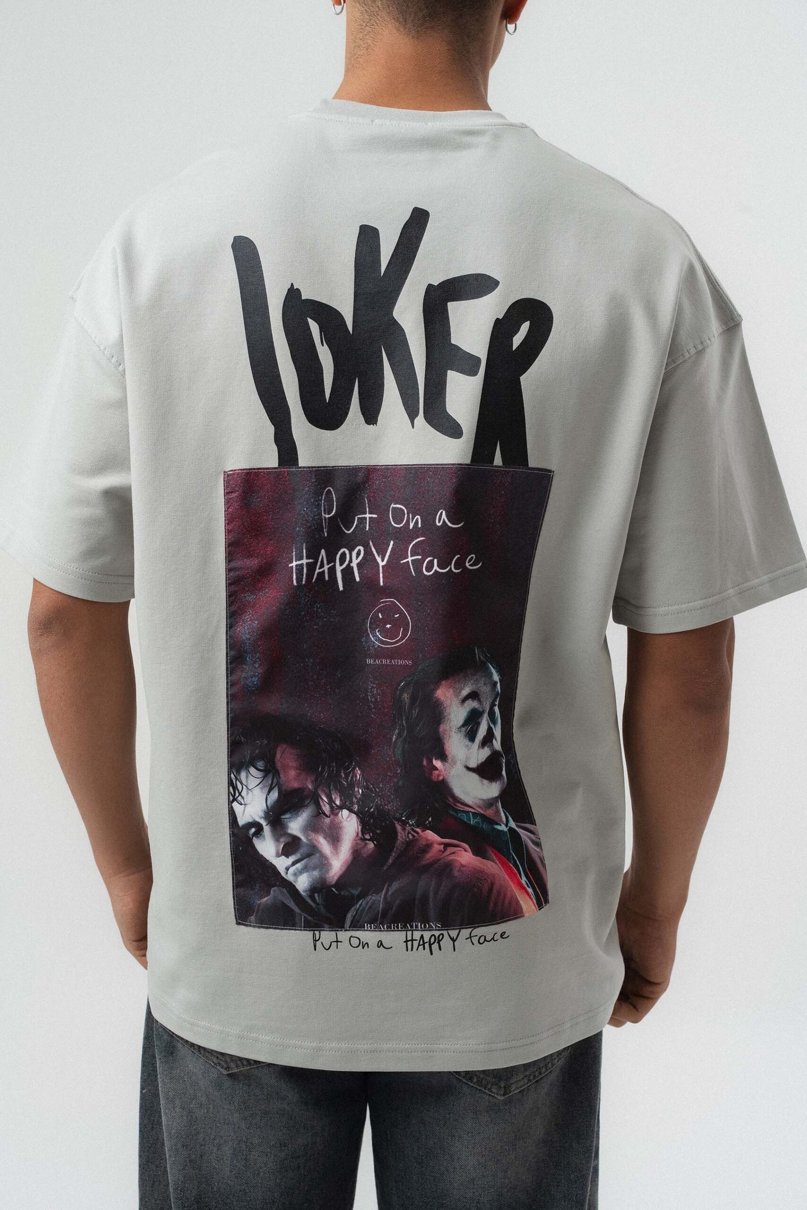 Joker Put On Happy Face Printed Gray Oversize Printed T-Shirt