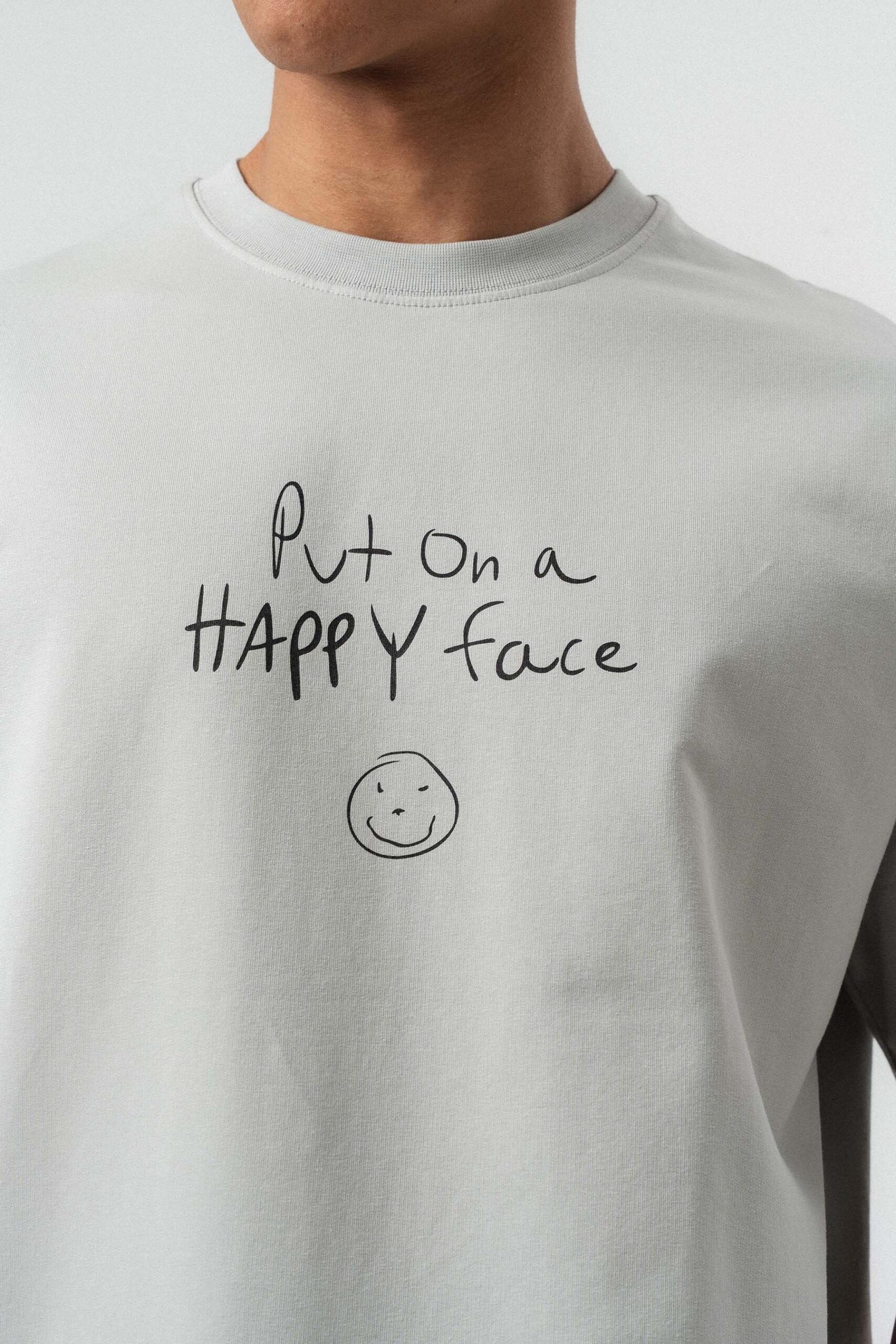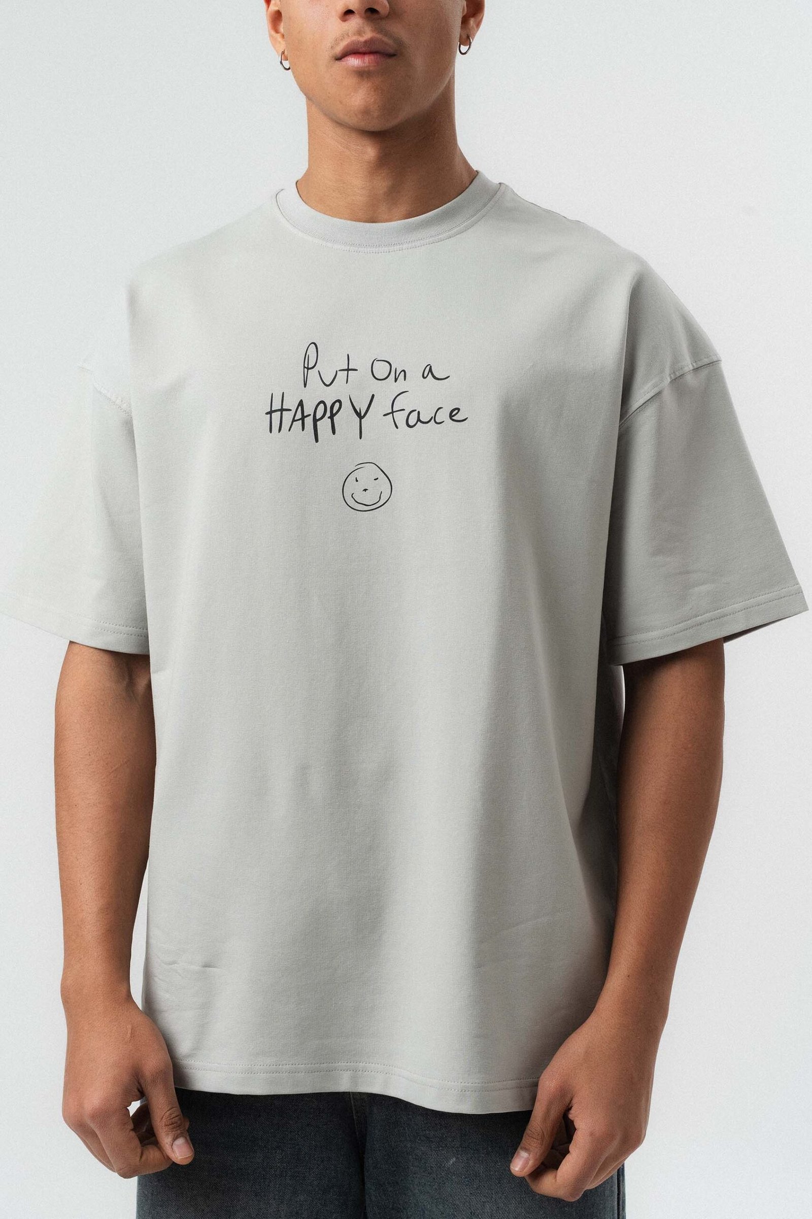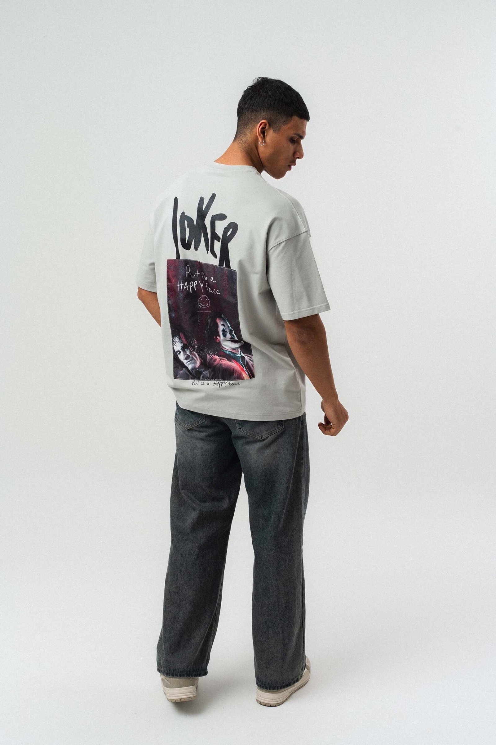 Joker Put On Happy Face Printed Gray Oversize Printed T-Shirt
