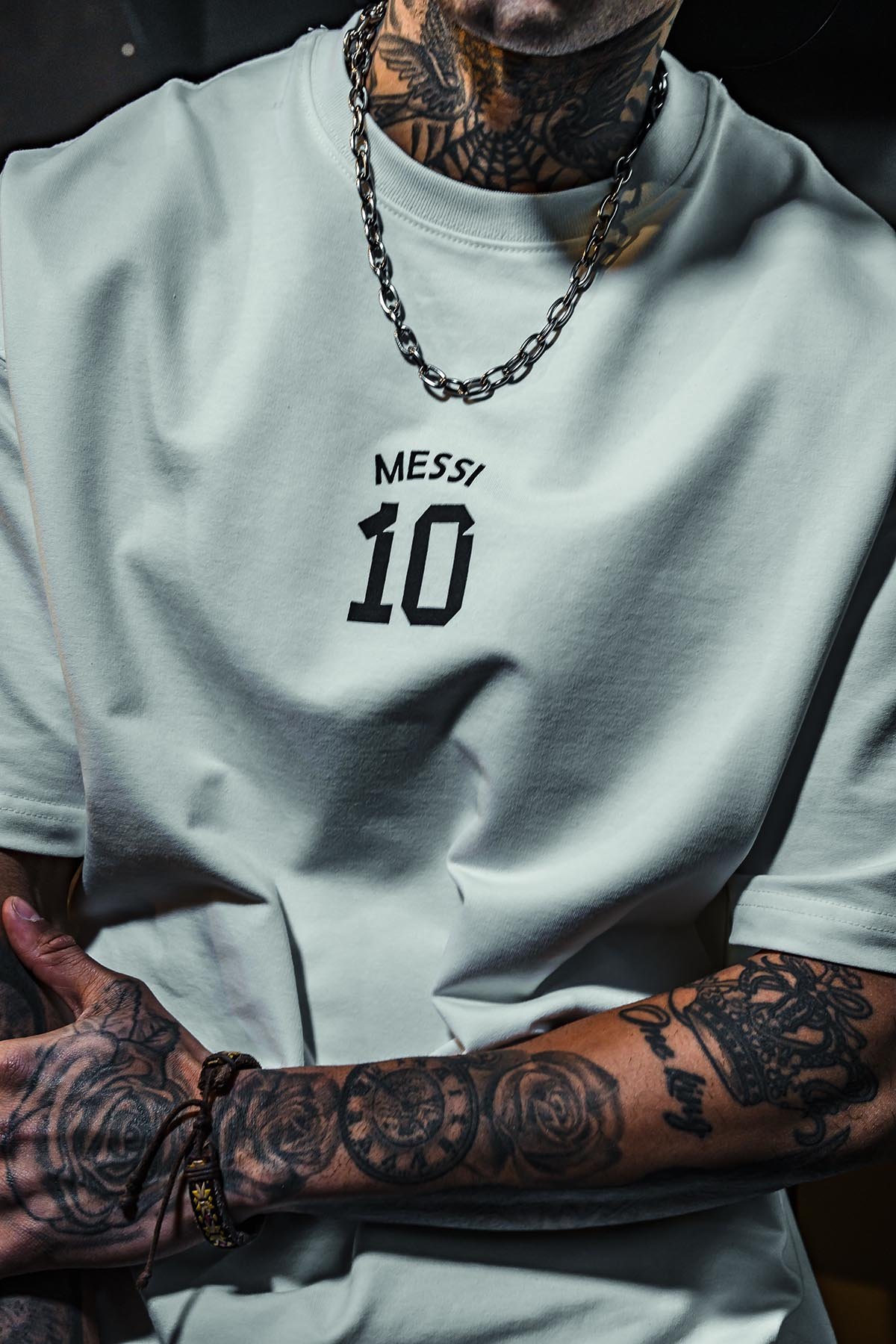 Messi Number 10 Printed Oversize White T-Shirt