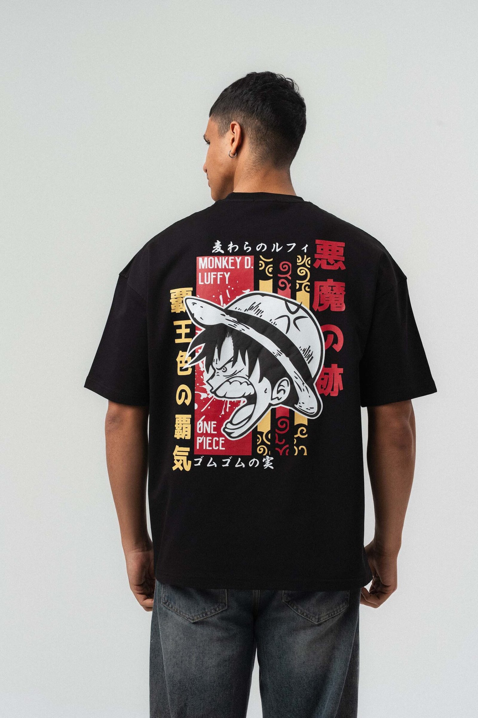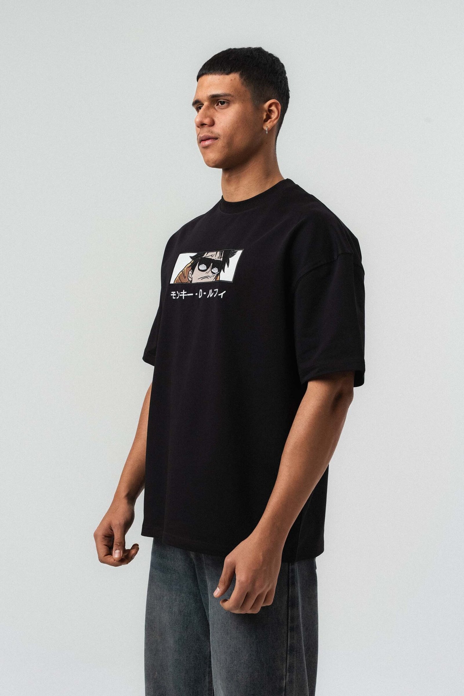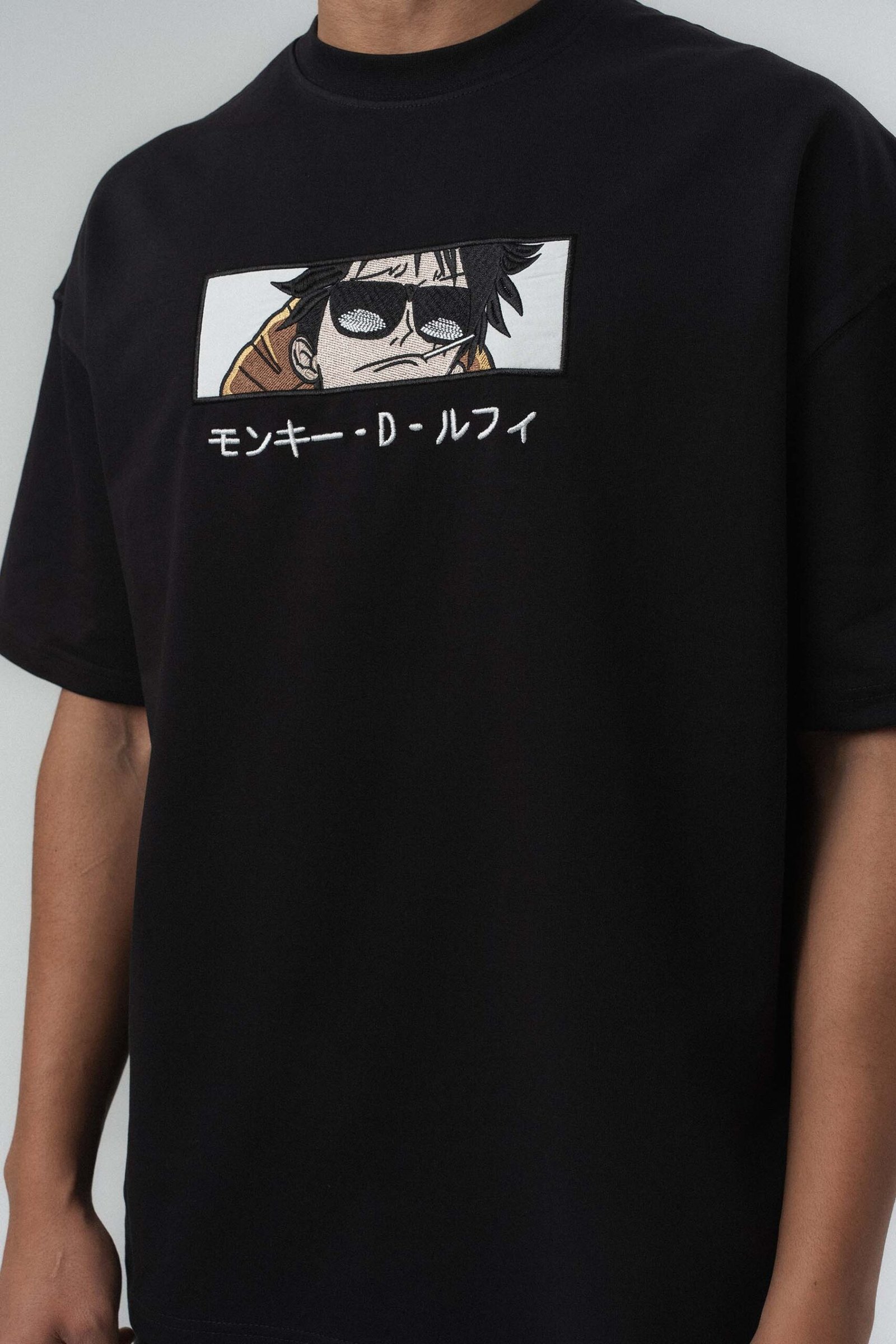 Monkey D Luffy Embroidered Black Oversize Printed T-Shirt