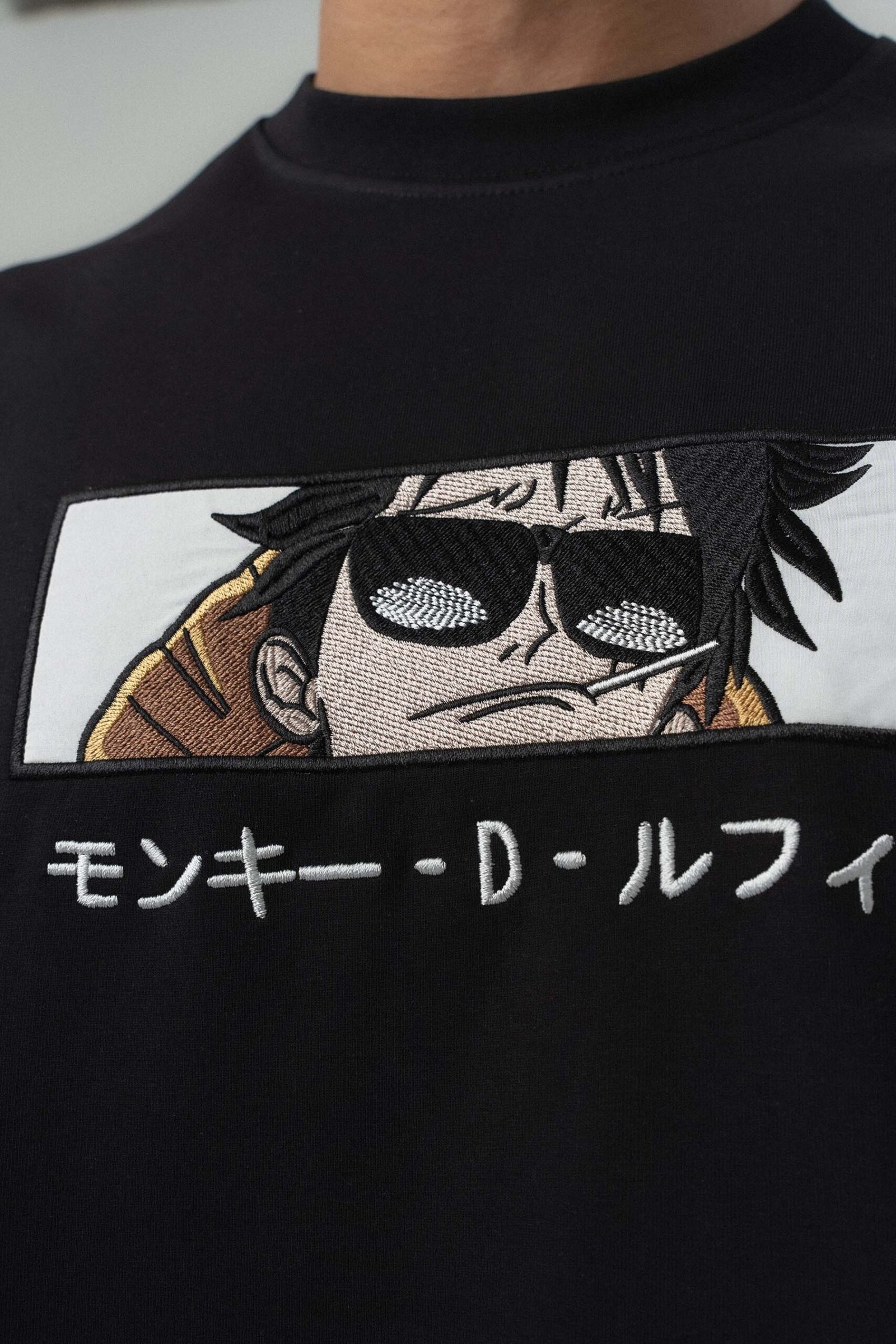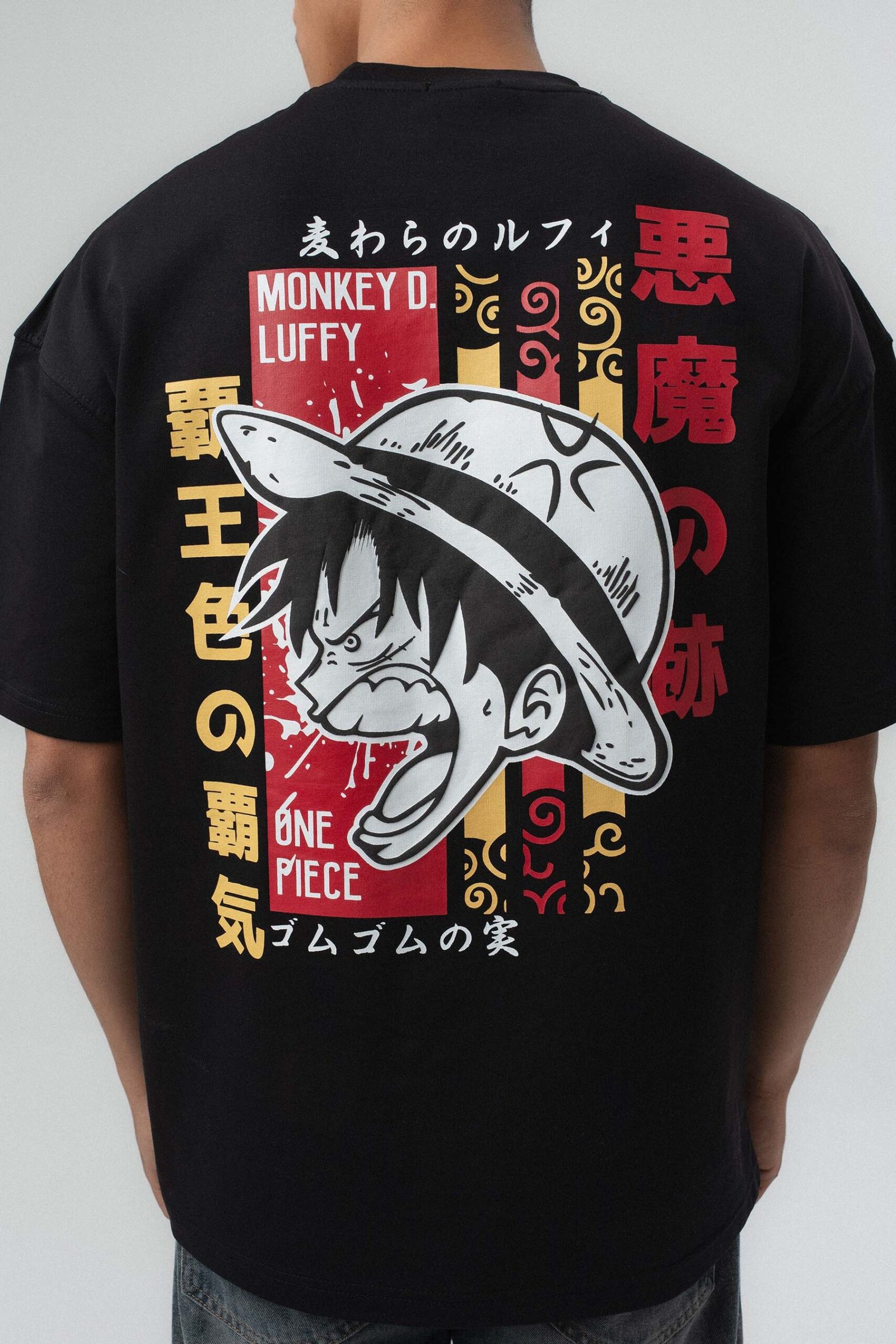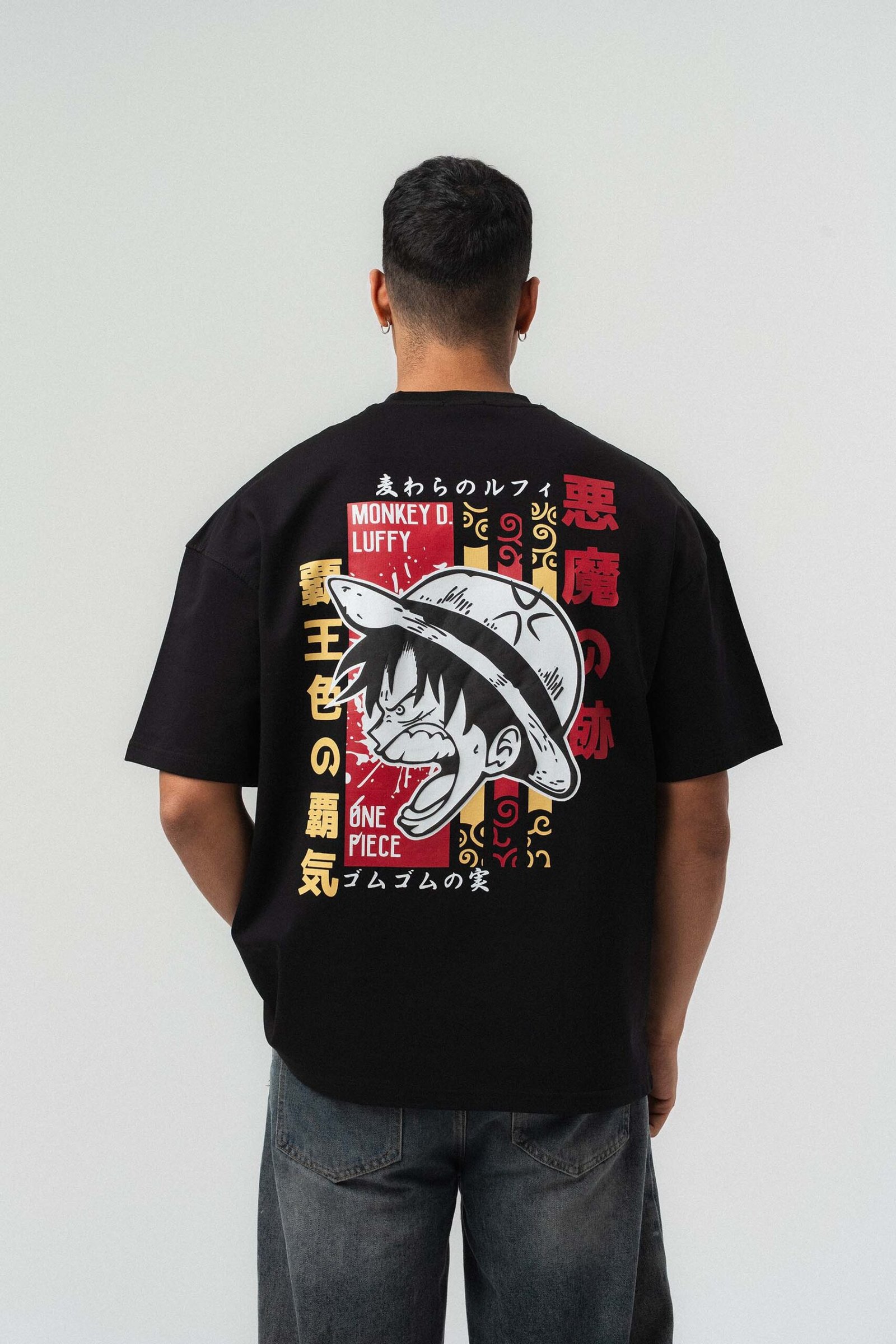 Monkey D Luffy Embroidered Black Oversize Printed T-Shirt