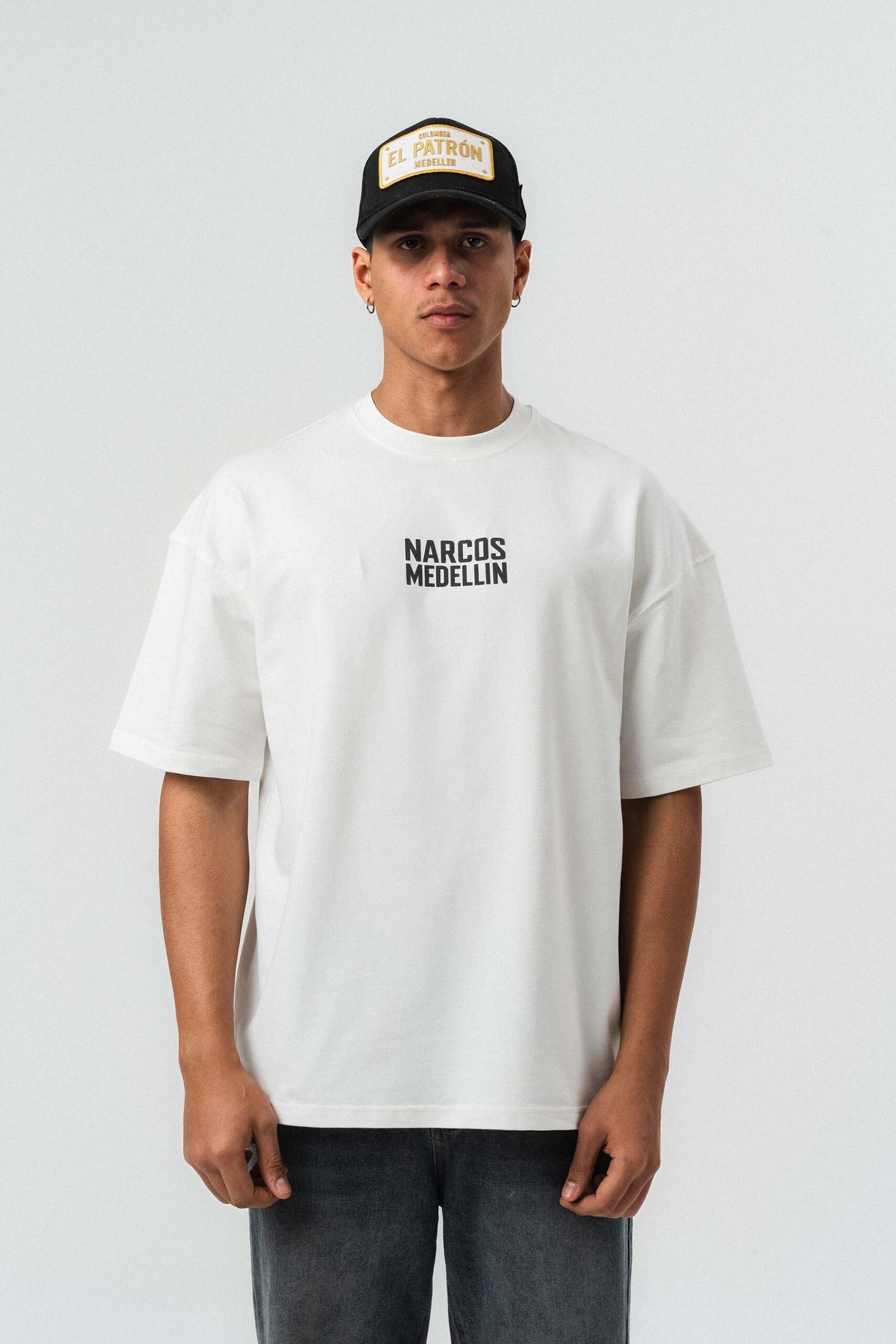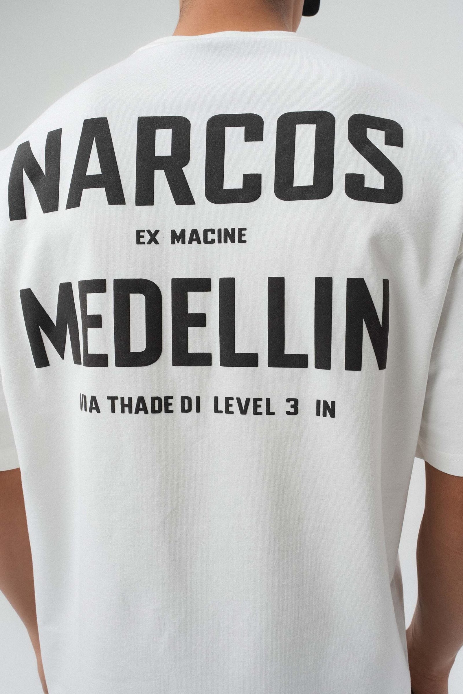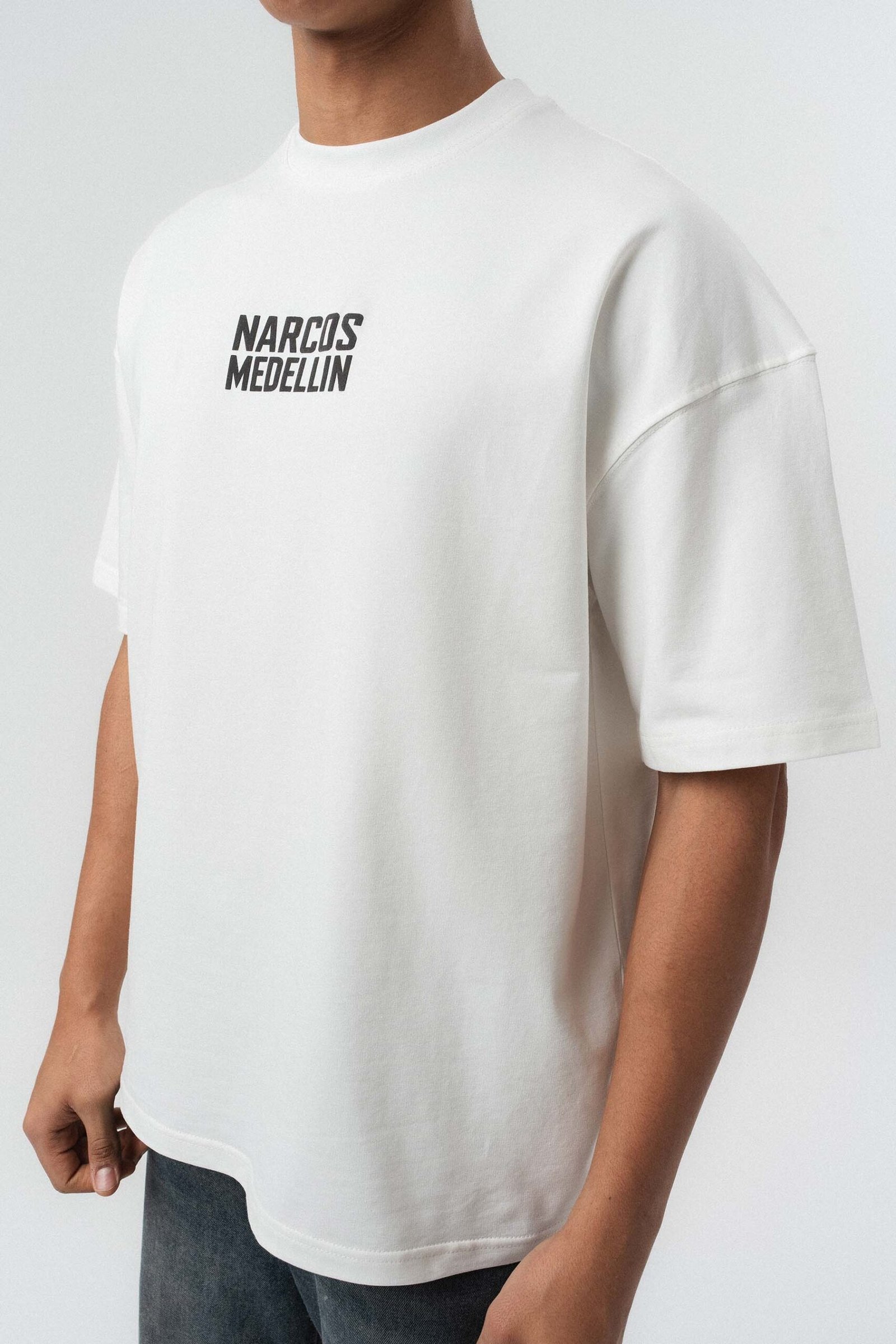 Narcos Medellin Embroidered White Oversize Printed T-Shirt