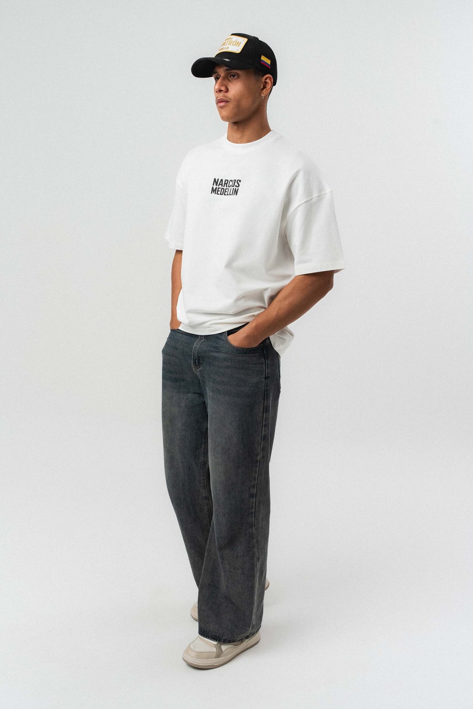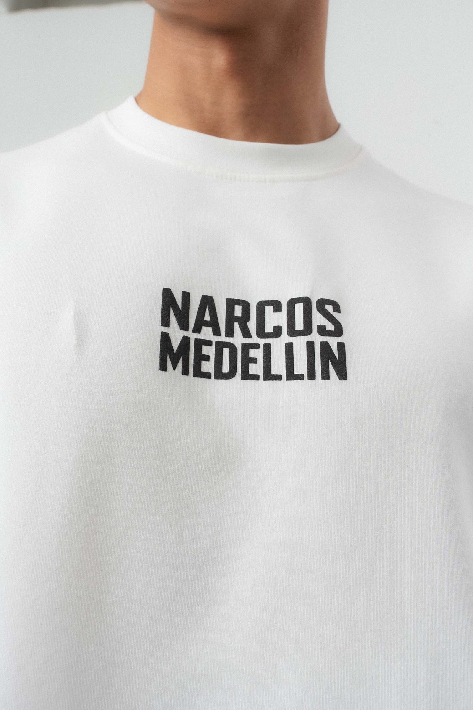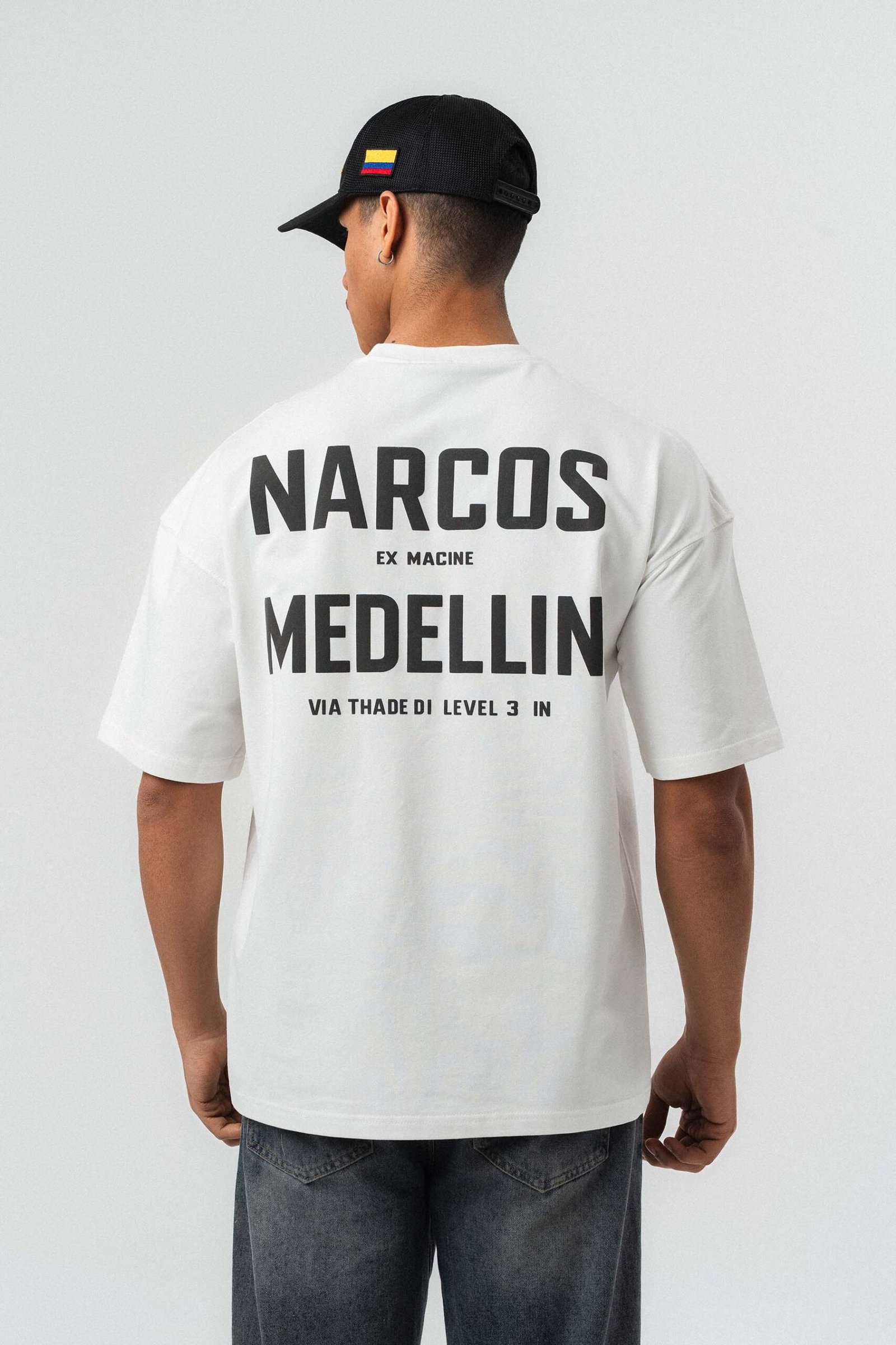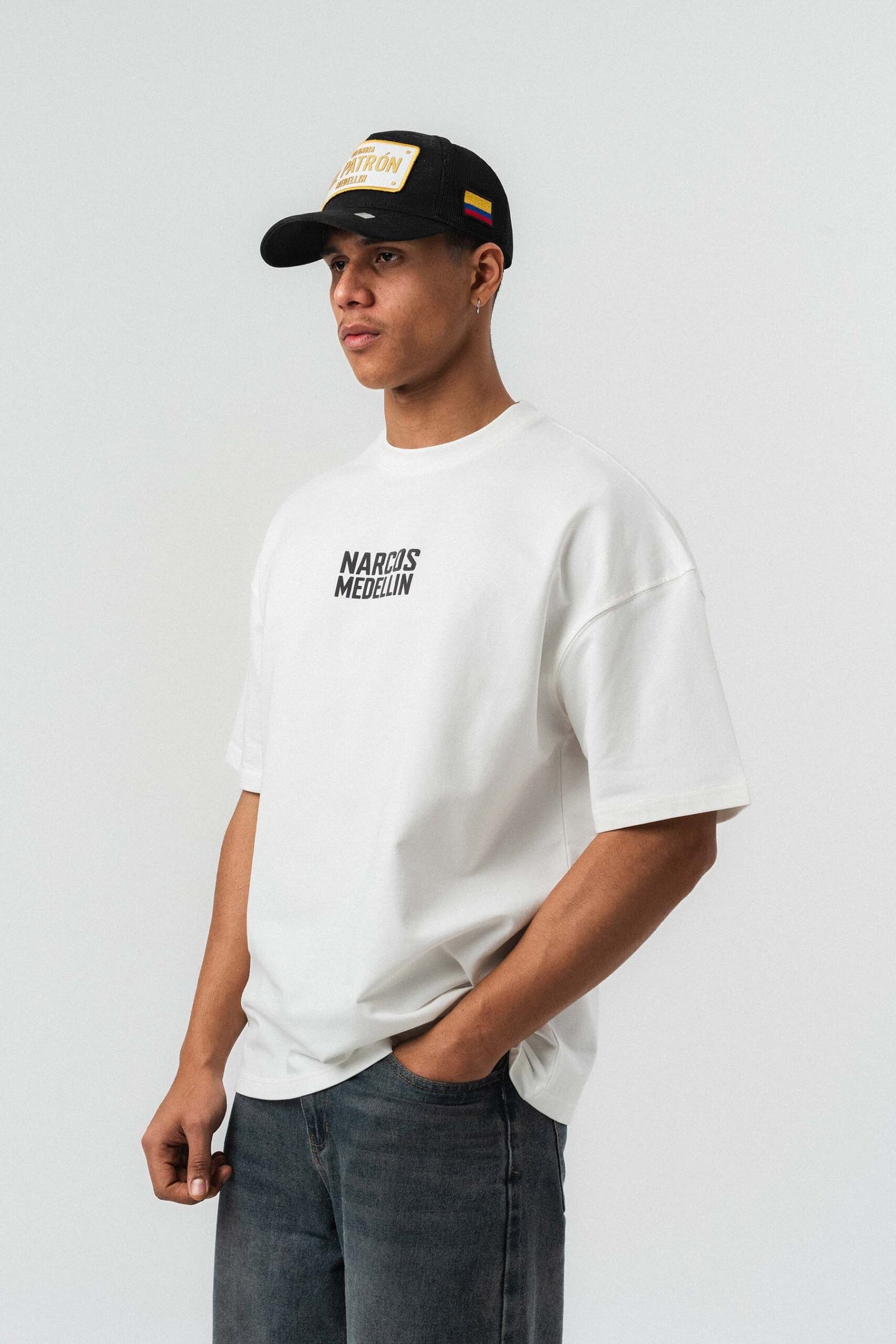 Narcos Medellin Embroidered White Oversize Printed T-Shirt