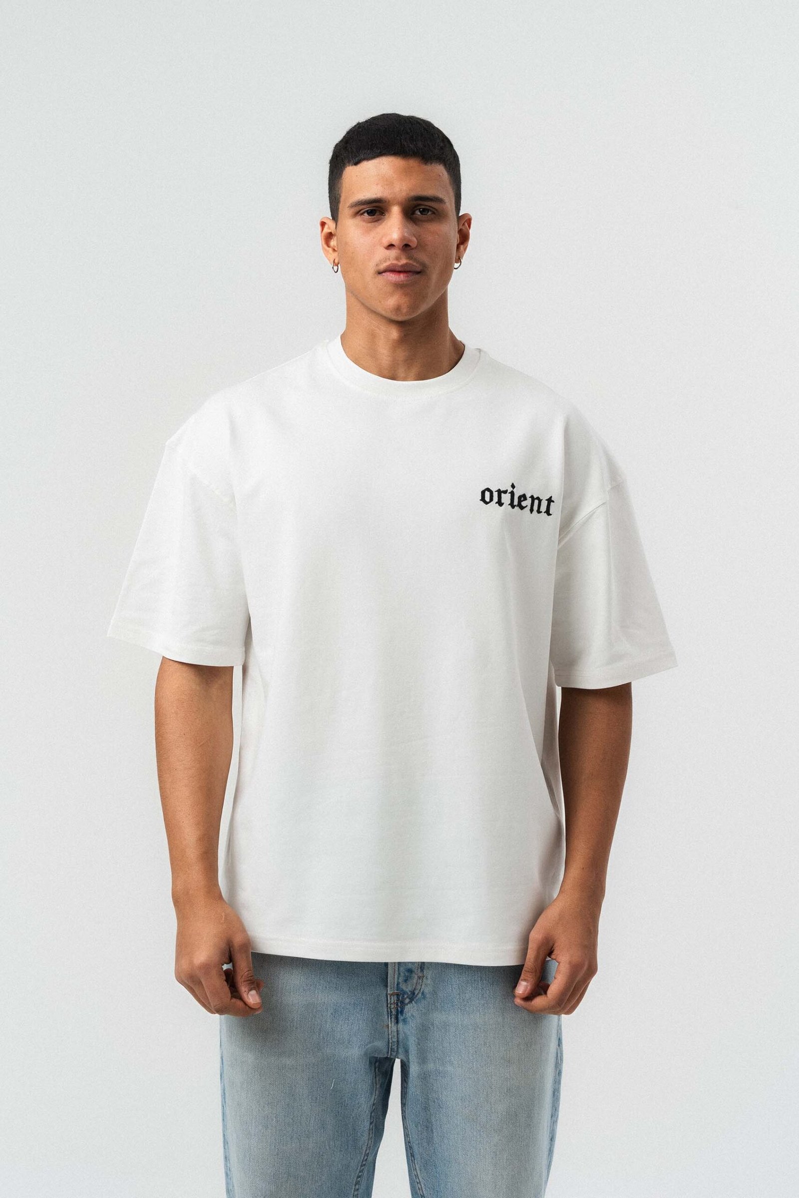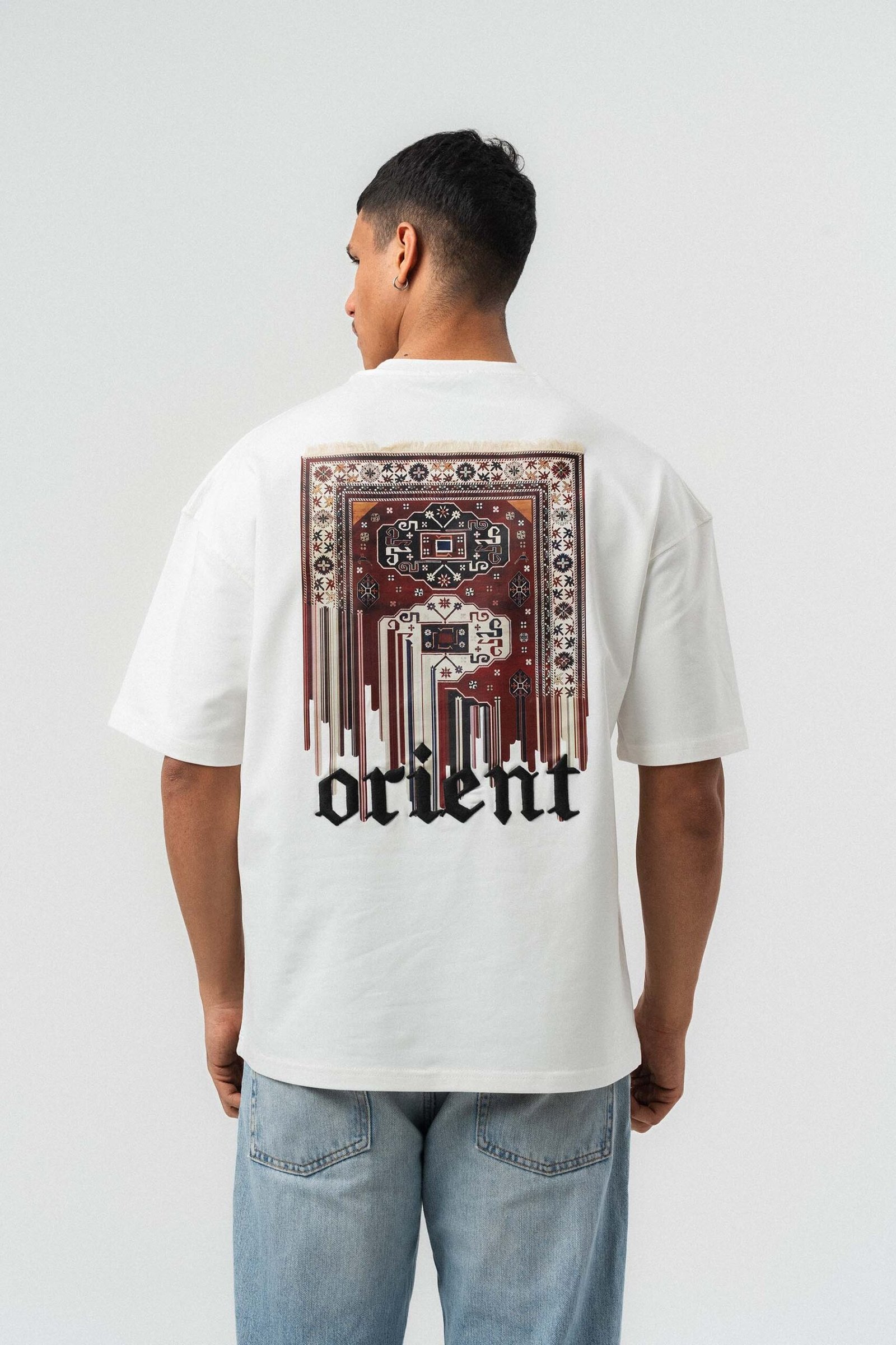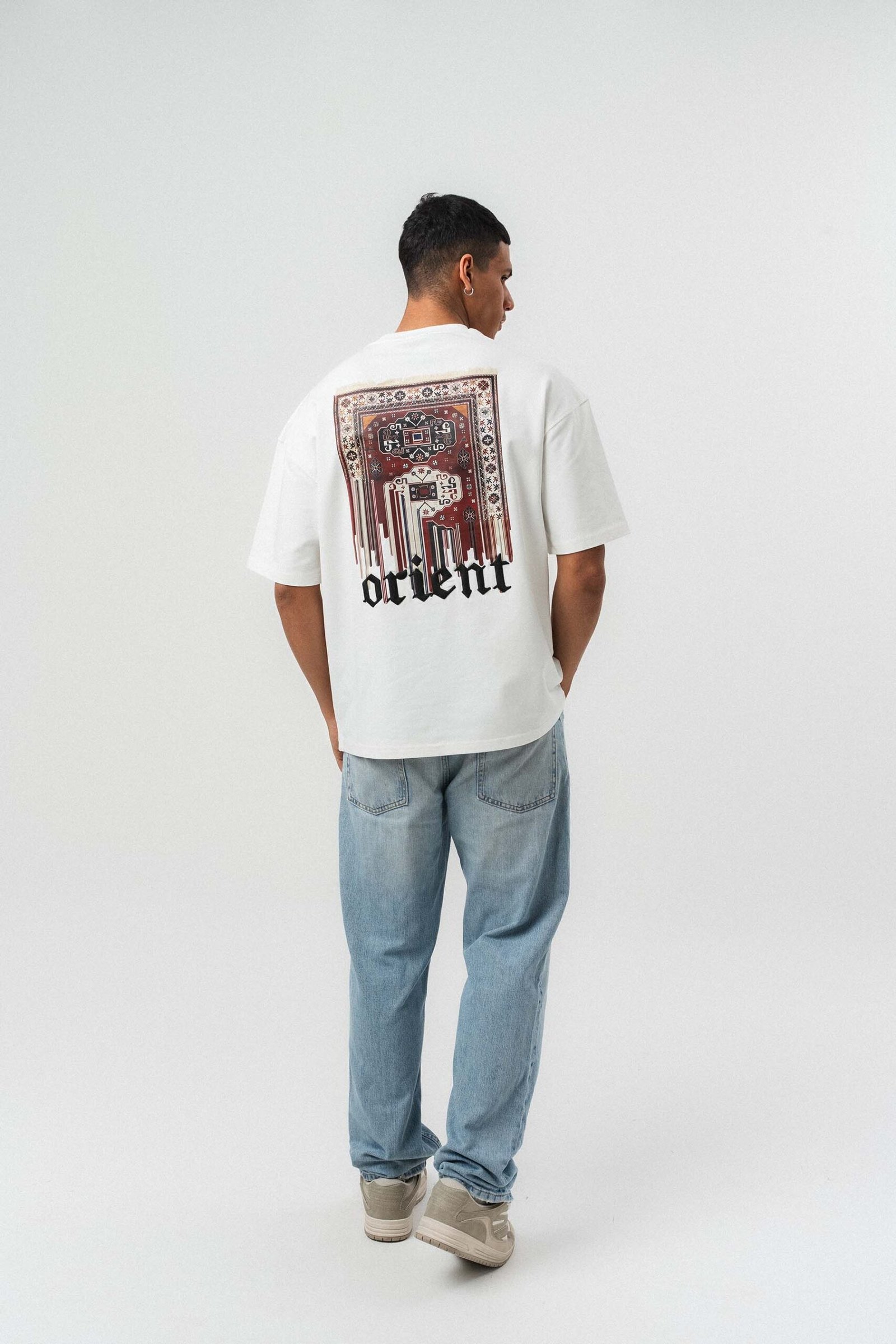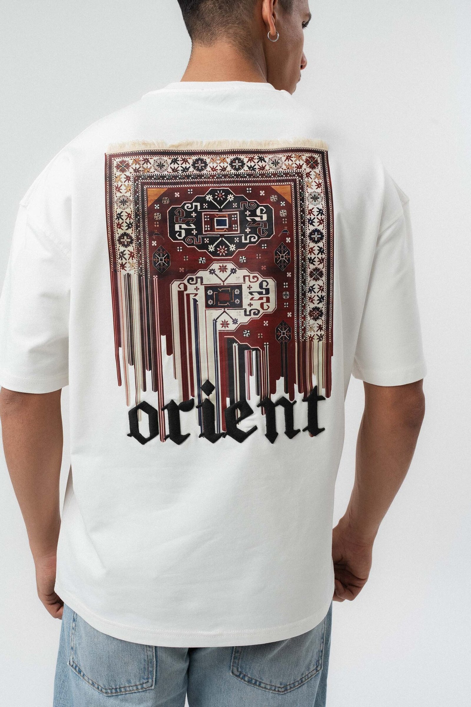 Orient Etnik Desen Embroidered Gray Oversize Printed T-Shirt