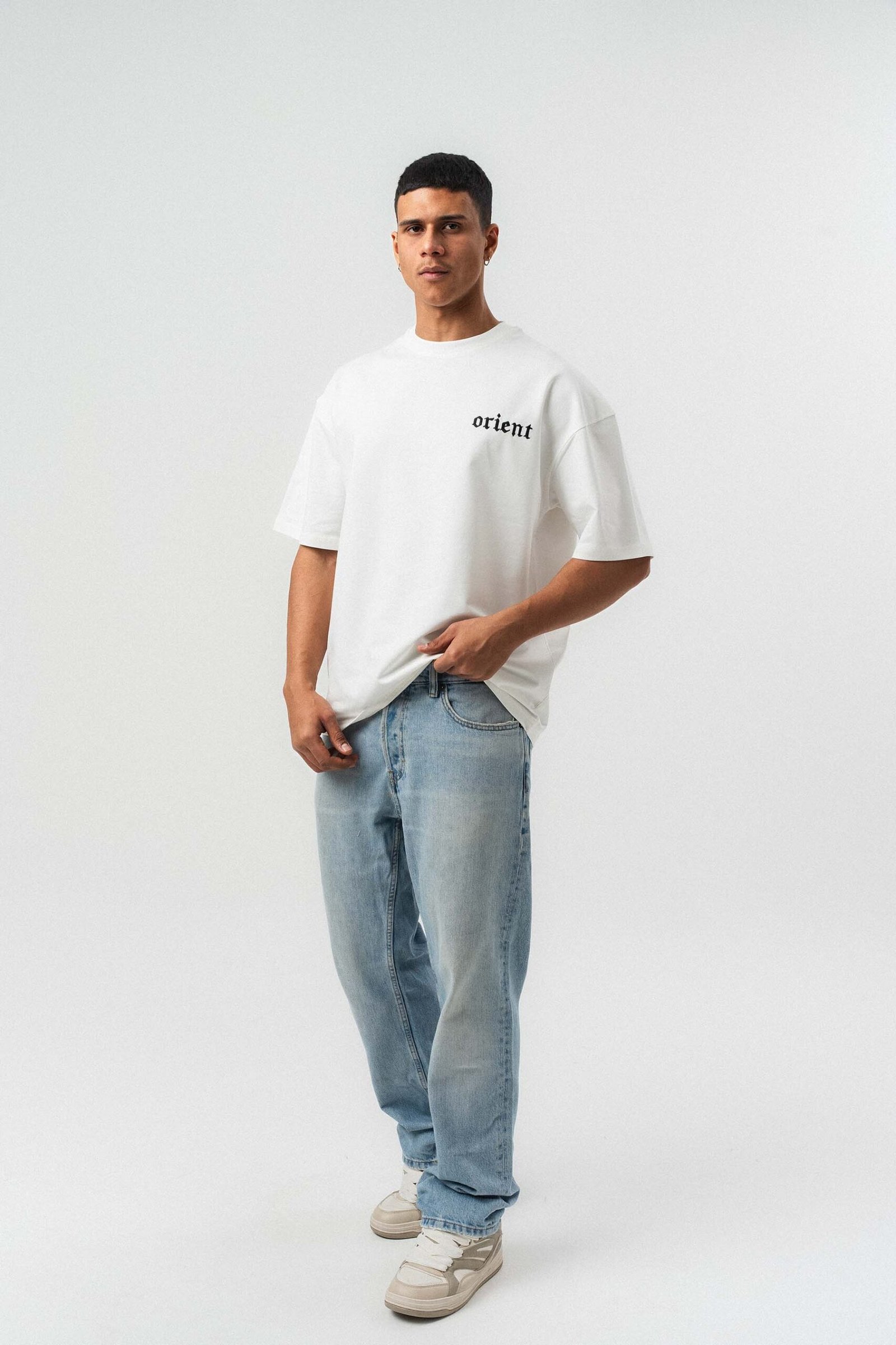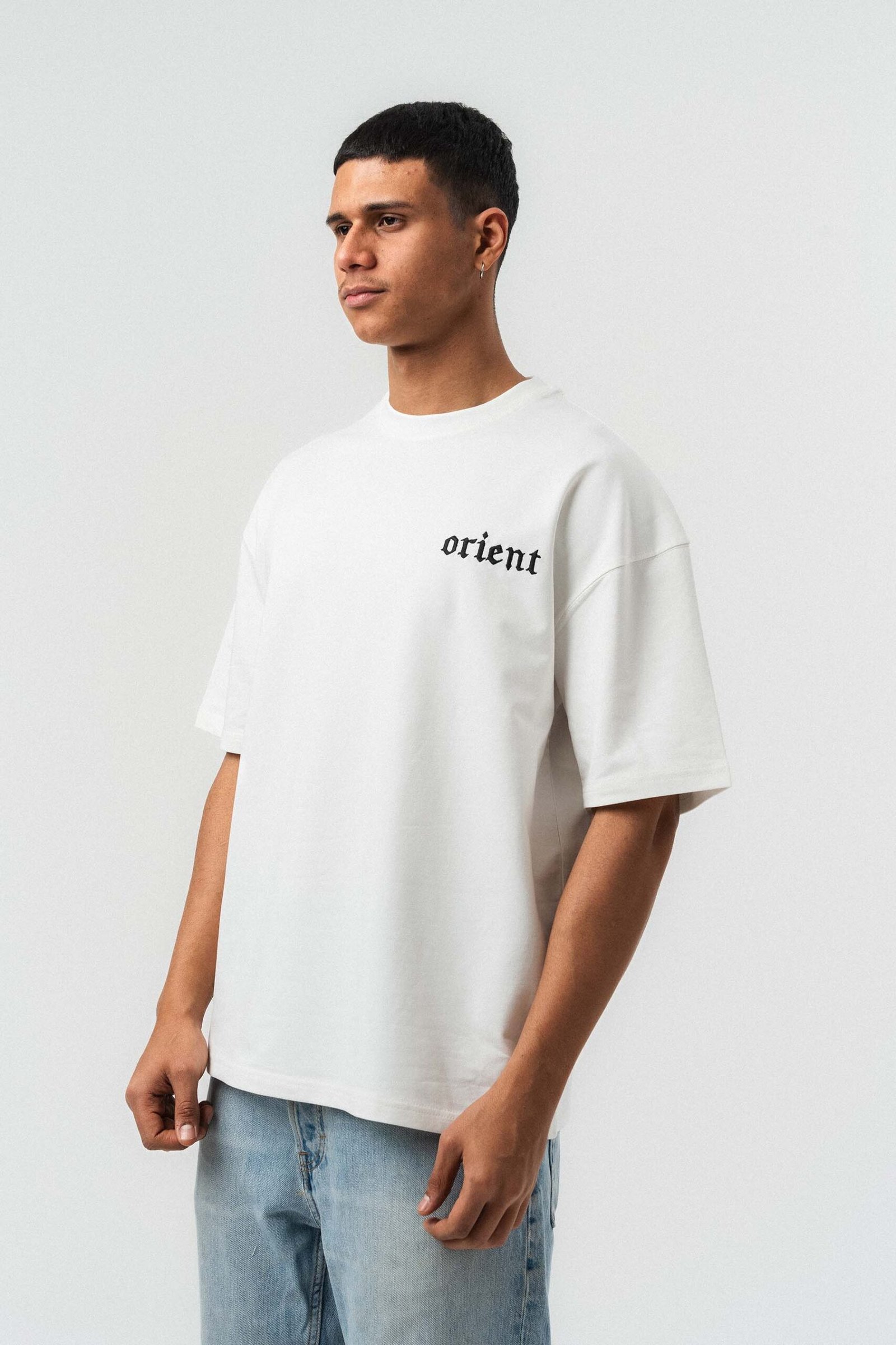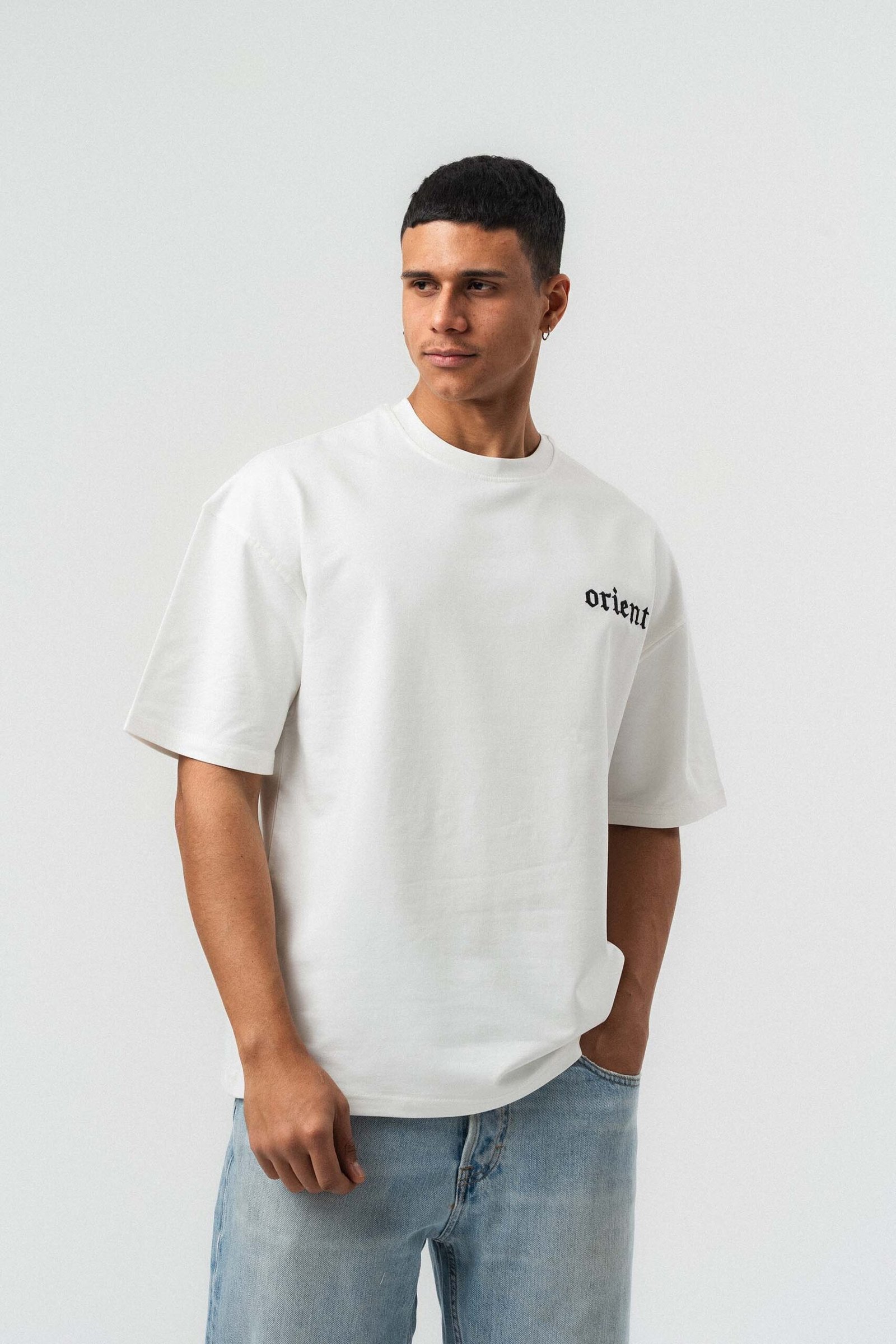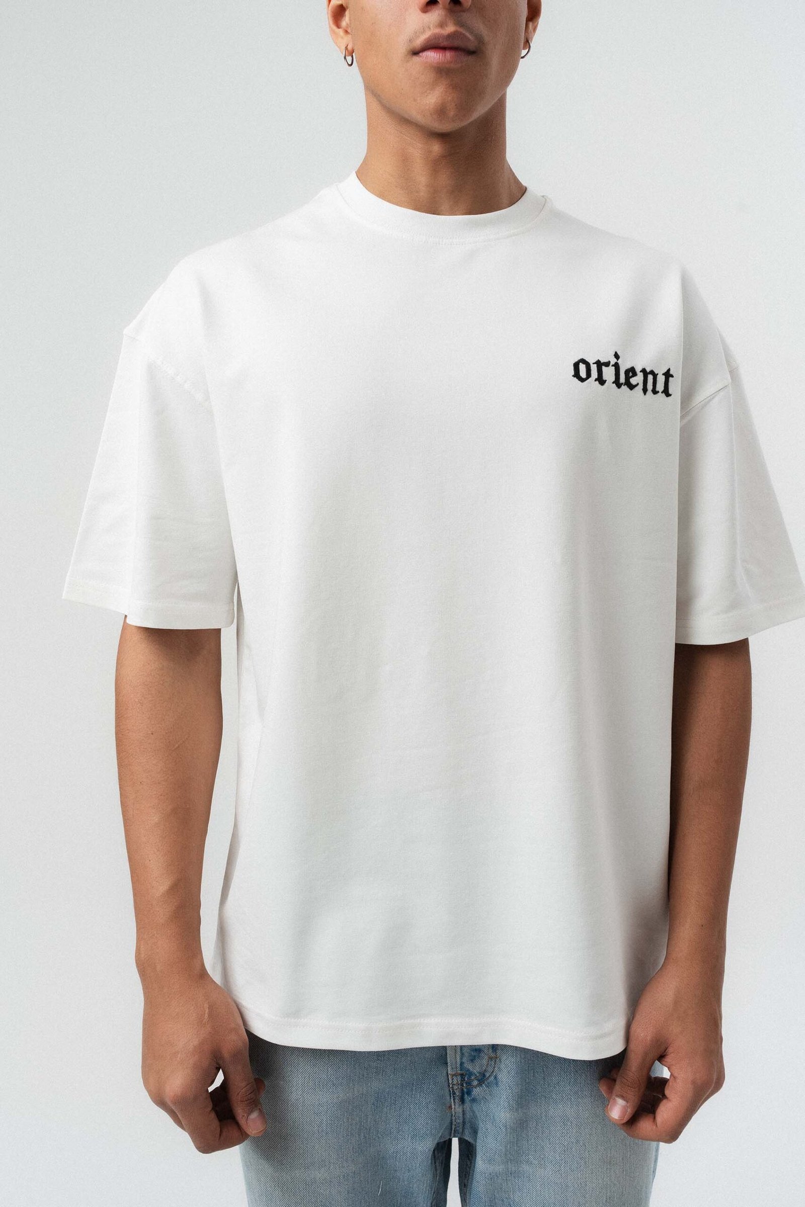 Orient Etnik Desen Embroidered Gray Oversize Printed T-Shirt