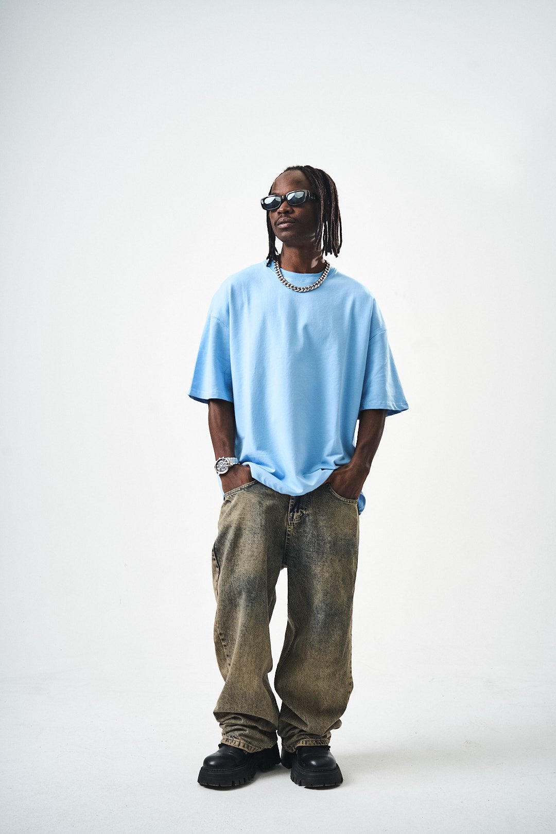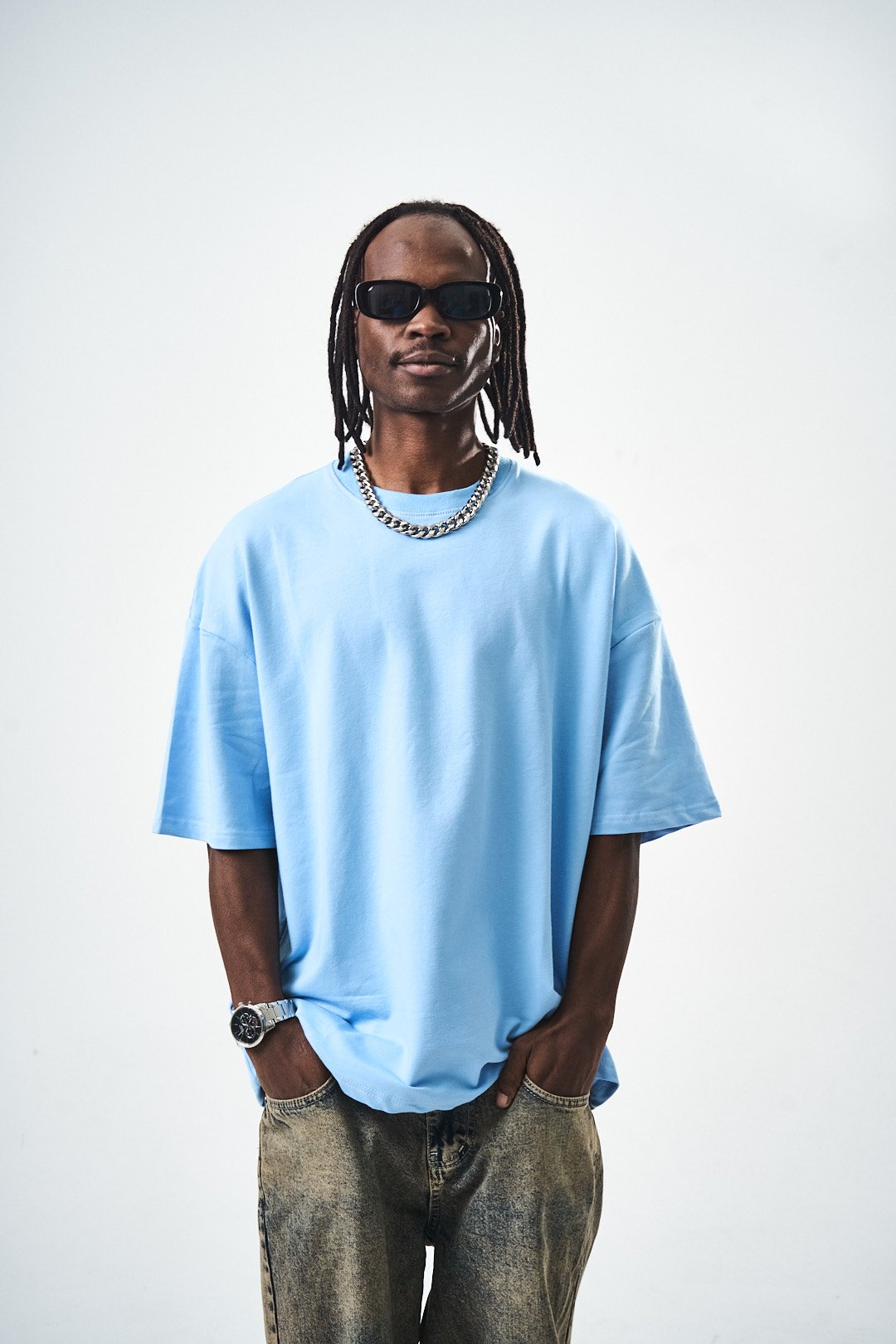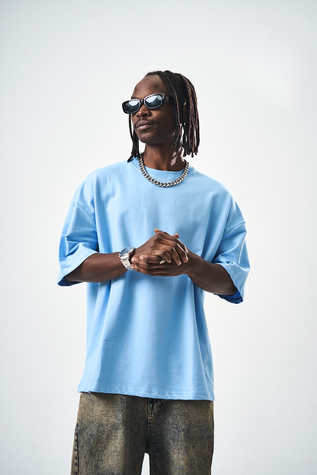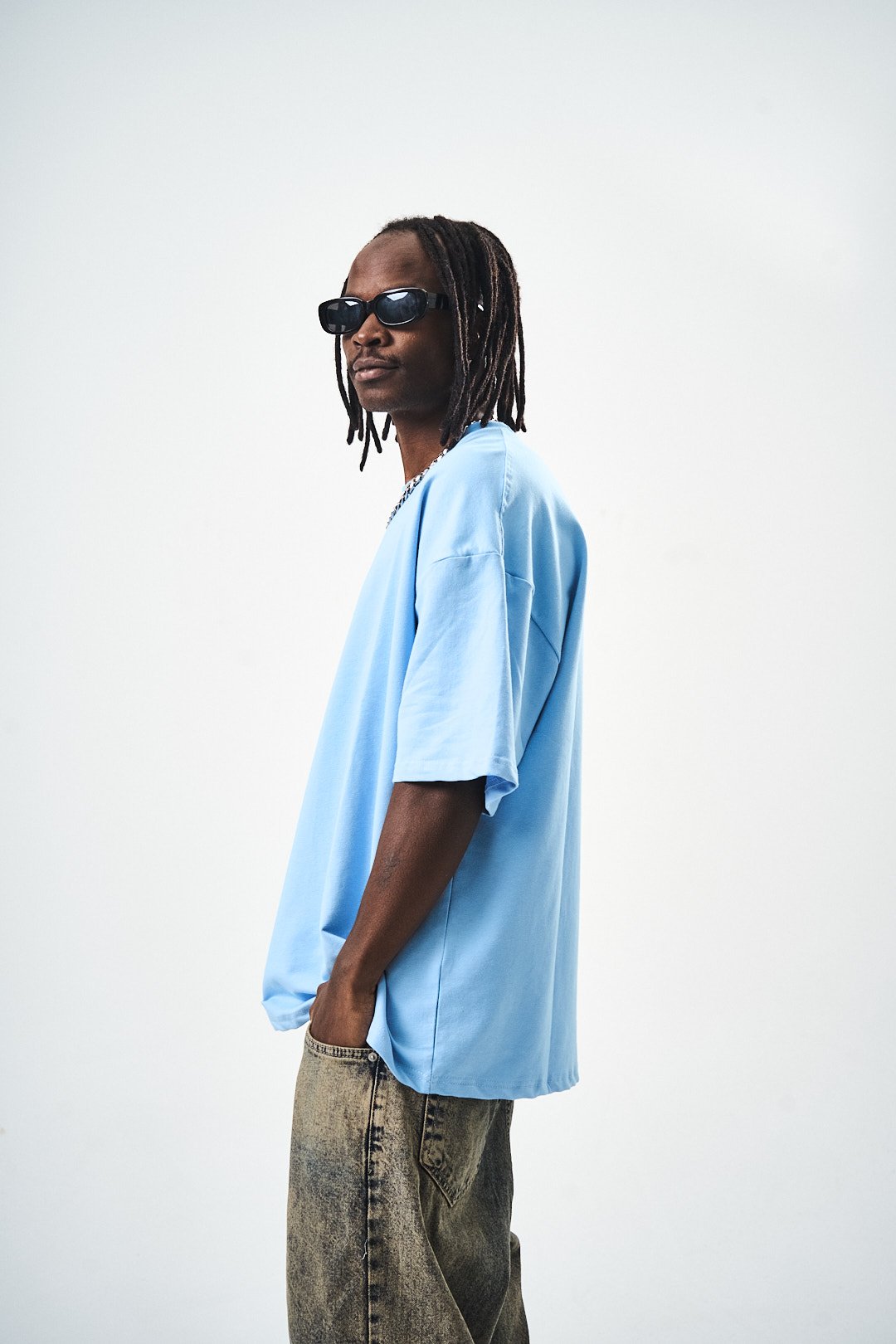 Oversize Fit Basic T-Shirt Blue