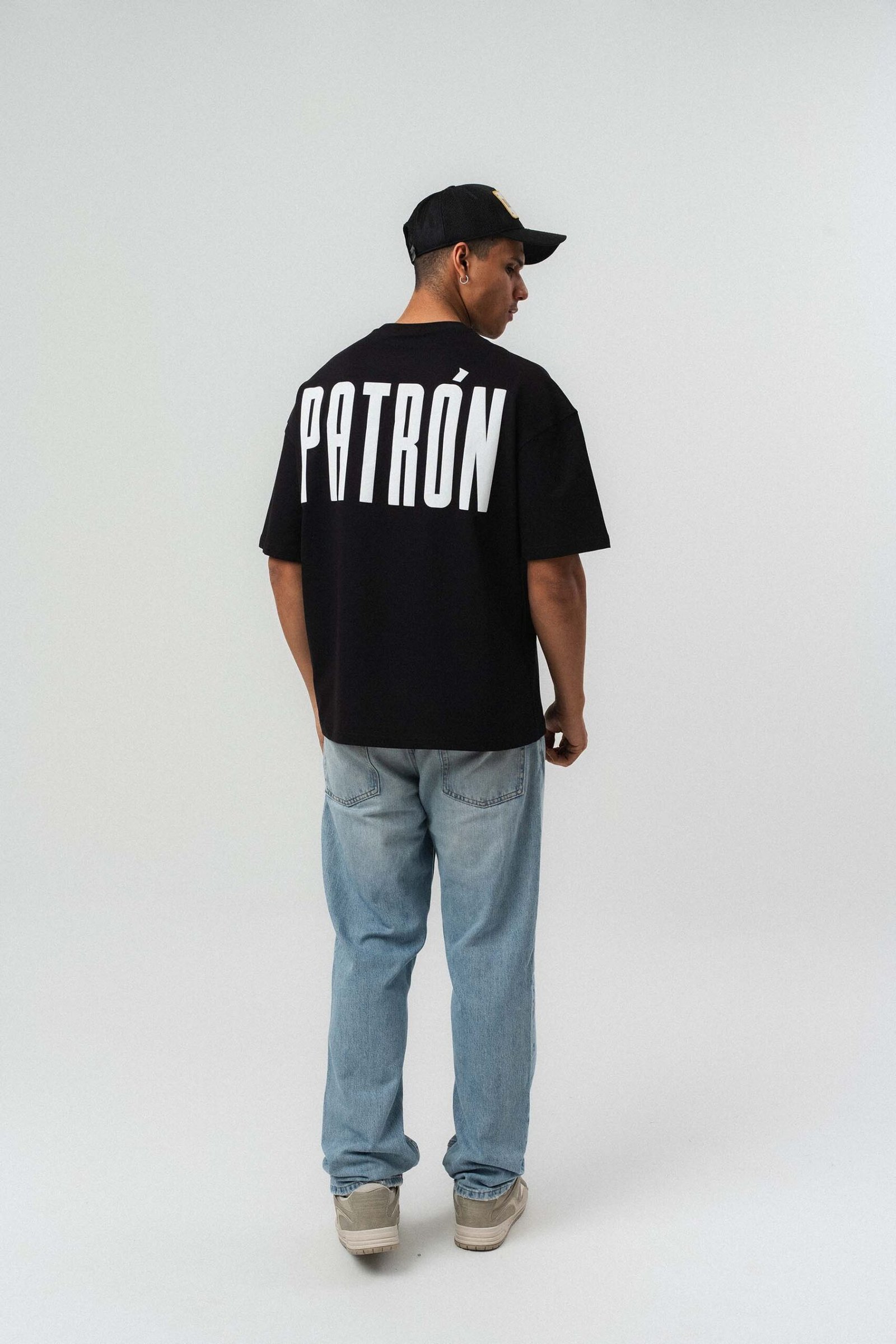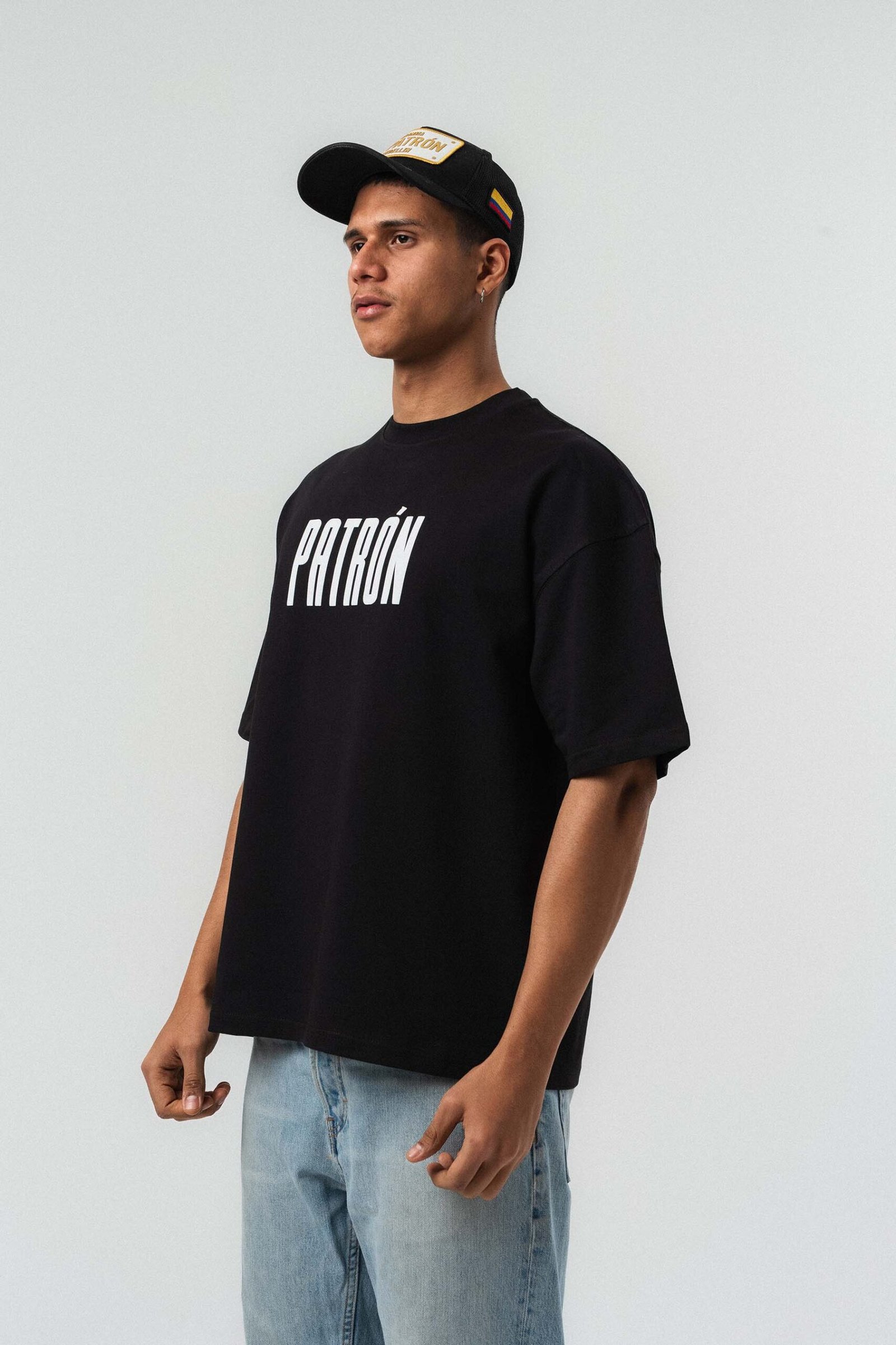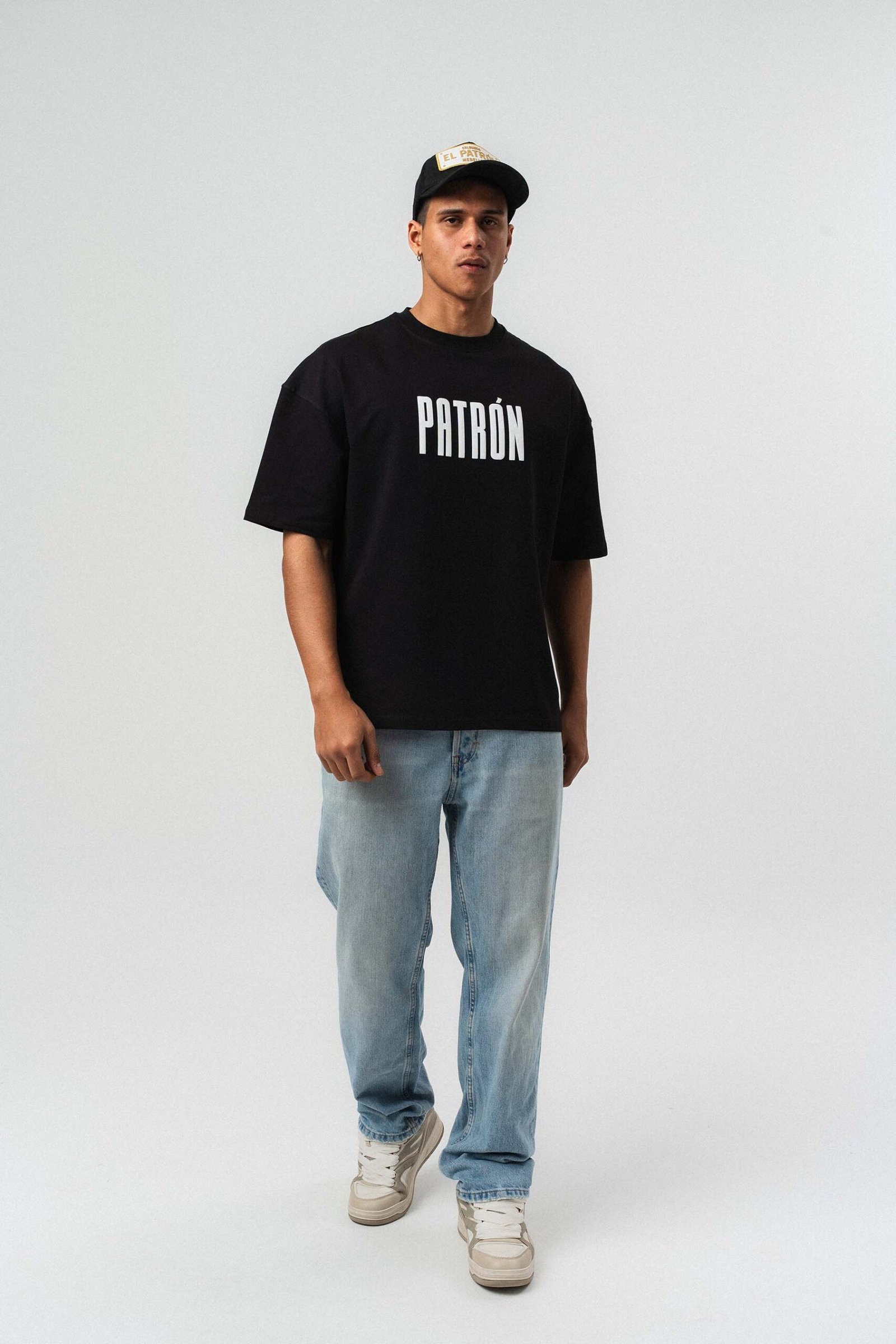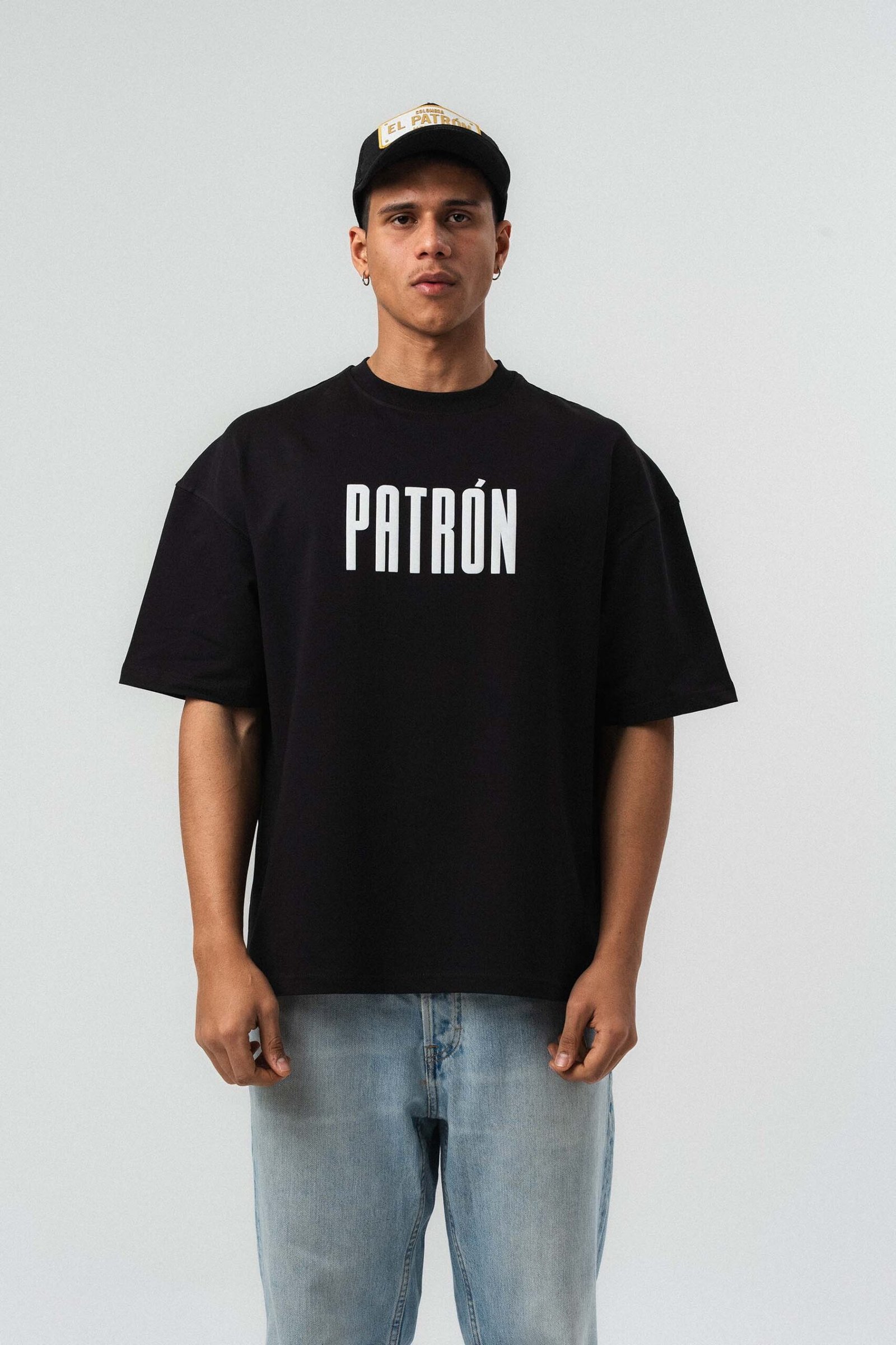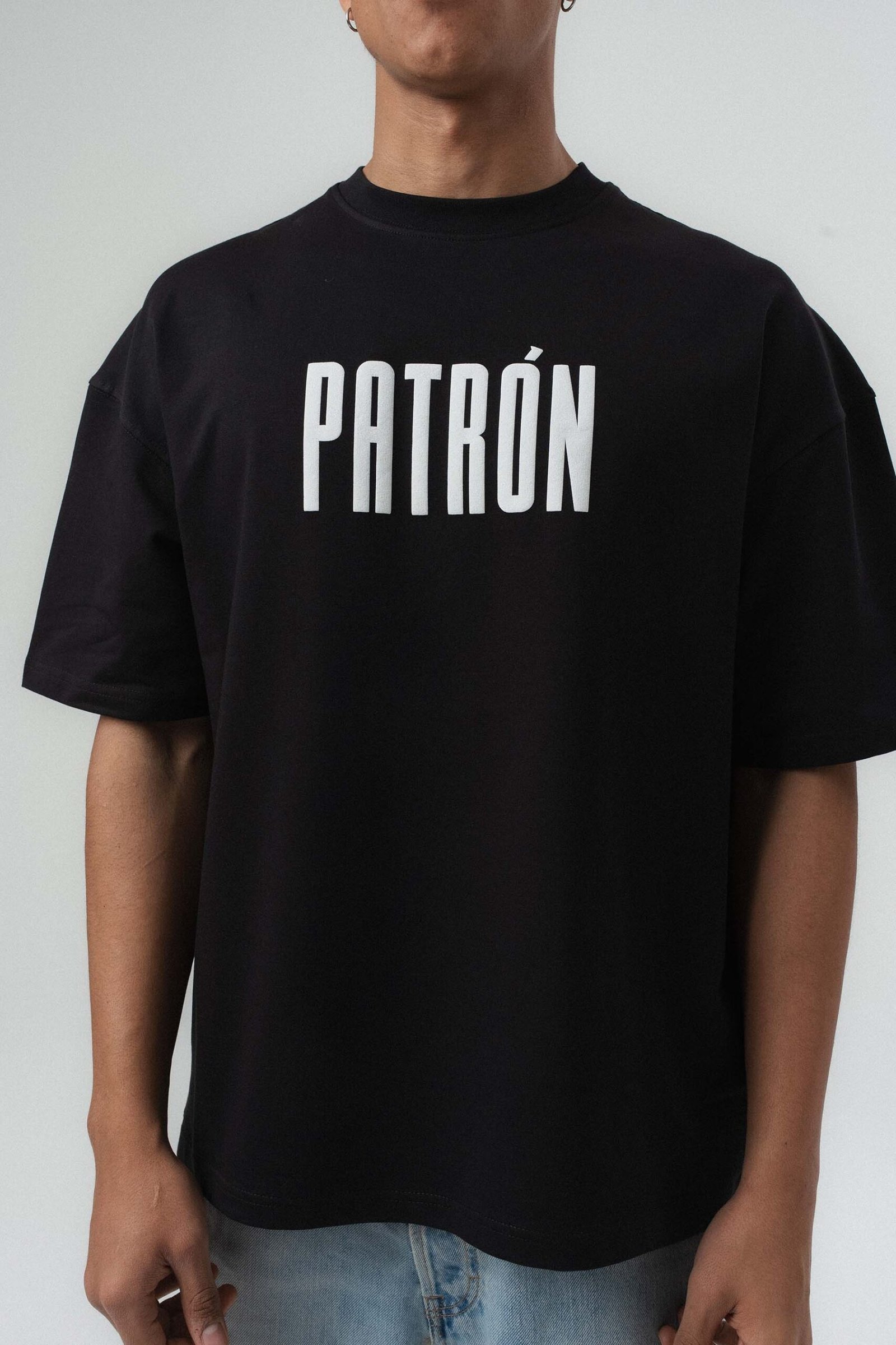 Patron Embossed Black Oversize Printed T-Shirt