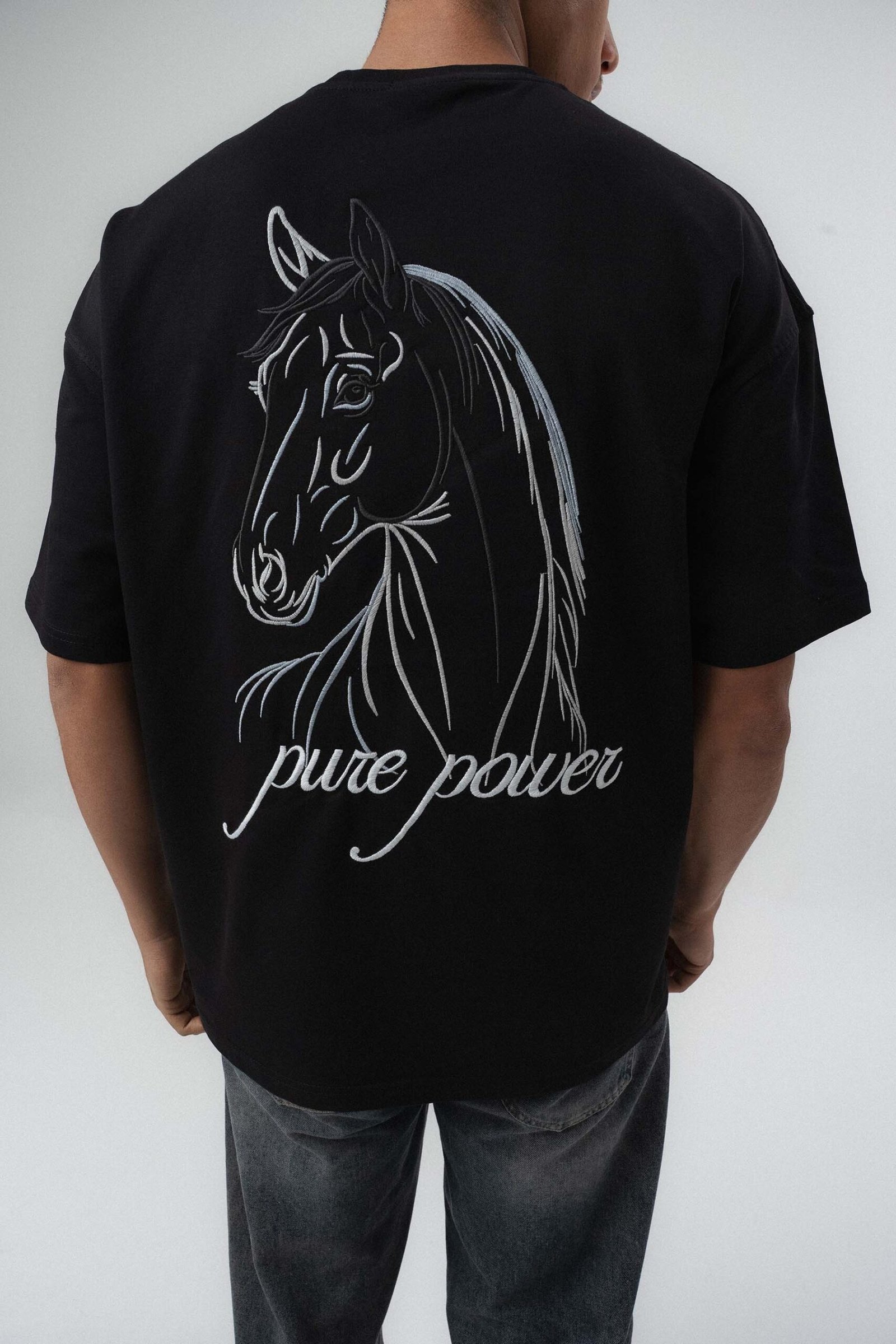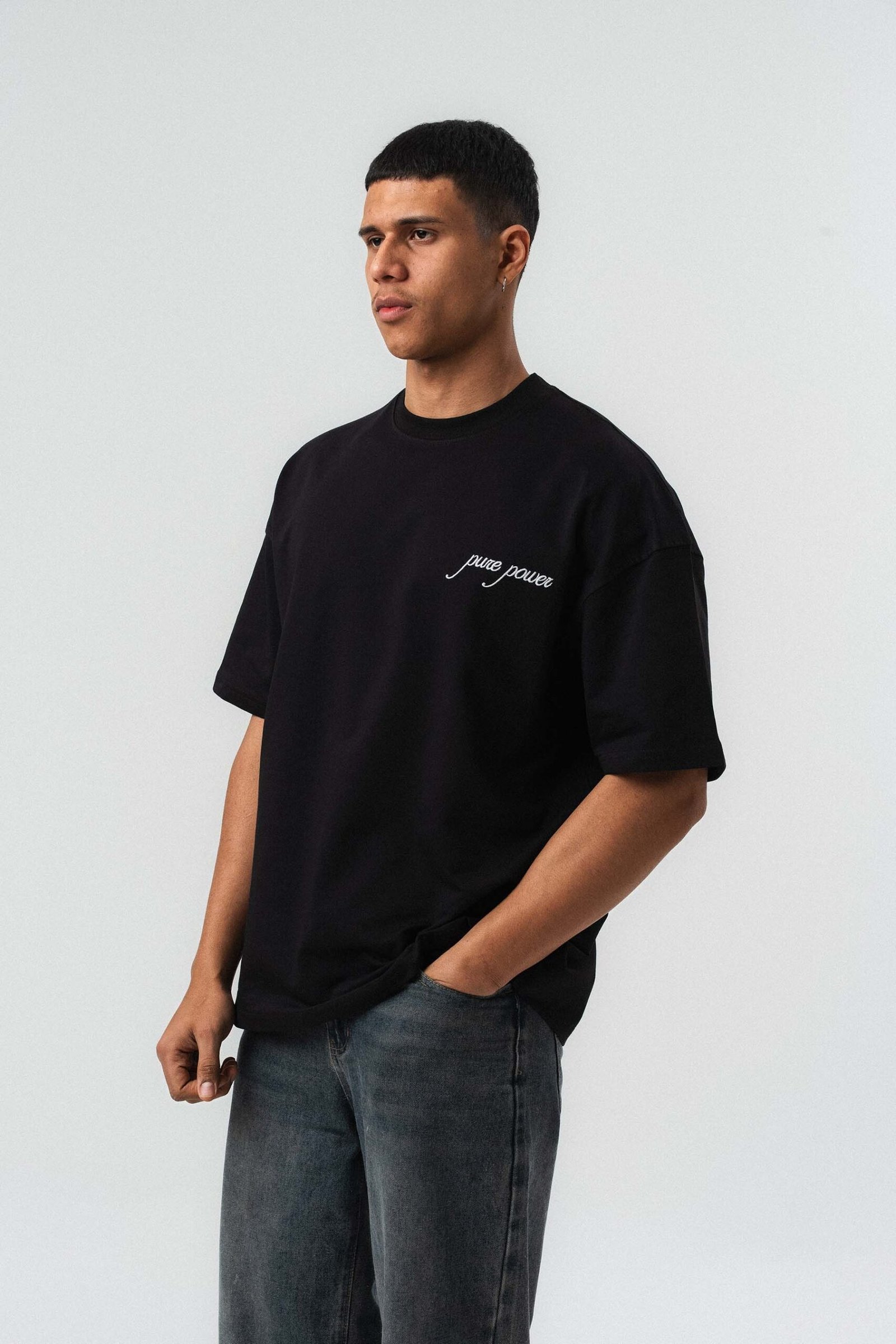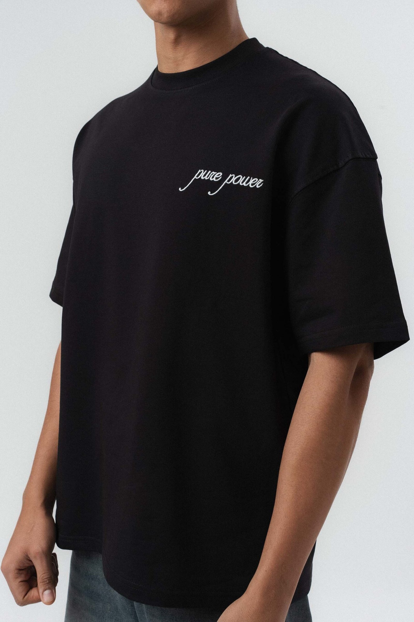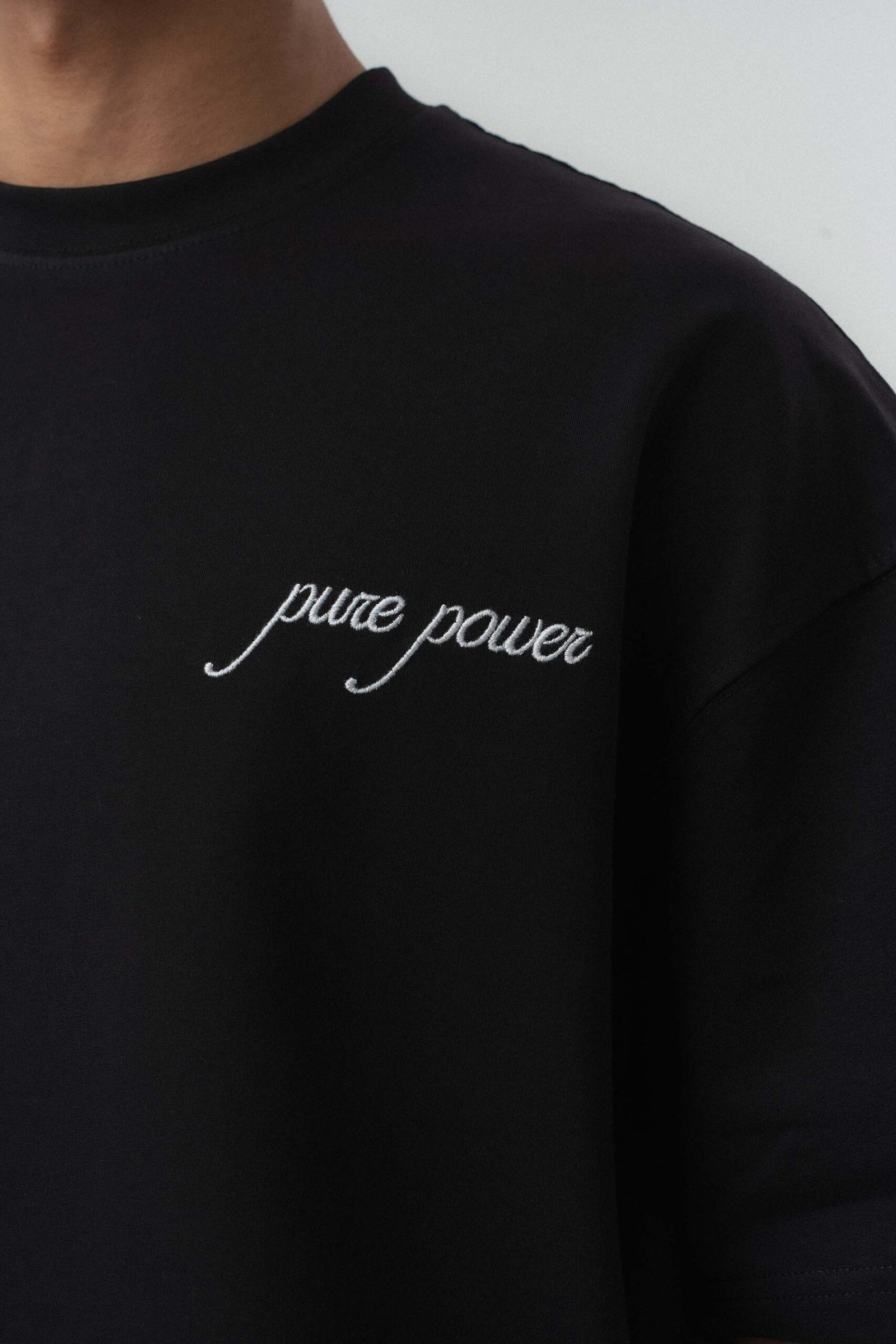 Pure Power At Printed Black Oversize Printed T-Shirt