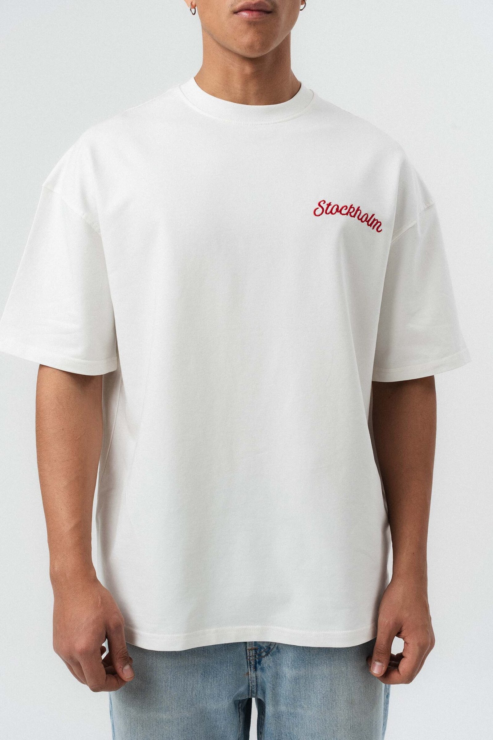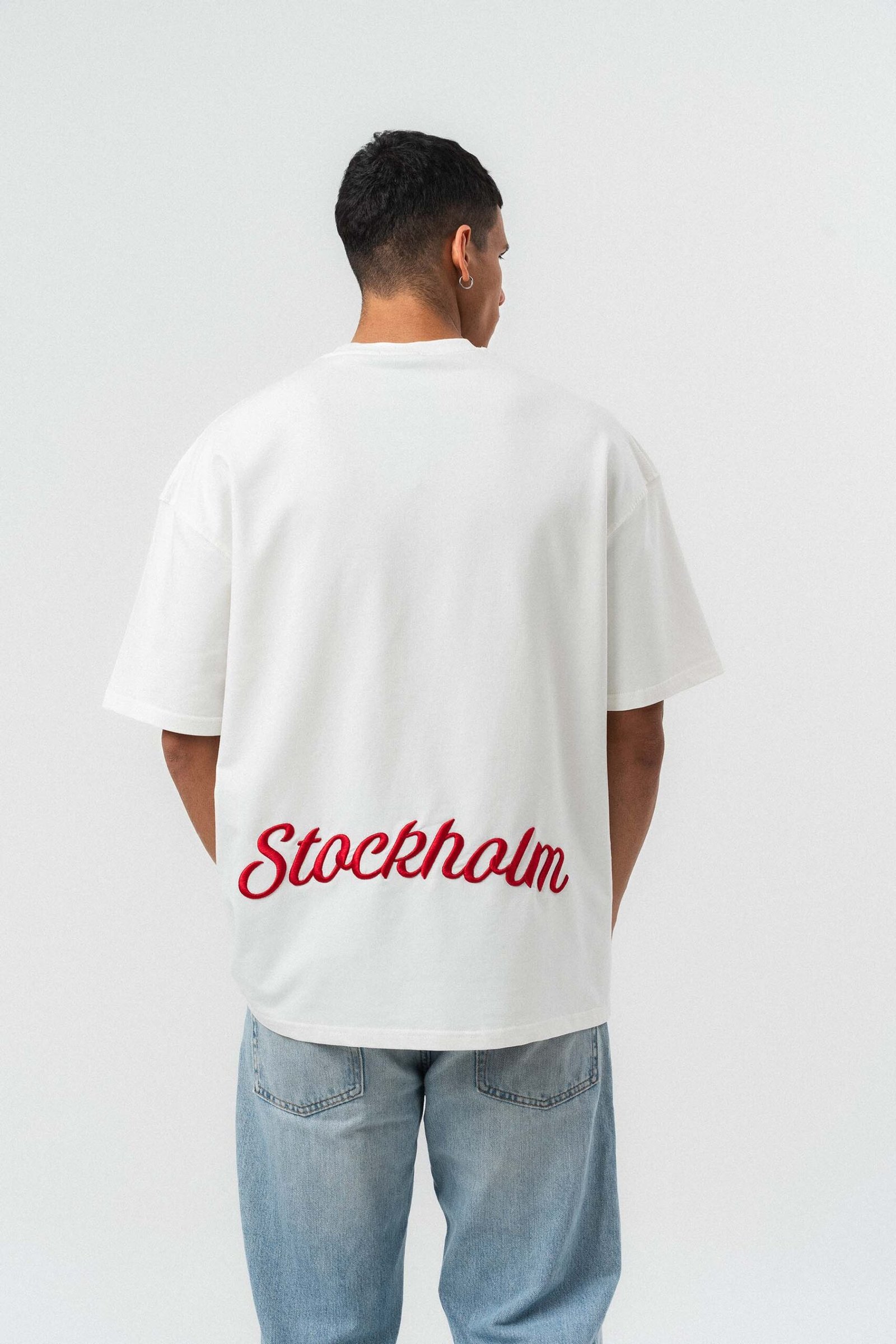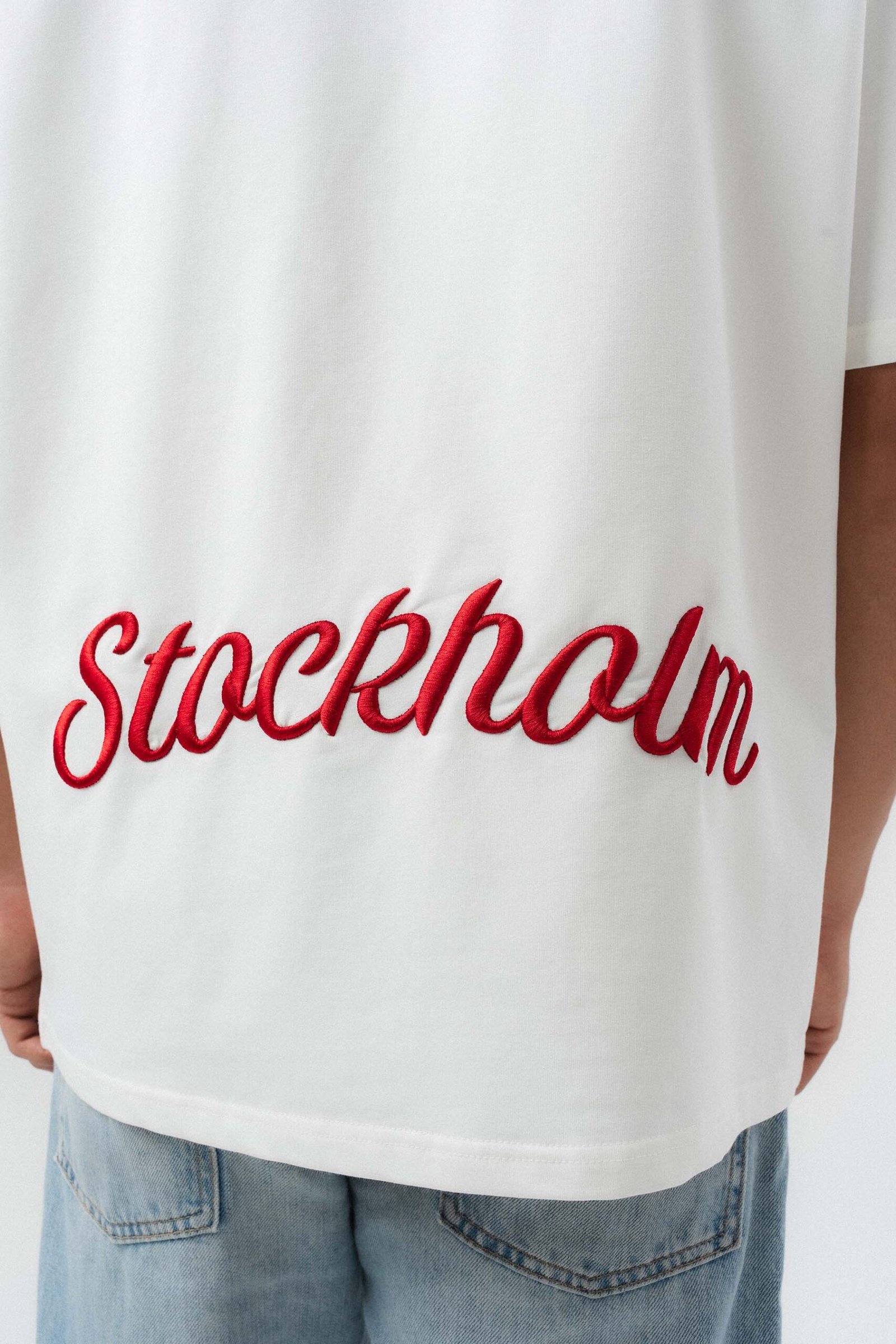 Stockholm Embroidered White Oversize Printed T-Shirt