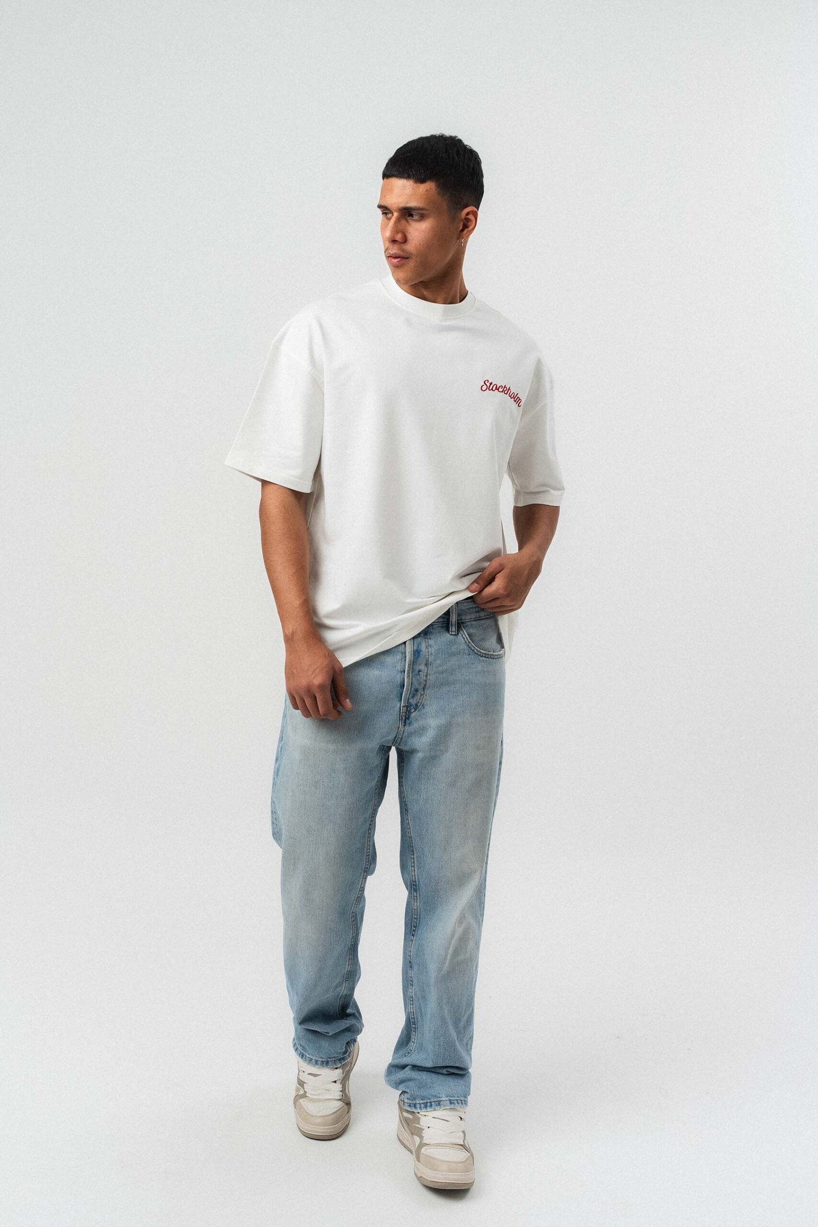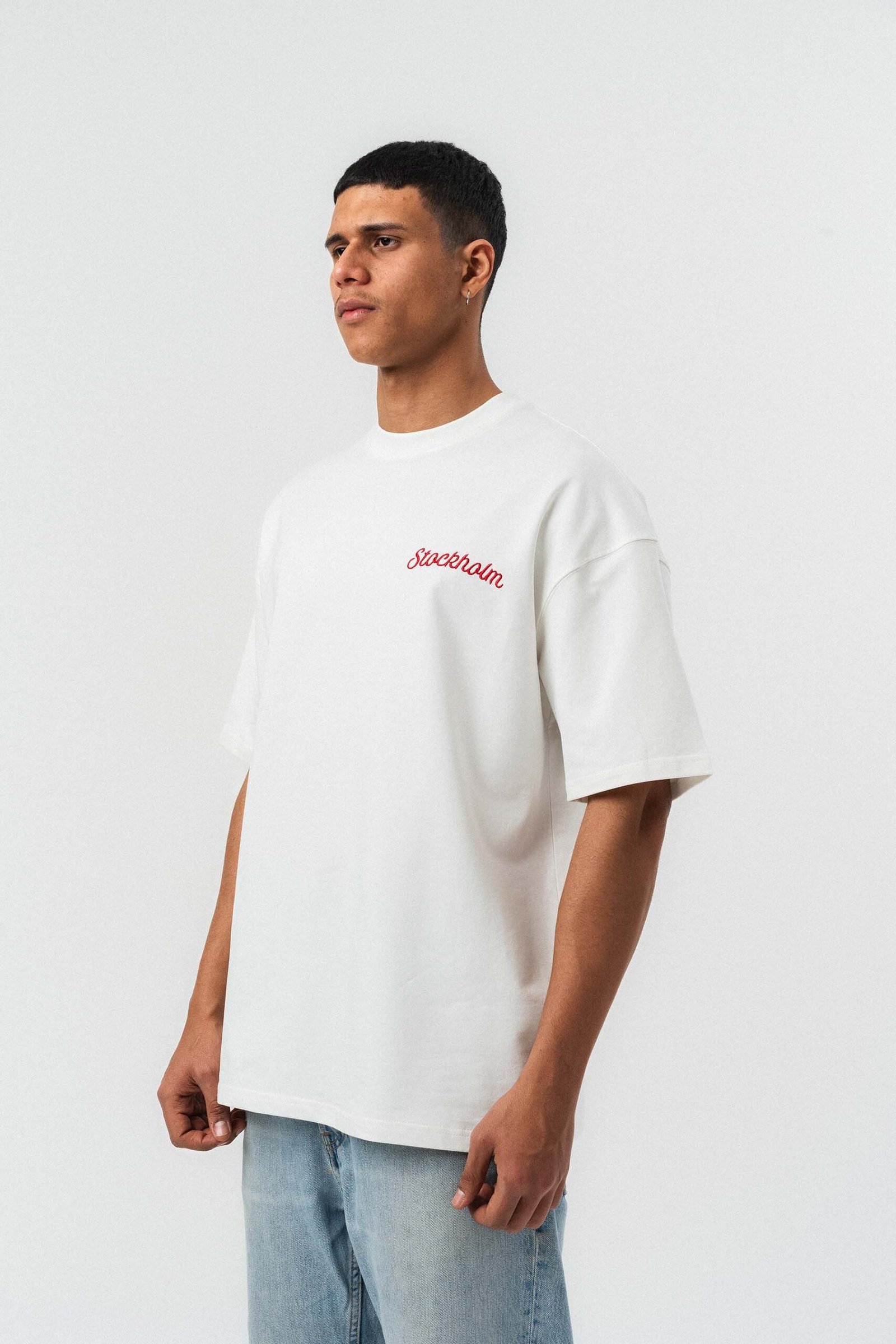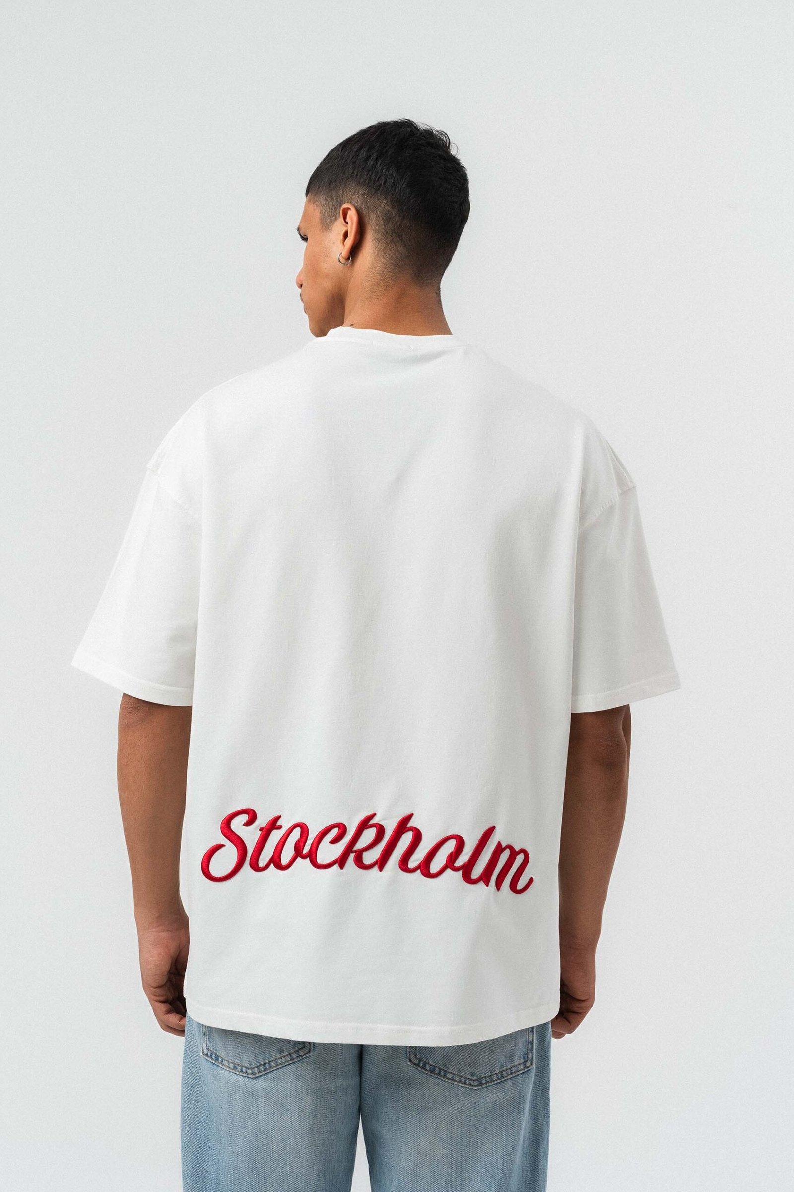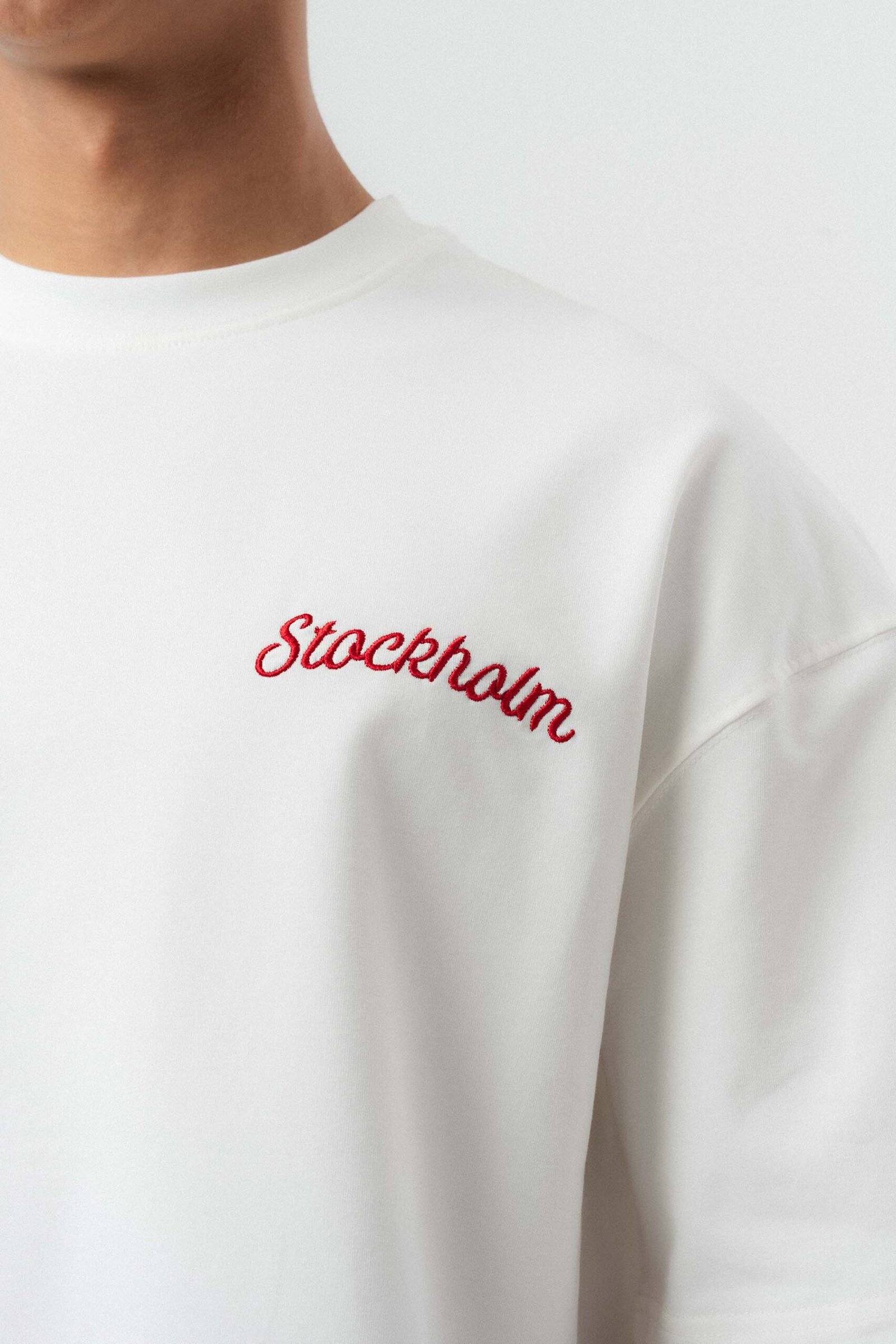 Stockholm Embroidered White Oversize Printed T-Shirt