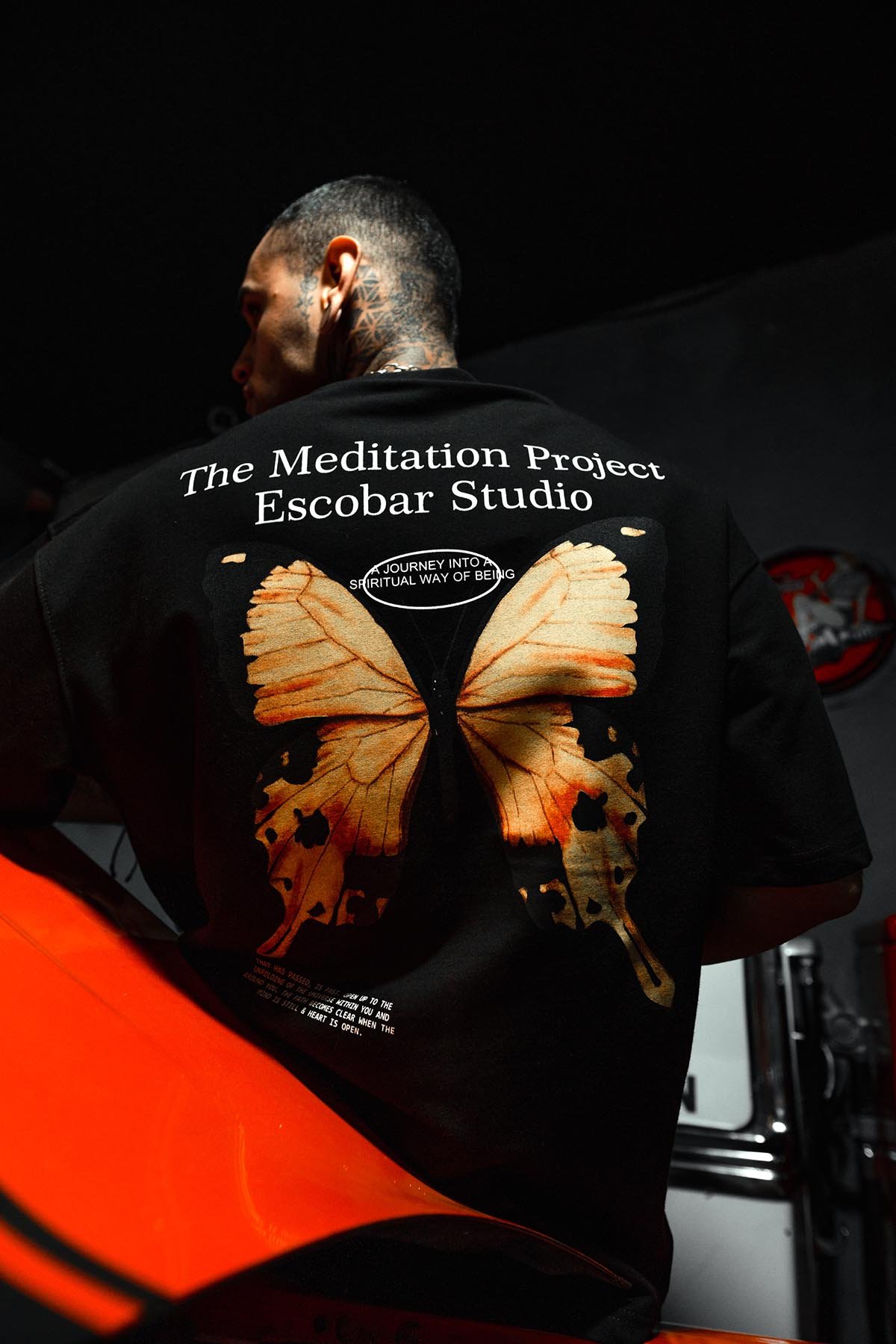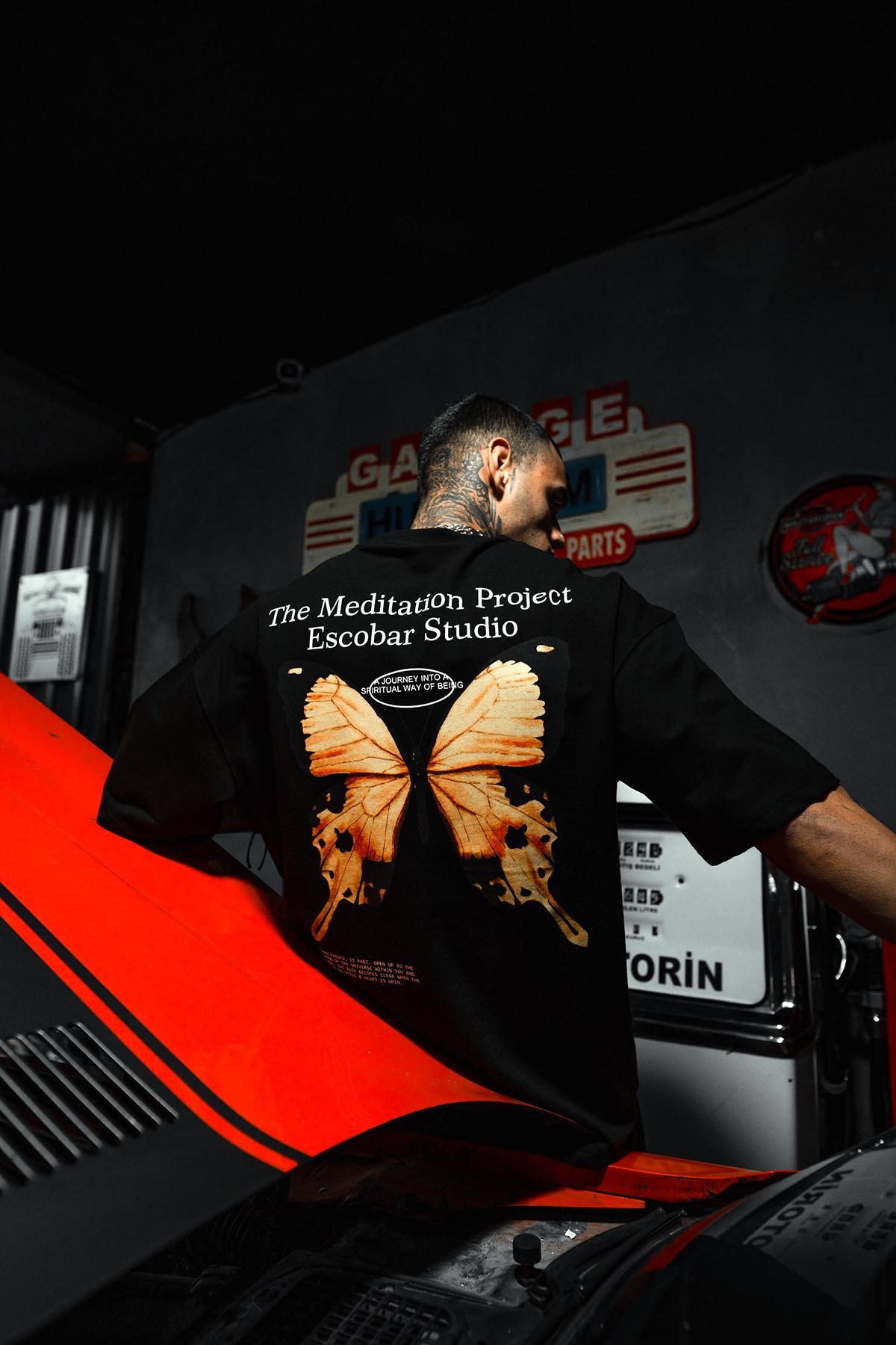 The Mediation Butterfly Printed Oversize Black T-Shirt