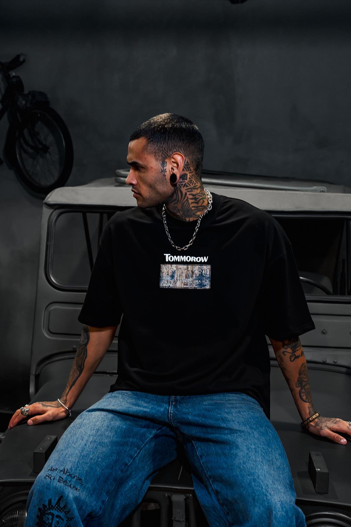 Tomorrow Patched Printed Oversize Black T-Shirt