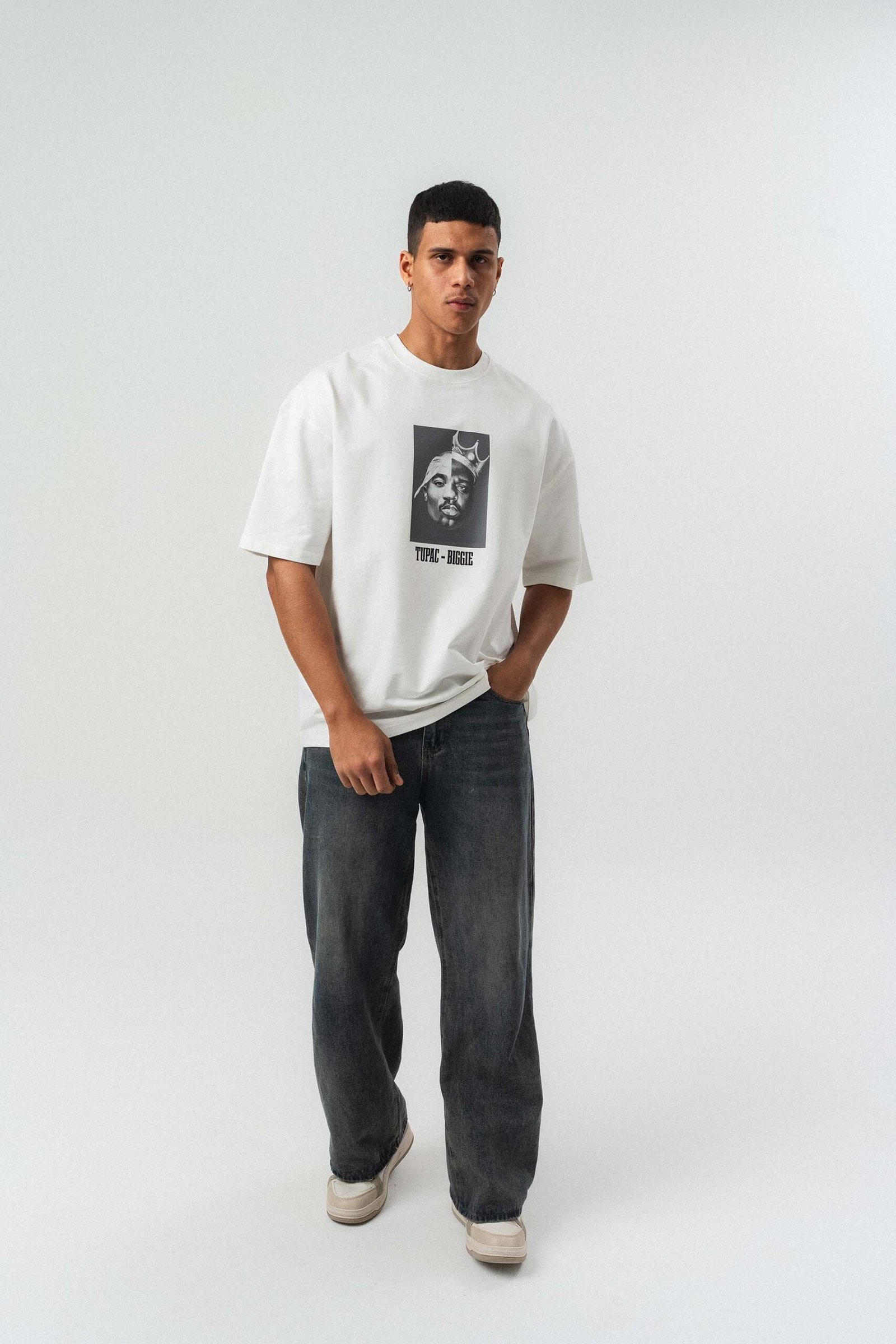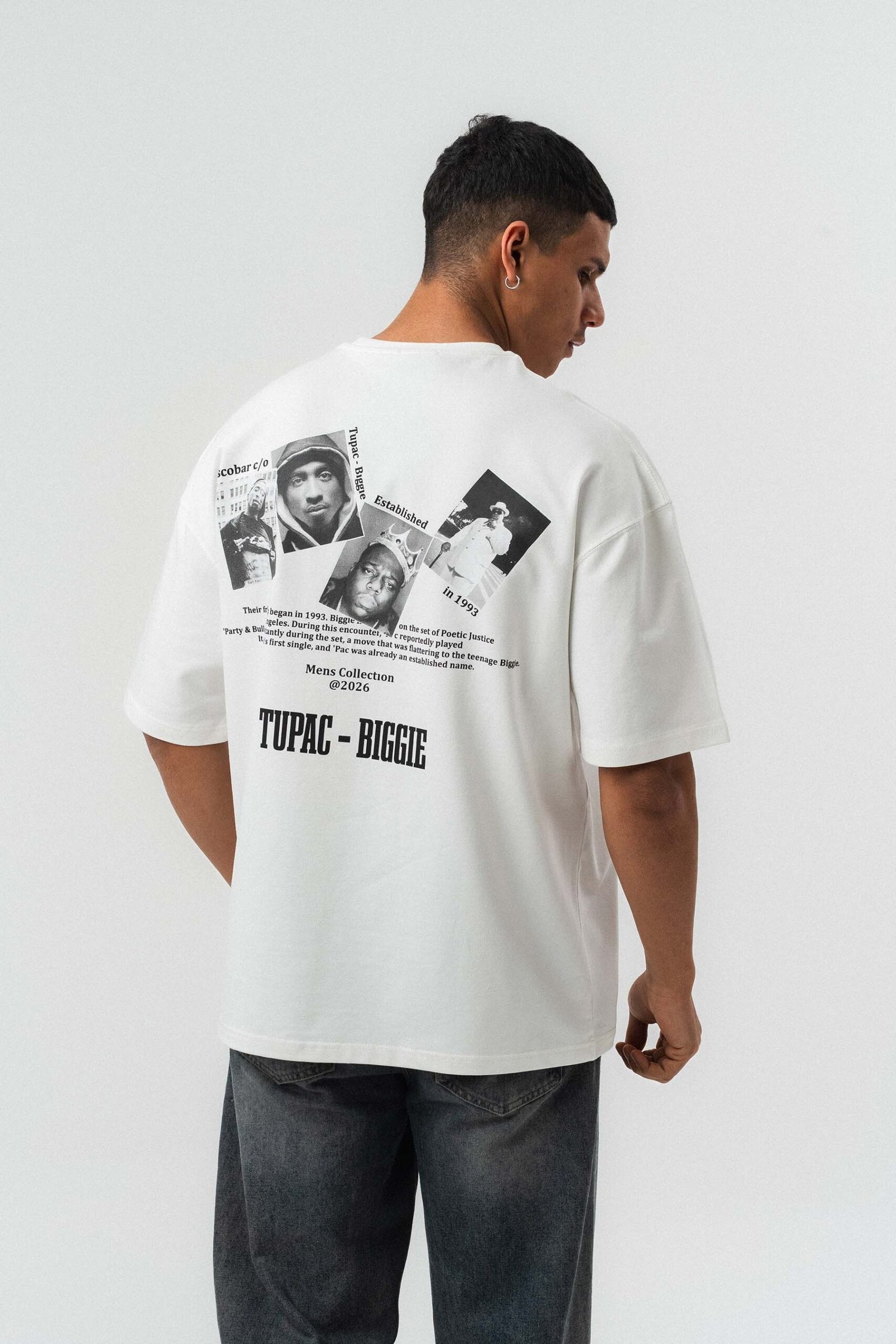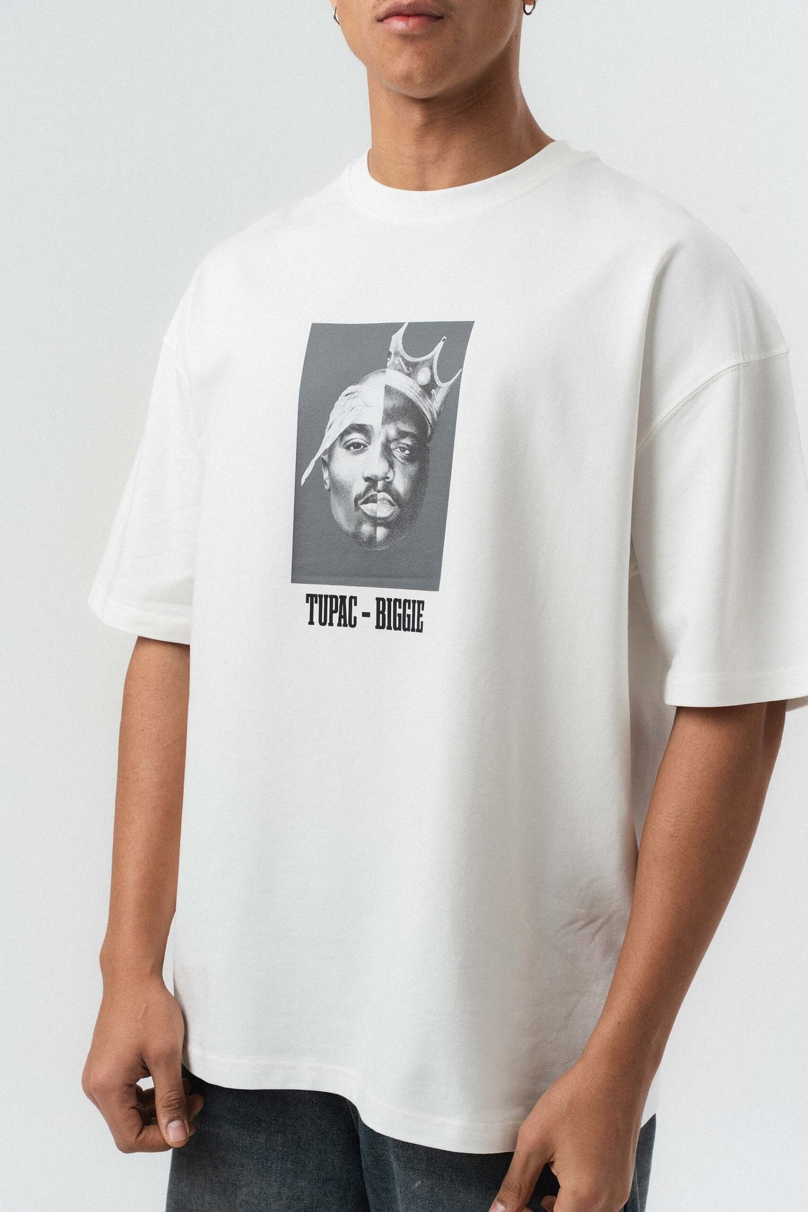 Tupac Biggie Printed White Oversize Printed T-Shirt