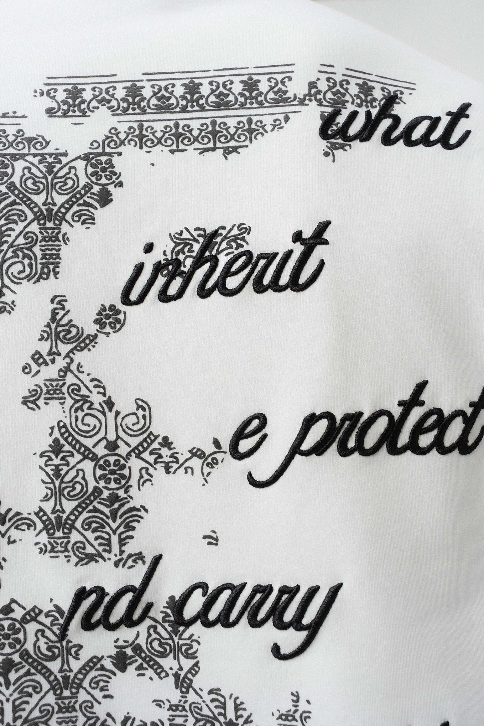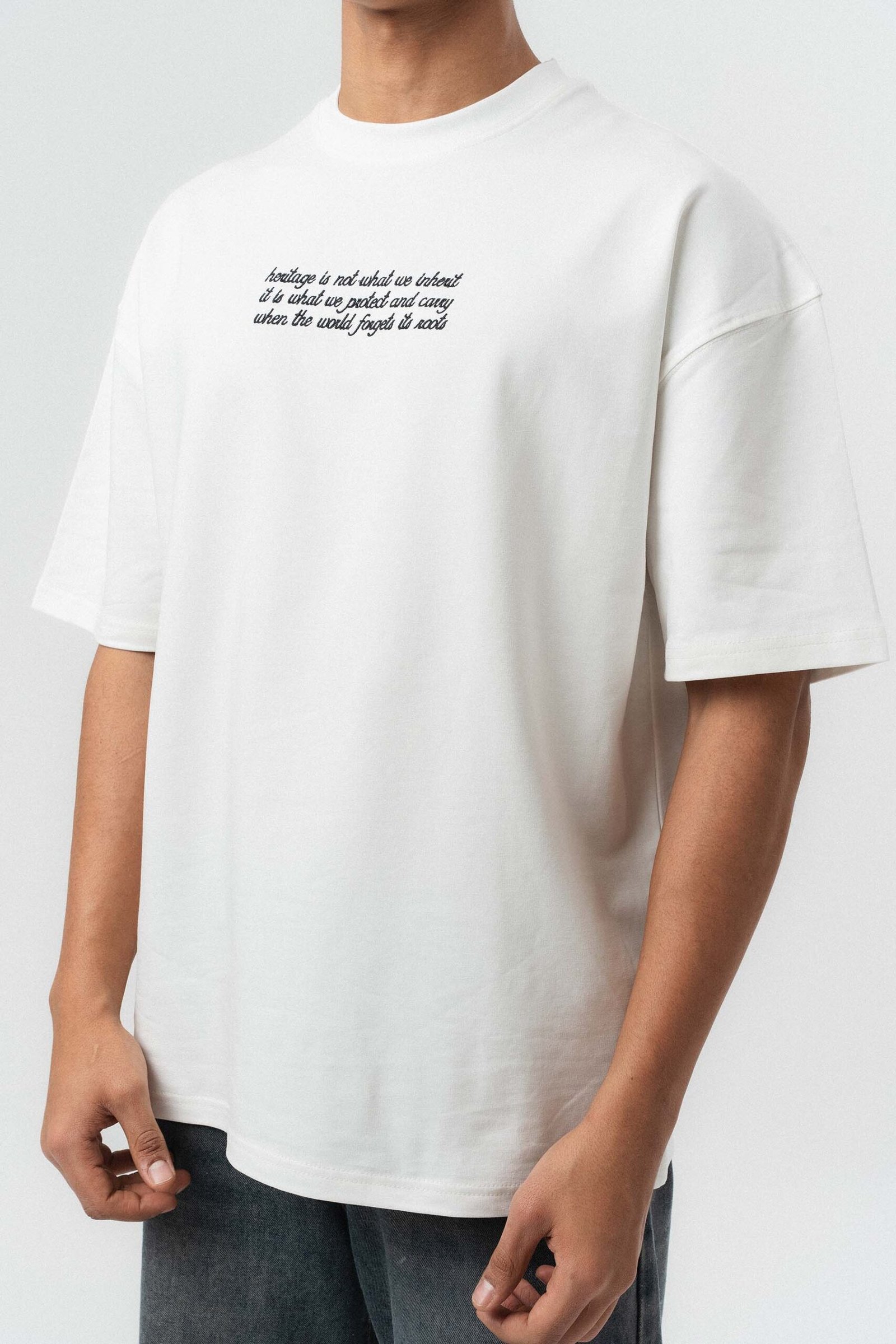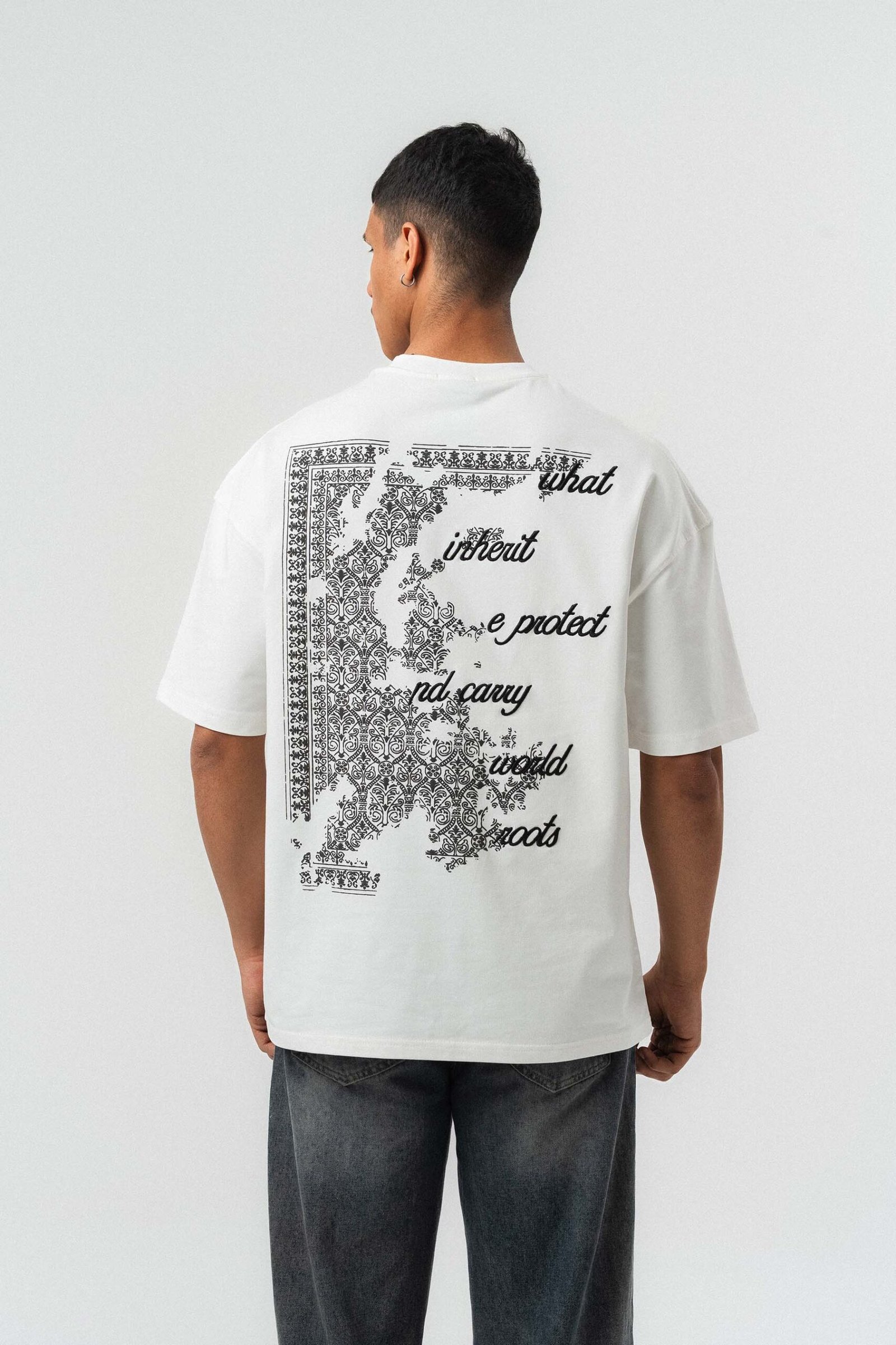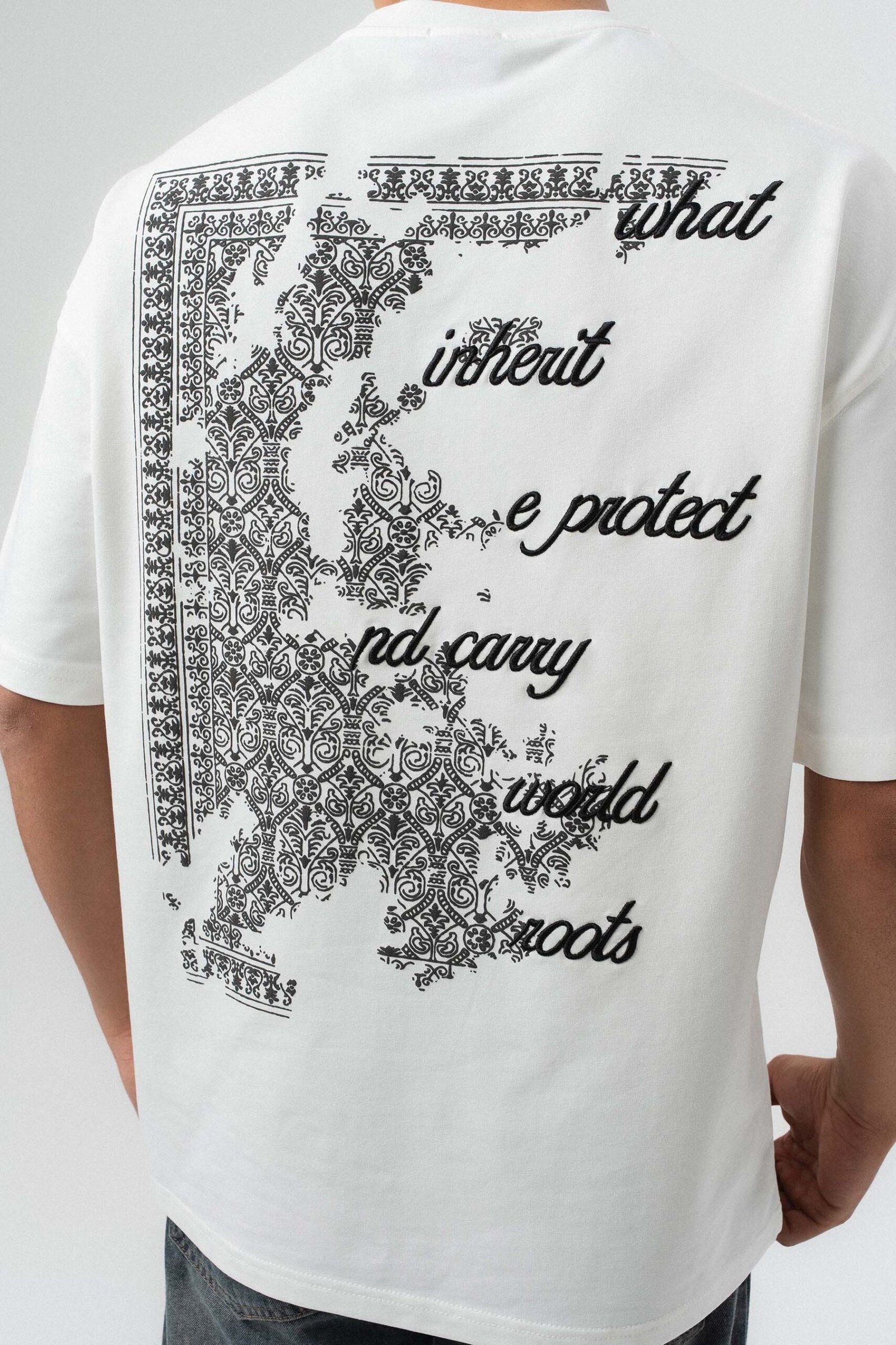 Typography Detail Etnik Desen White Oversize Printed T-Shirt