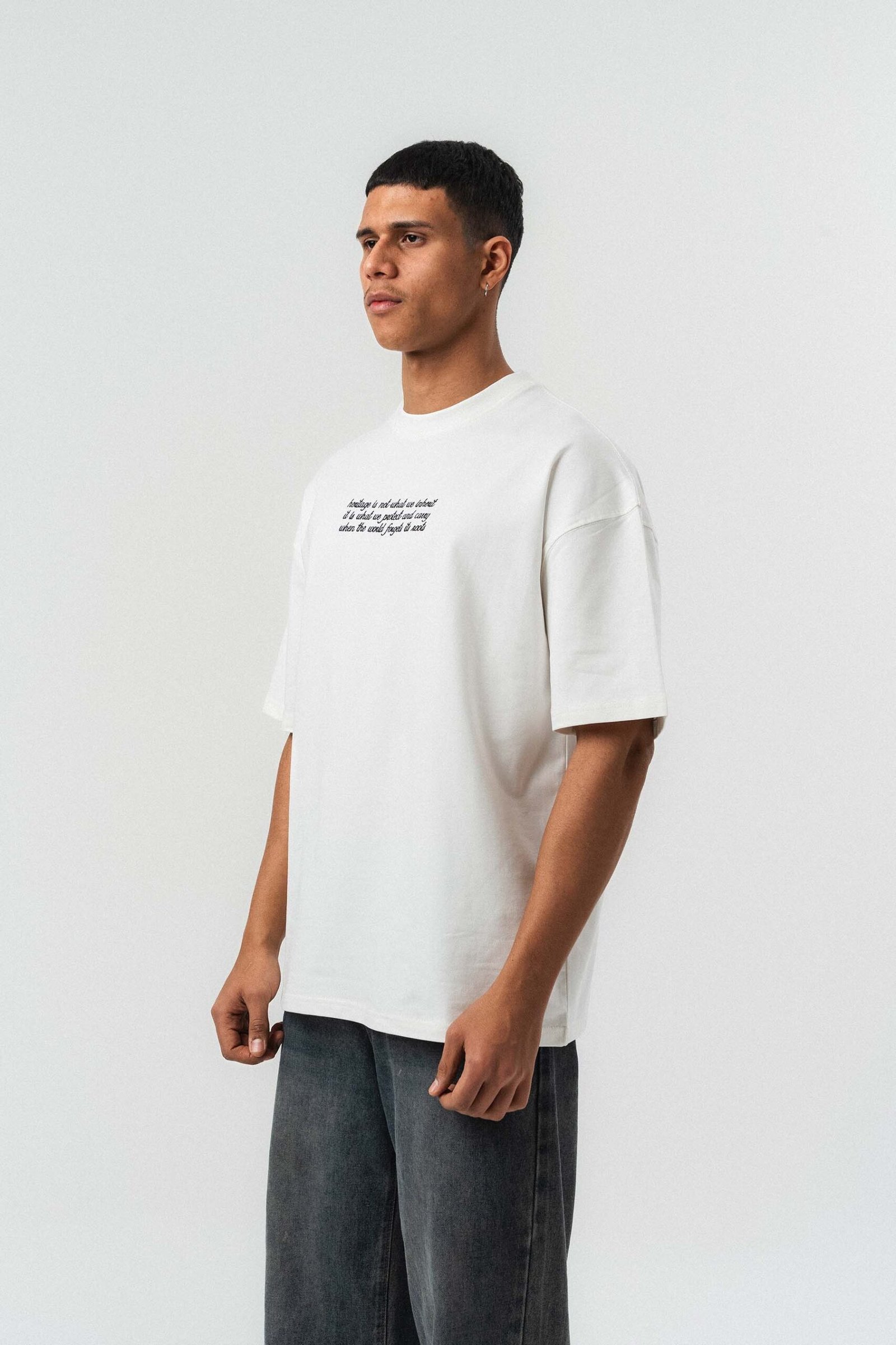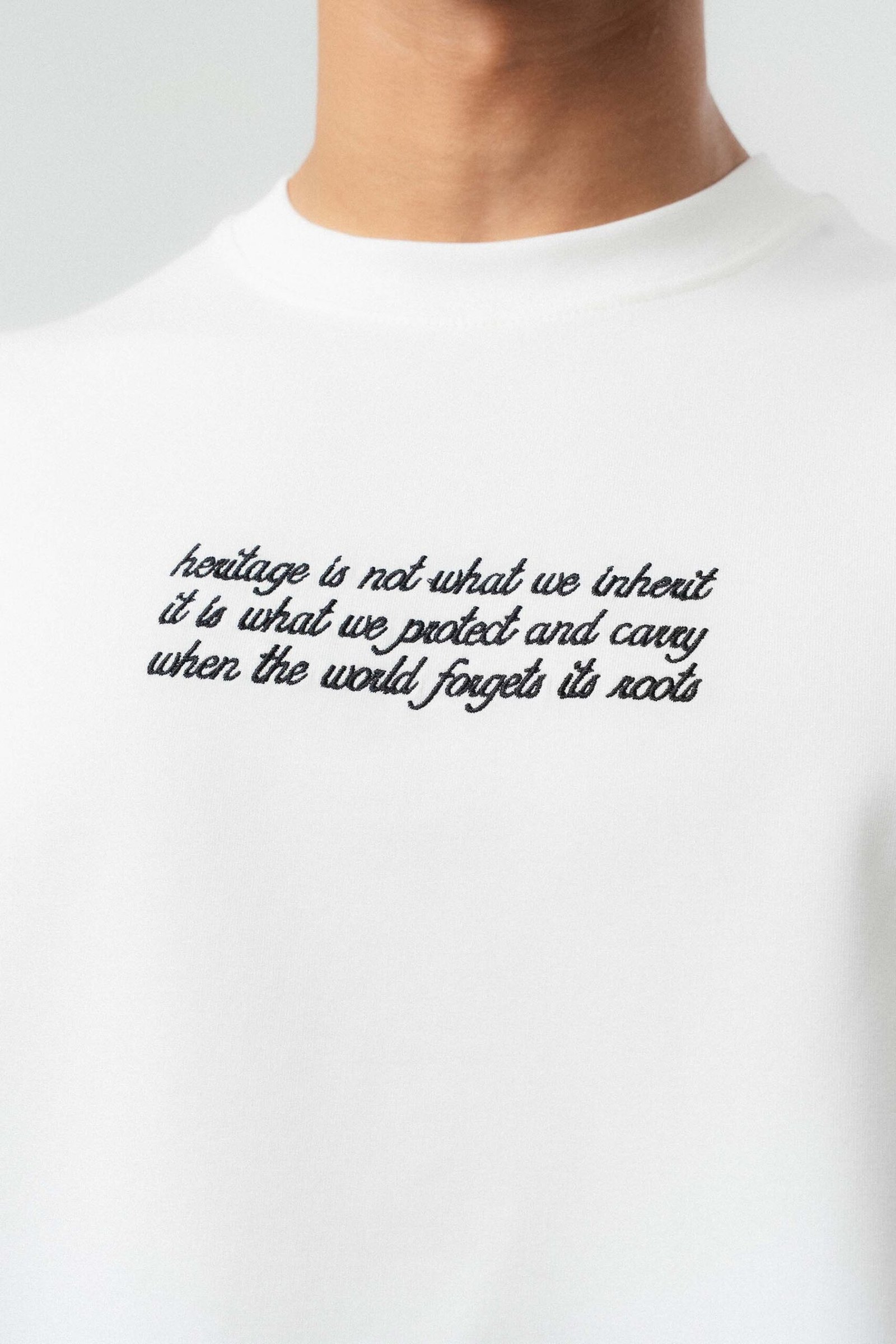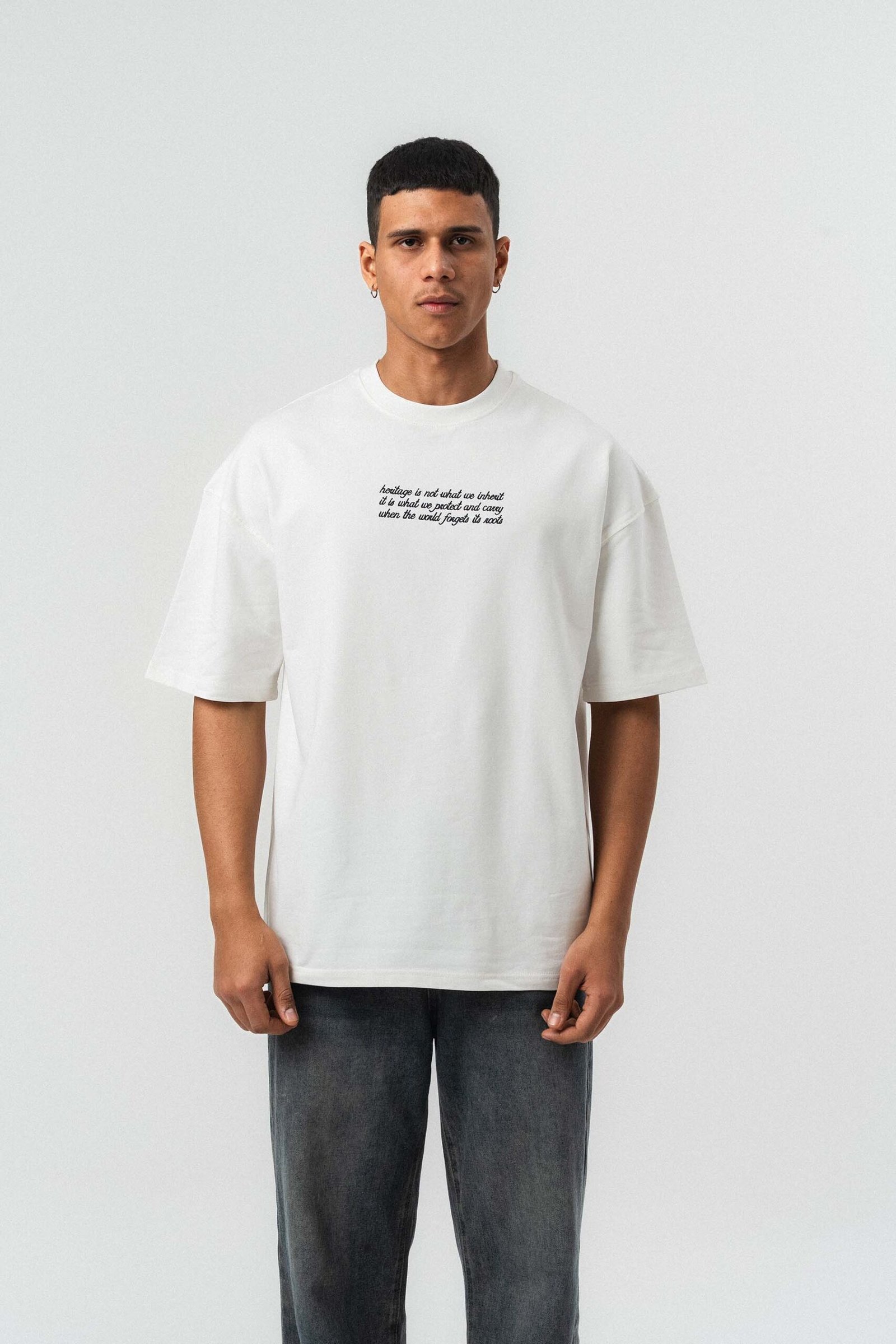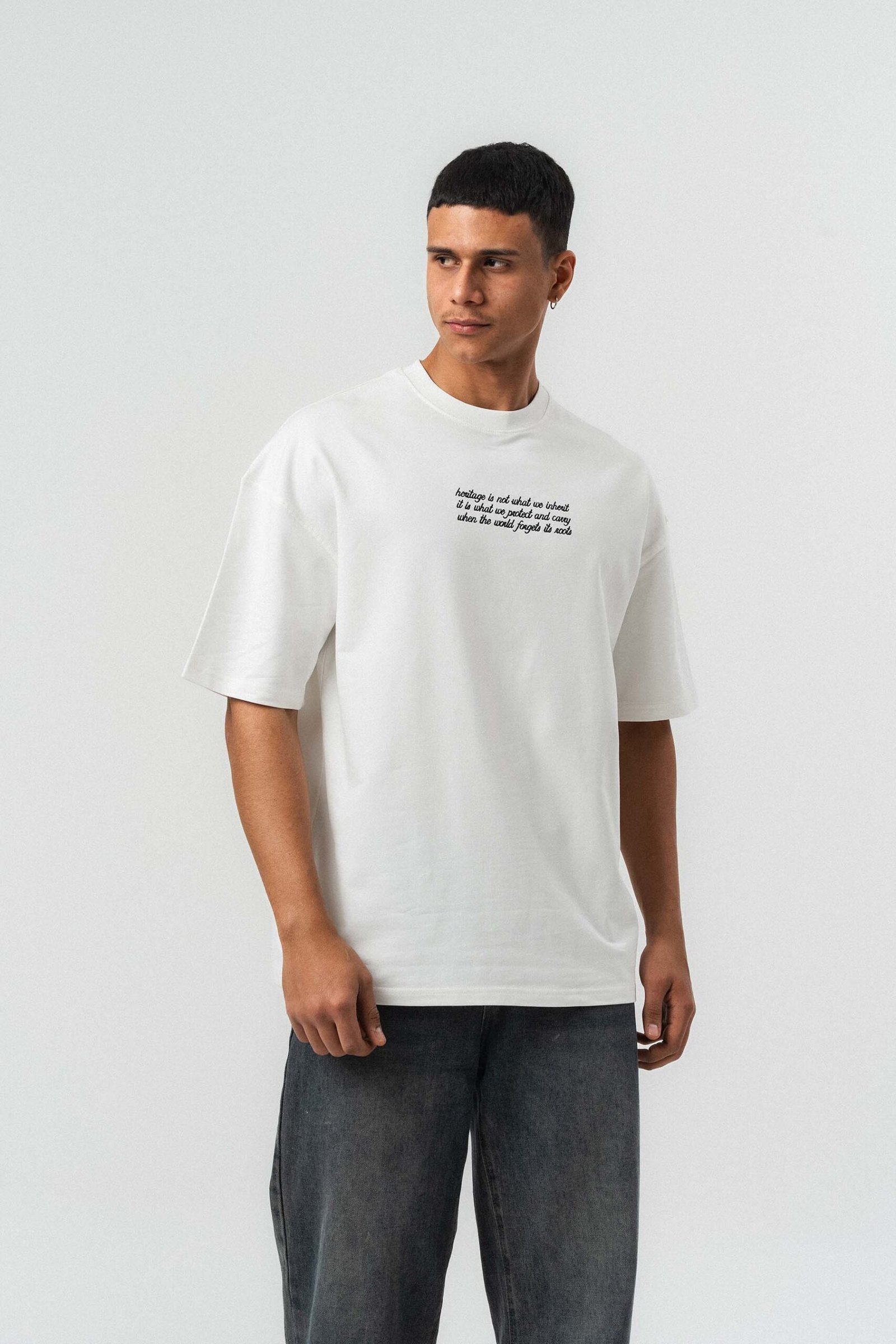 Typography Detail Etnik Desen White Oversize Printed T-Shirt