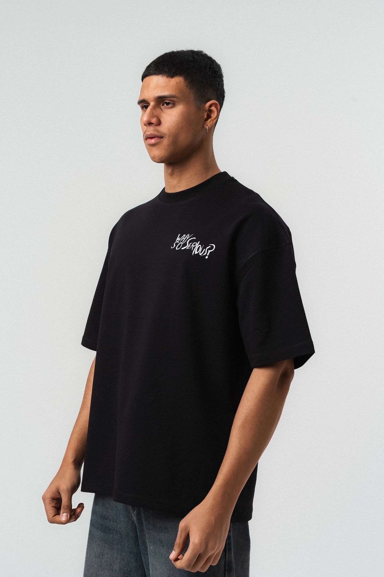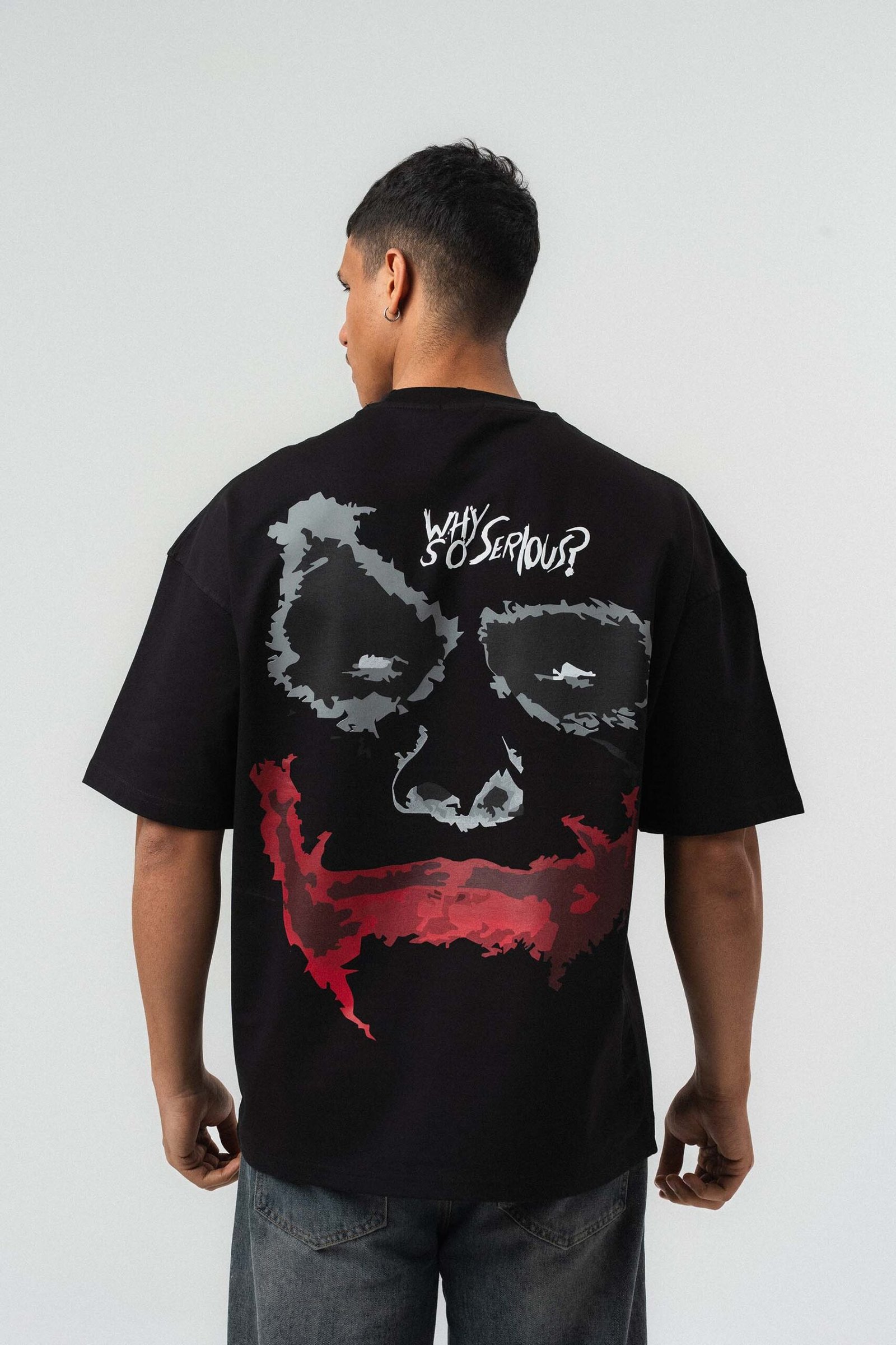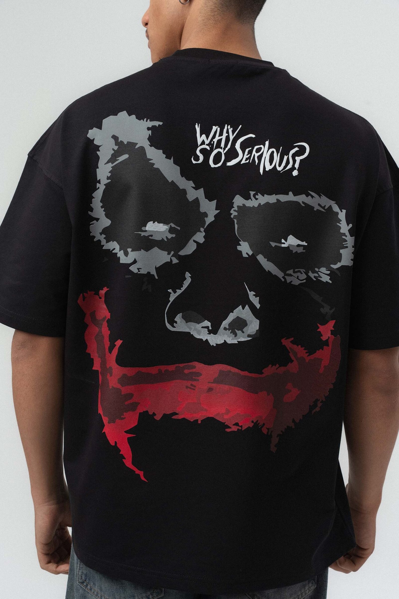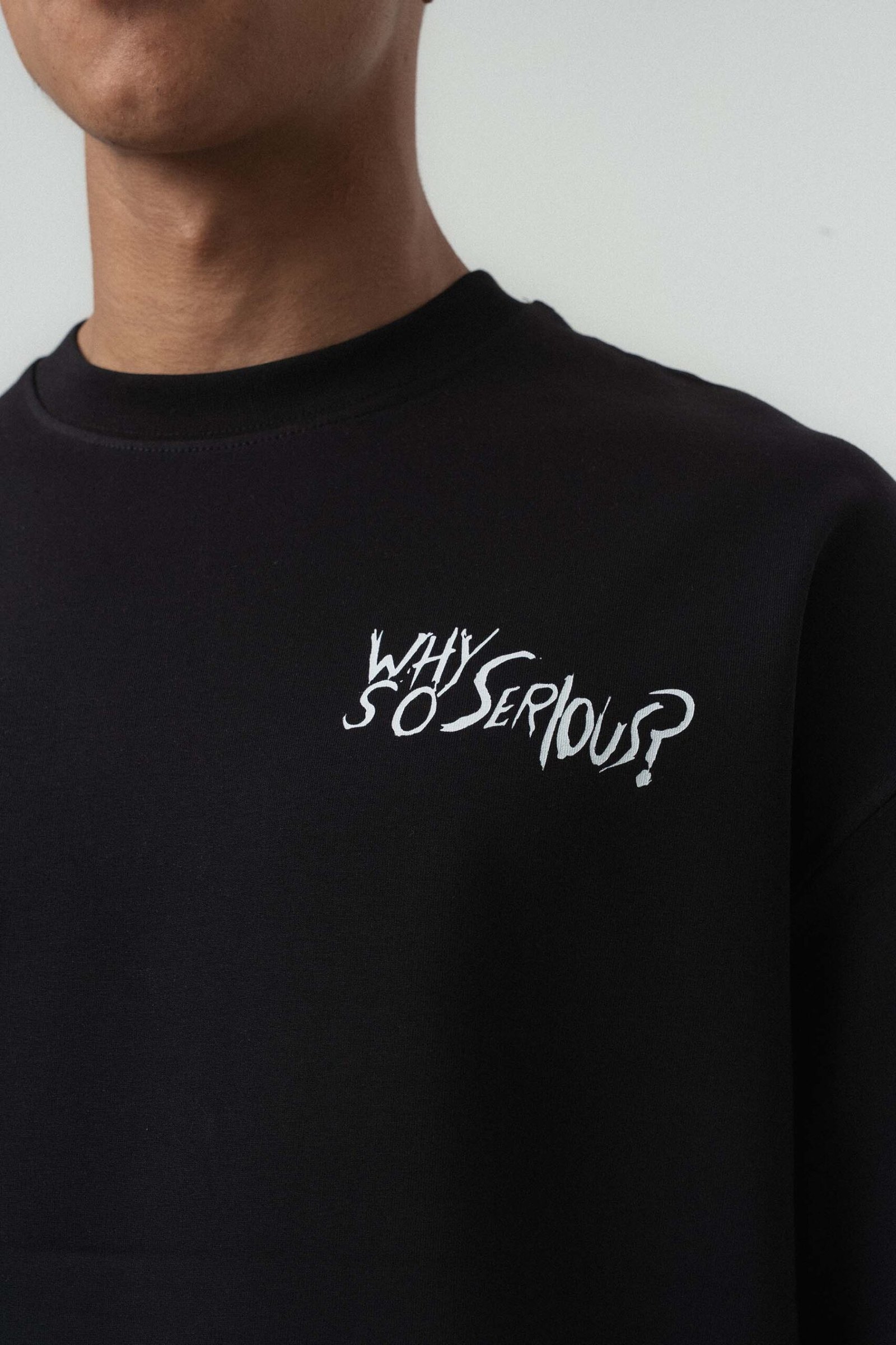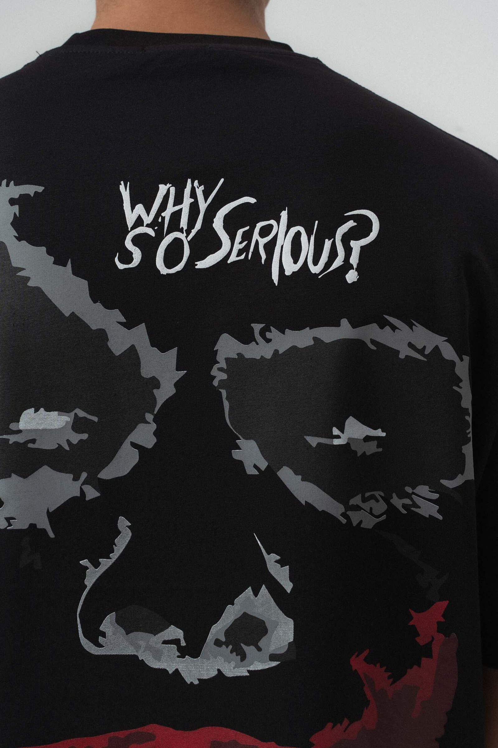 Why So Serious Embroidered Black Oversize Printed T-Shirt