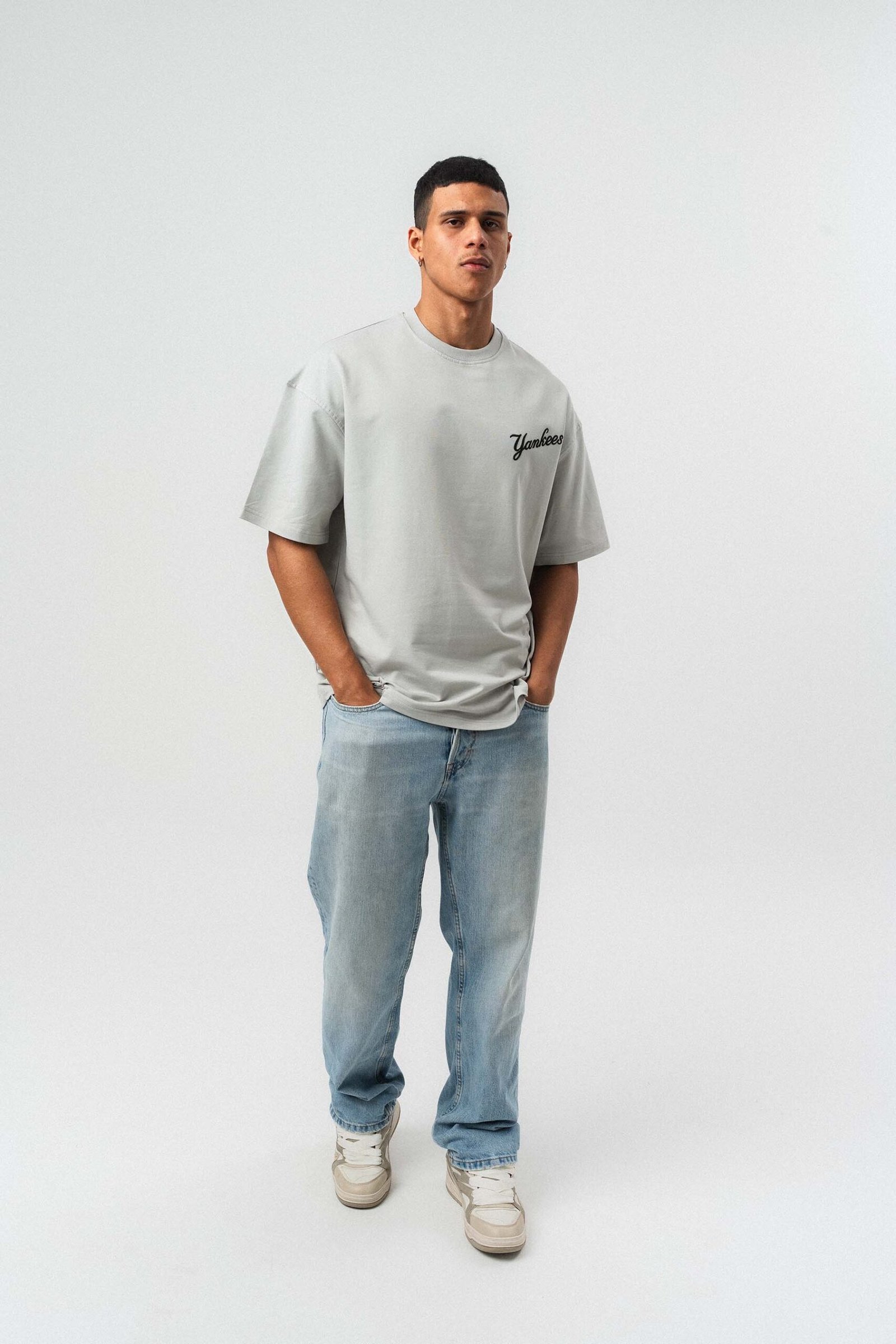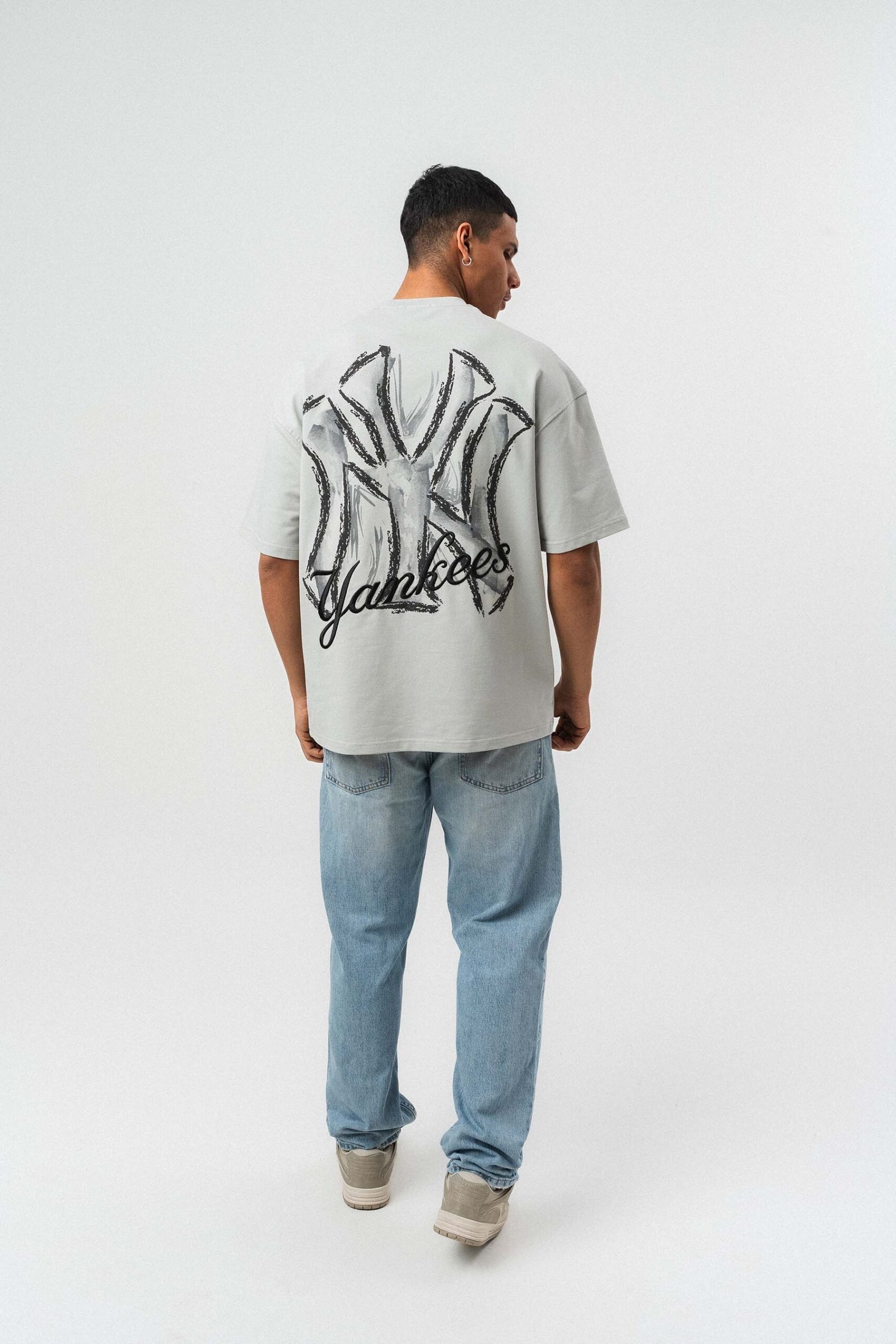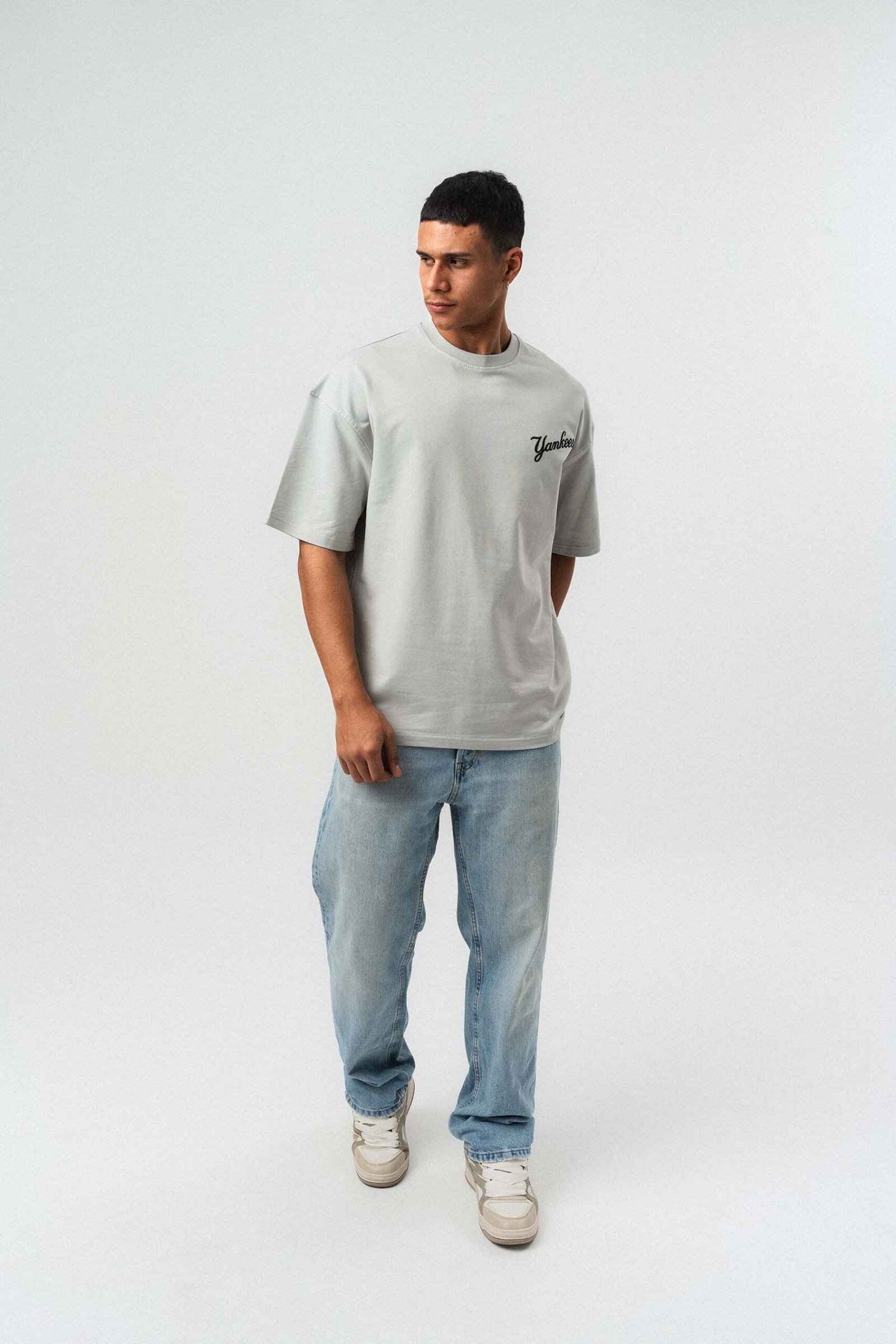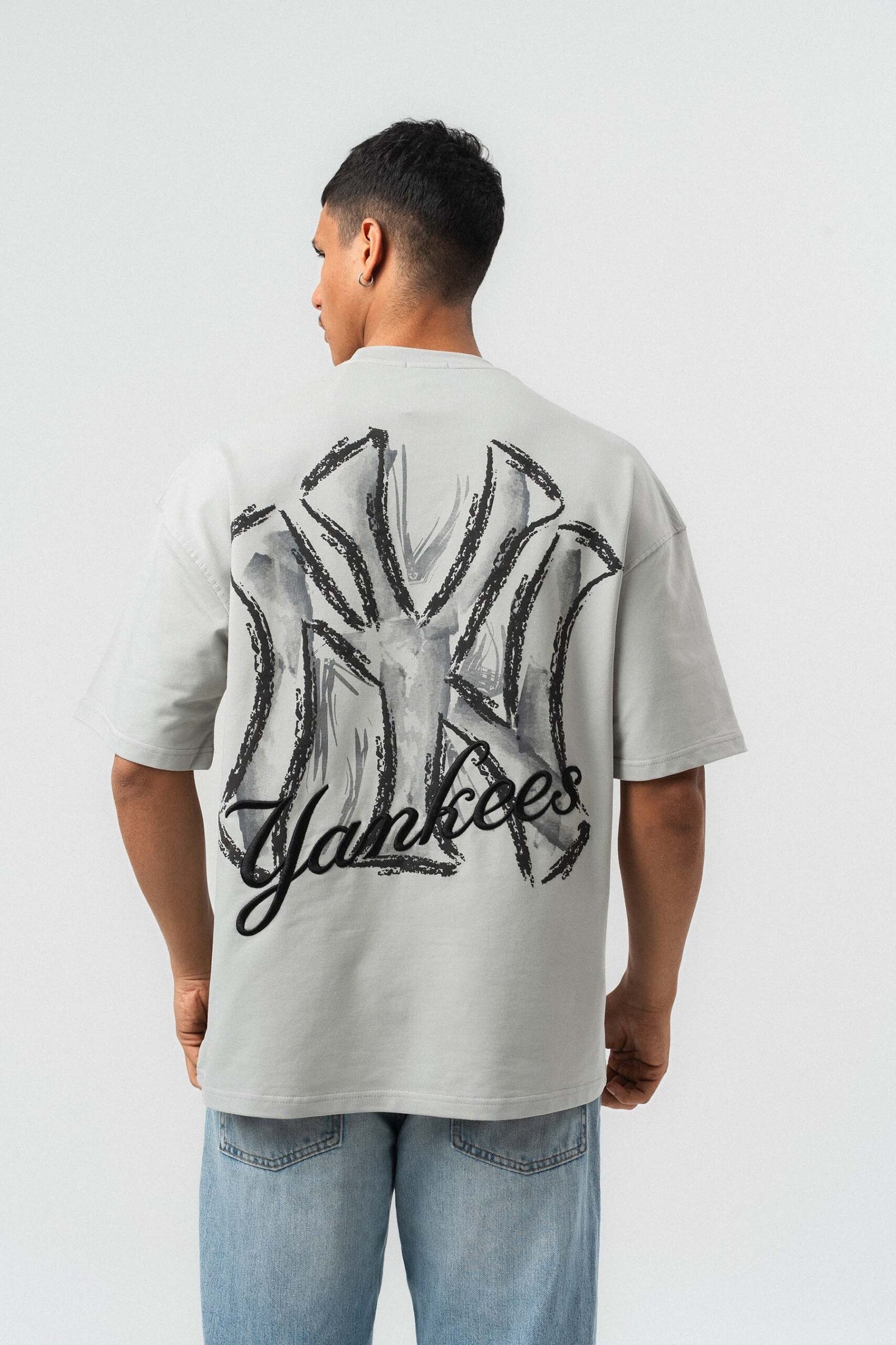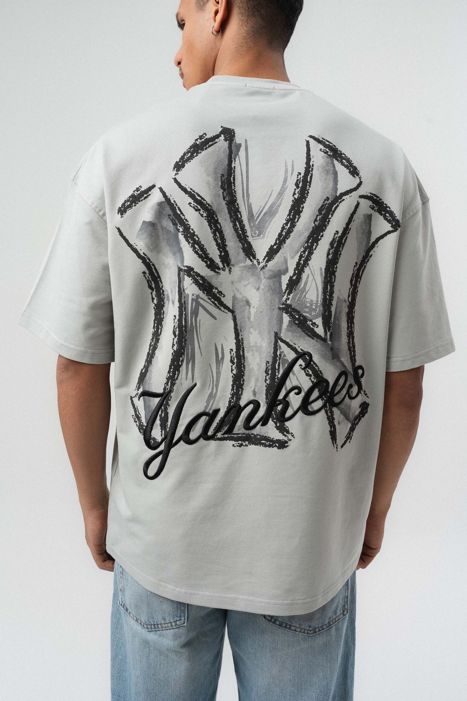 Yankees Embossed Oversize Printed T-Shirt Gray