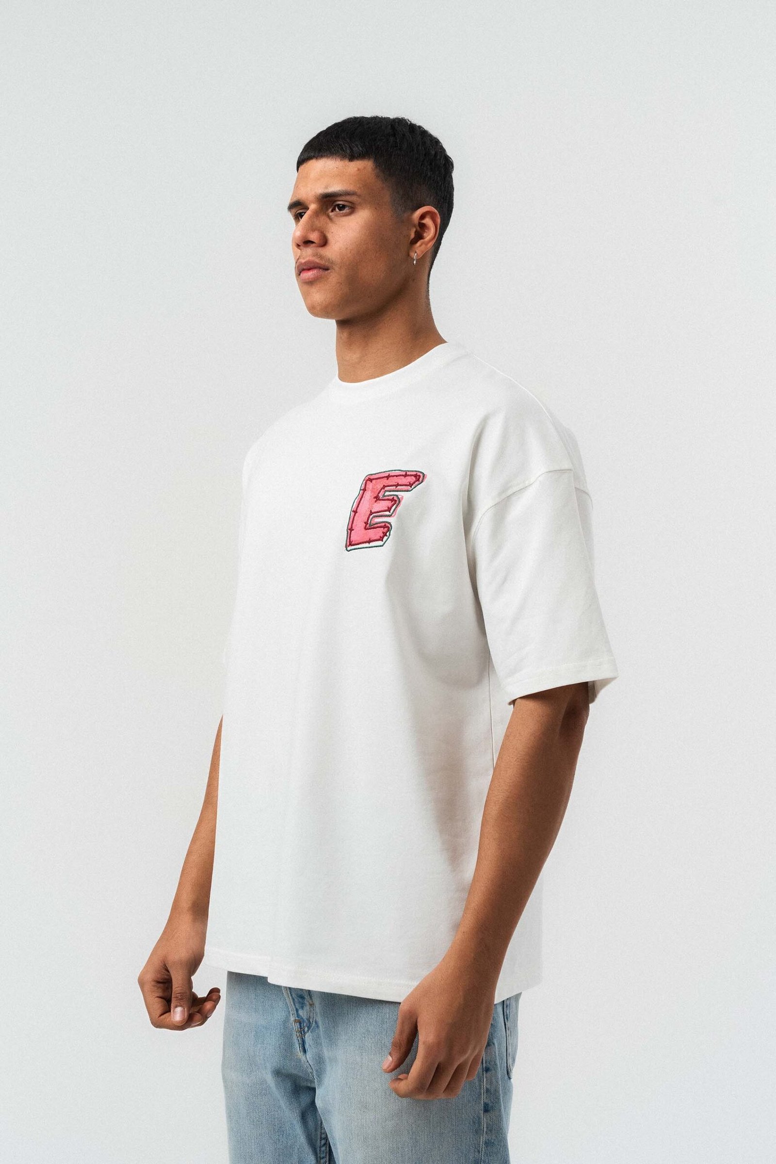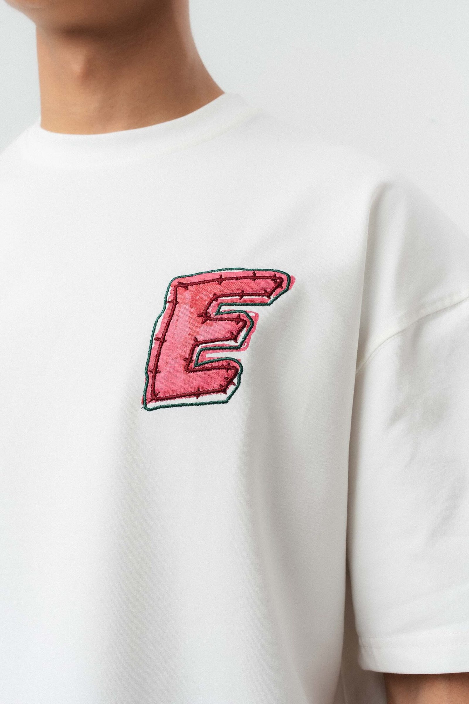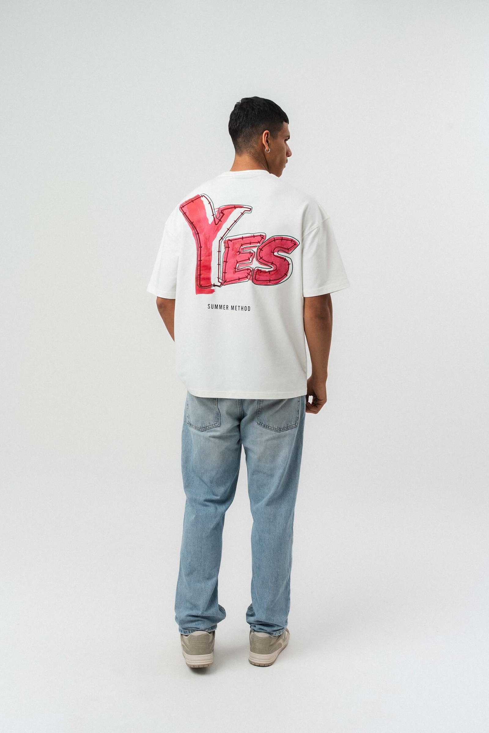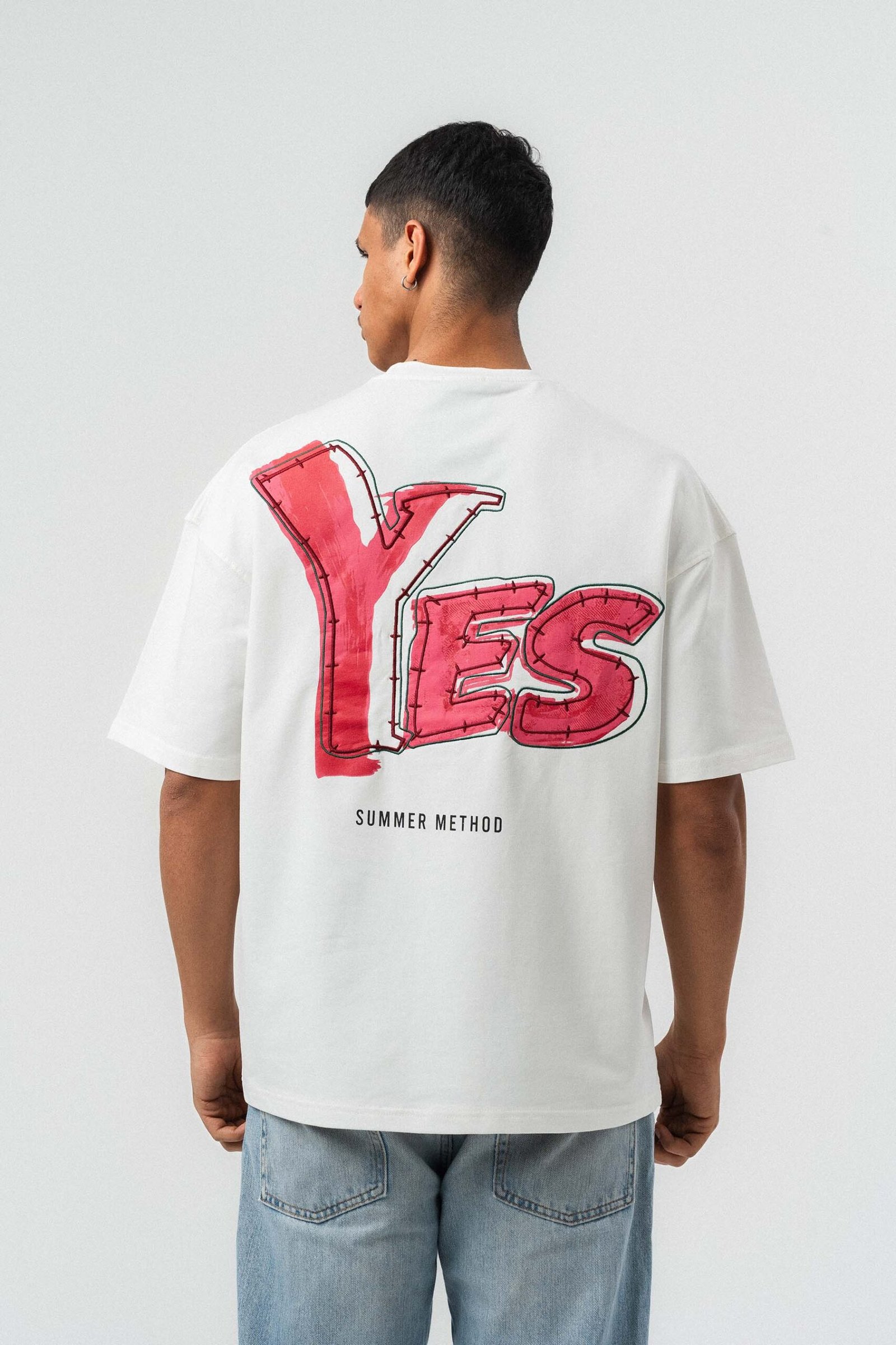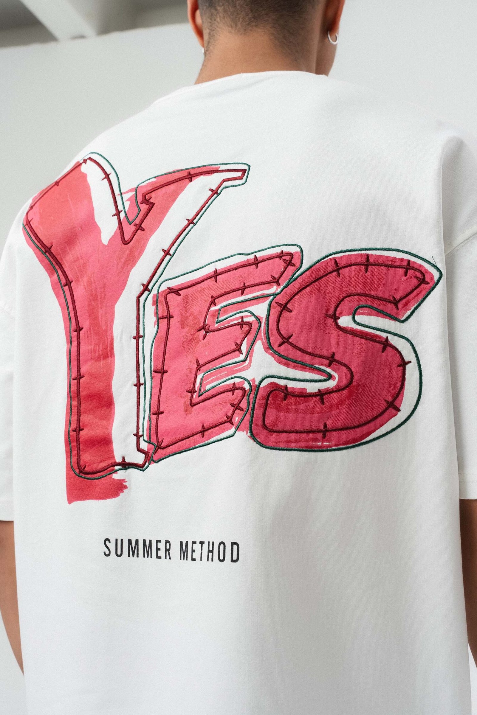 Yes Art and Embroidered White Premium Oversize Printed T-Shirt